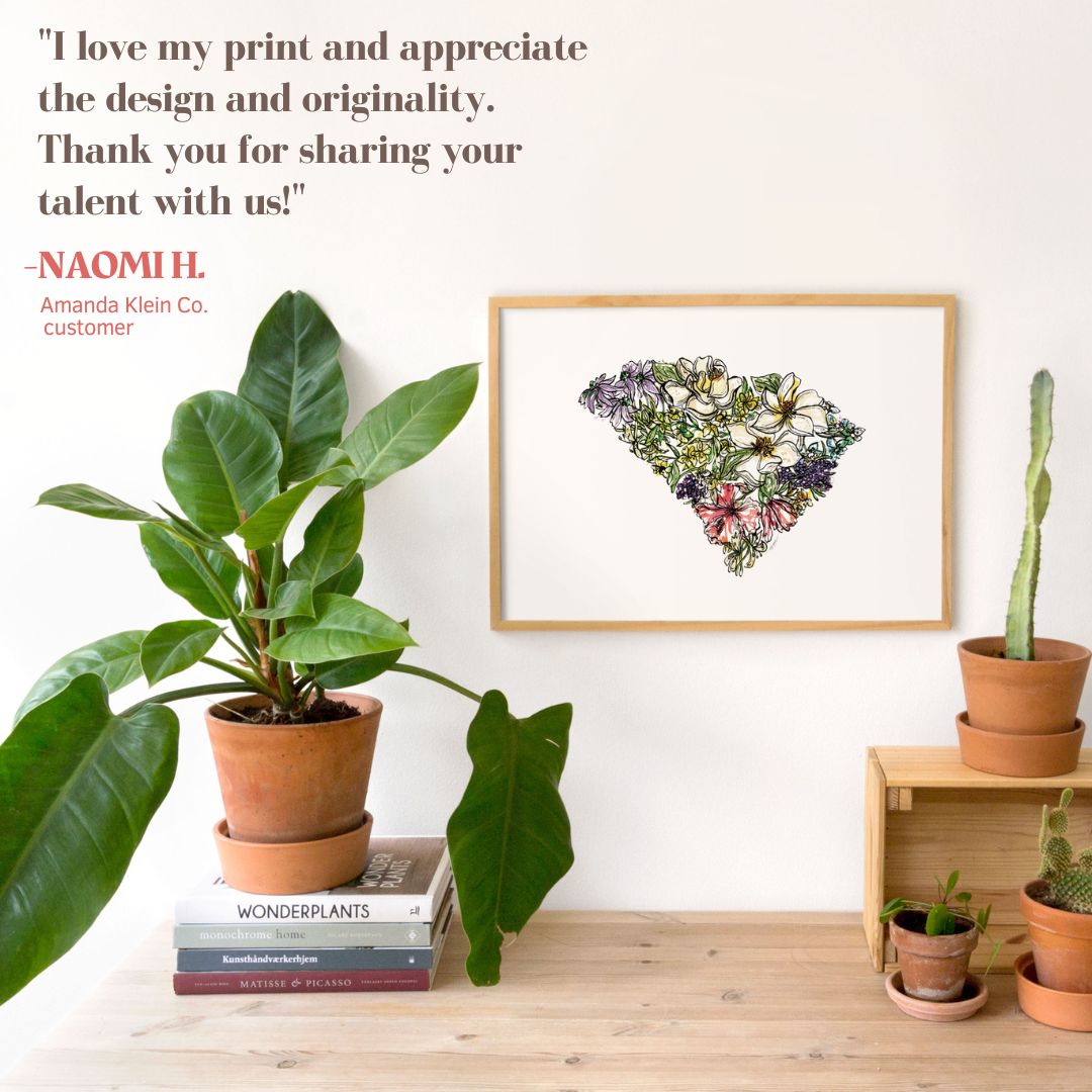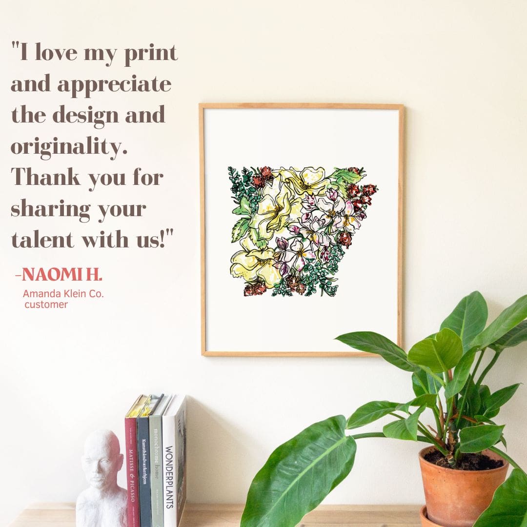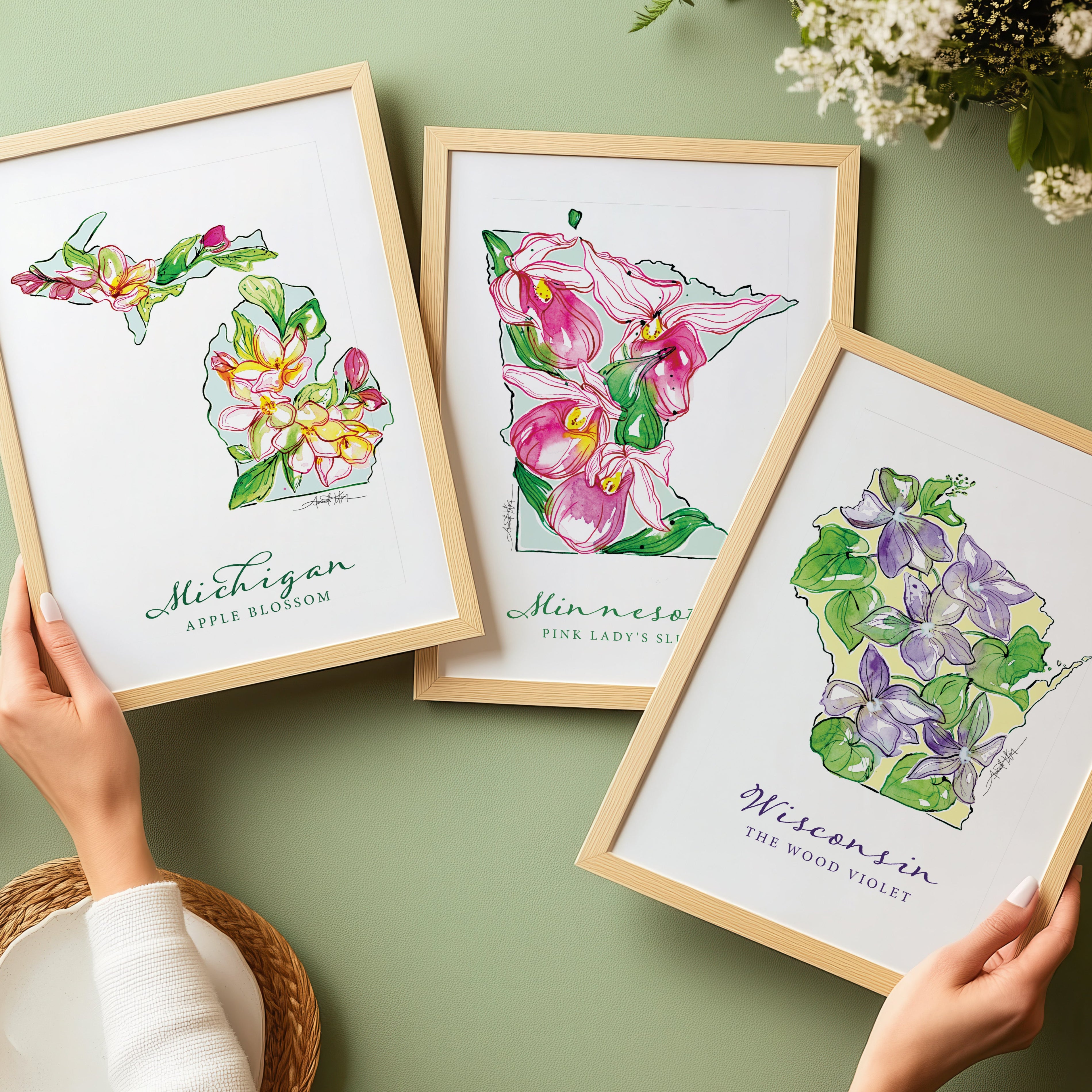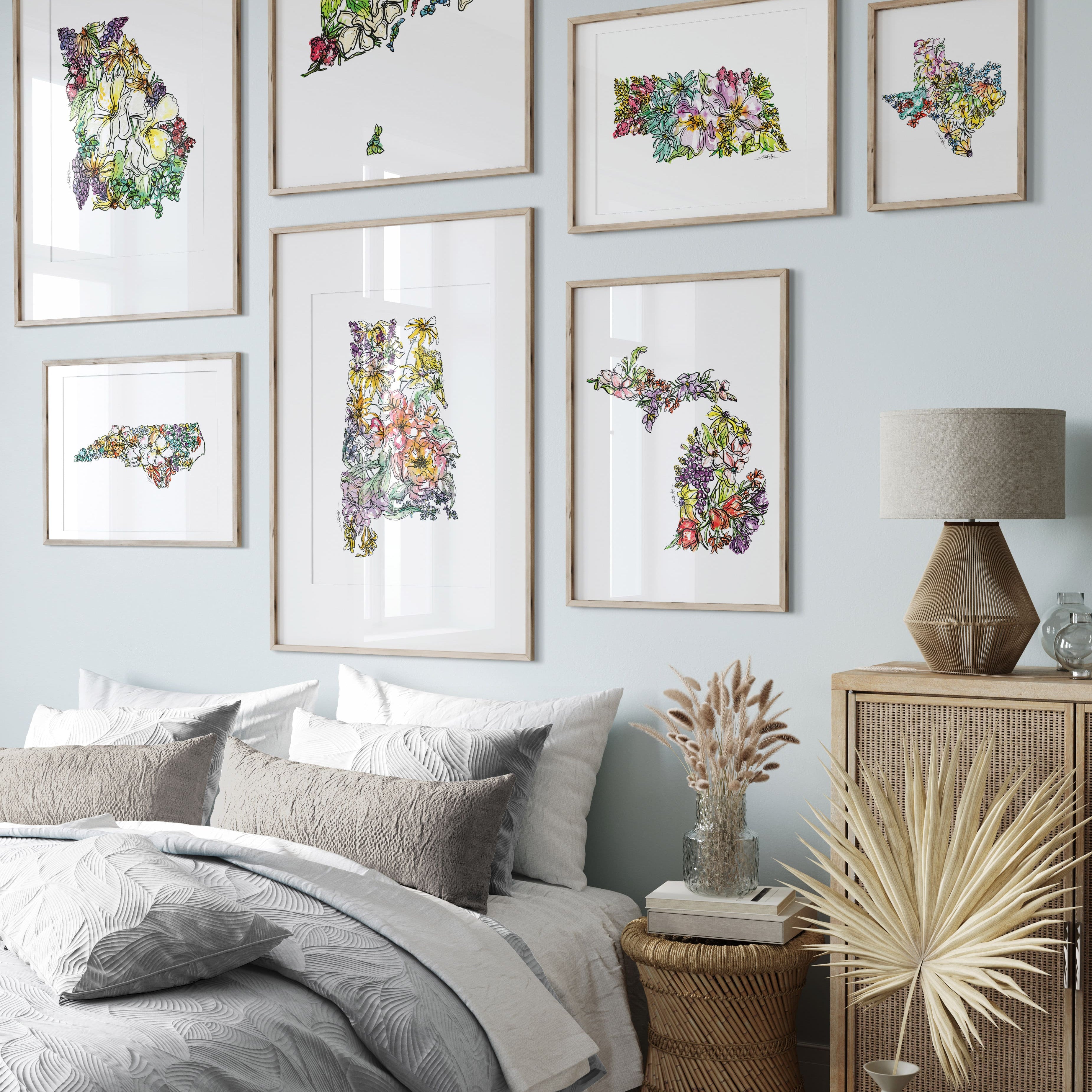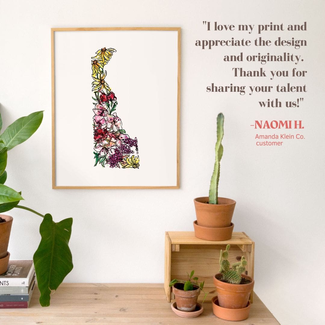 My son is marrying a woman who already had two of your states for where she had lived, so it was great to be able to add his birth state to the walls to represent them both! I love that the flowers are the state flower - it's just so clever and cute. I can't comment how it arrived, as I had it shipped straight to them, but the pic they sent me of the framed piece looks wonderful!