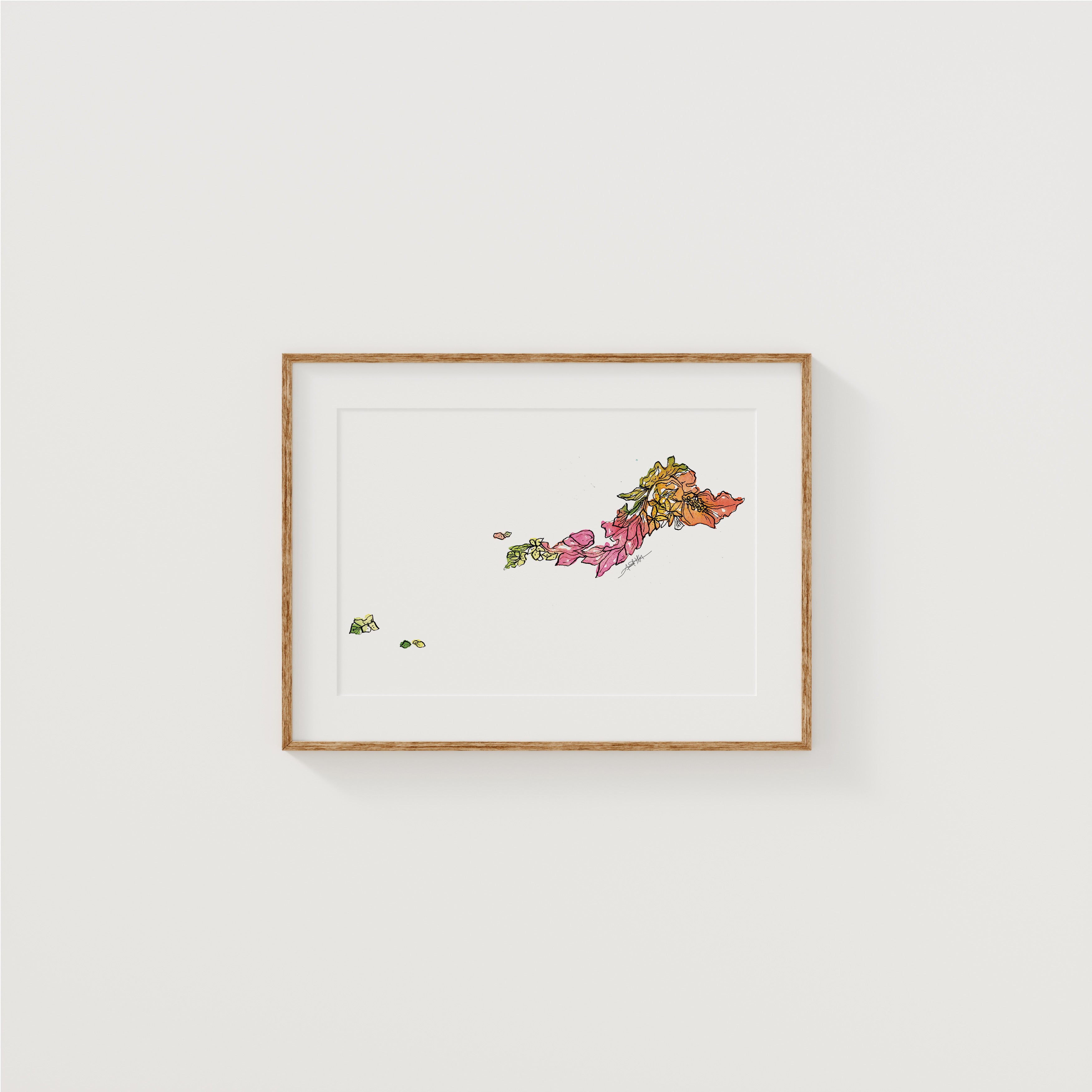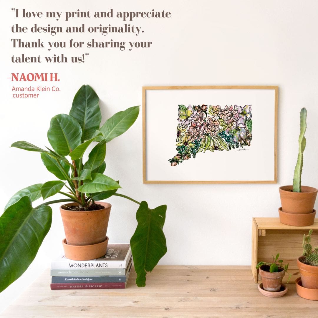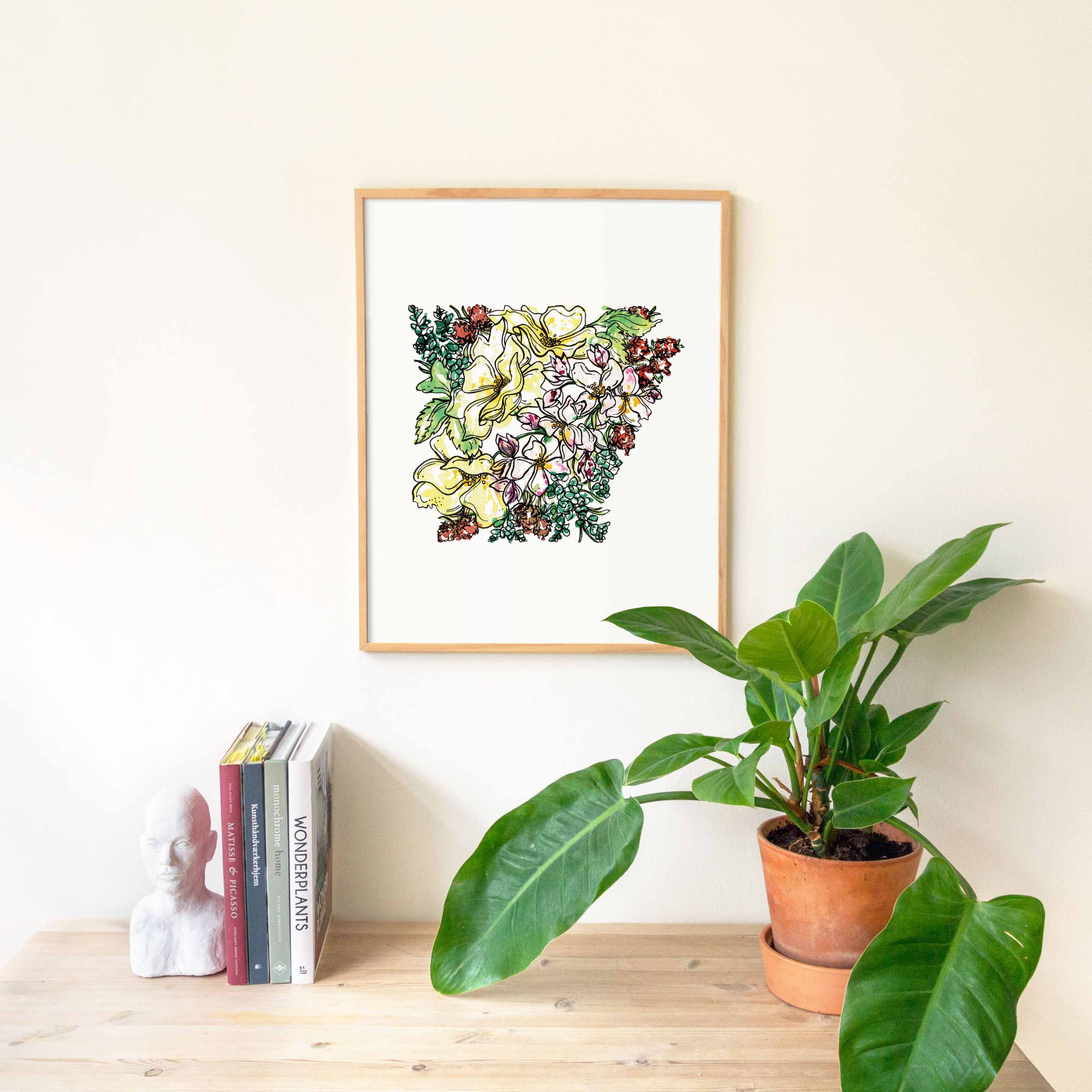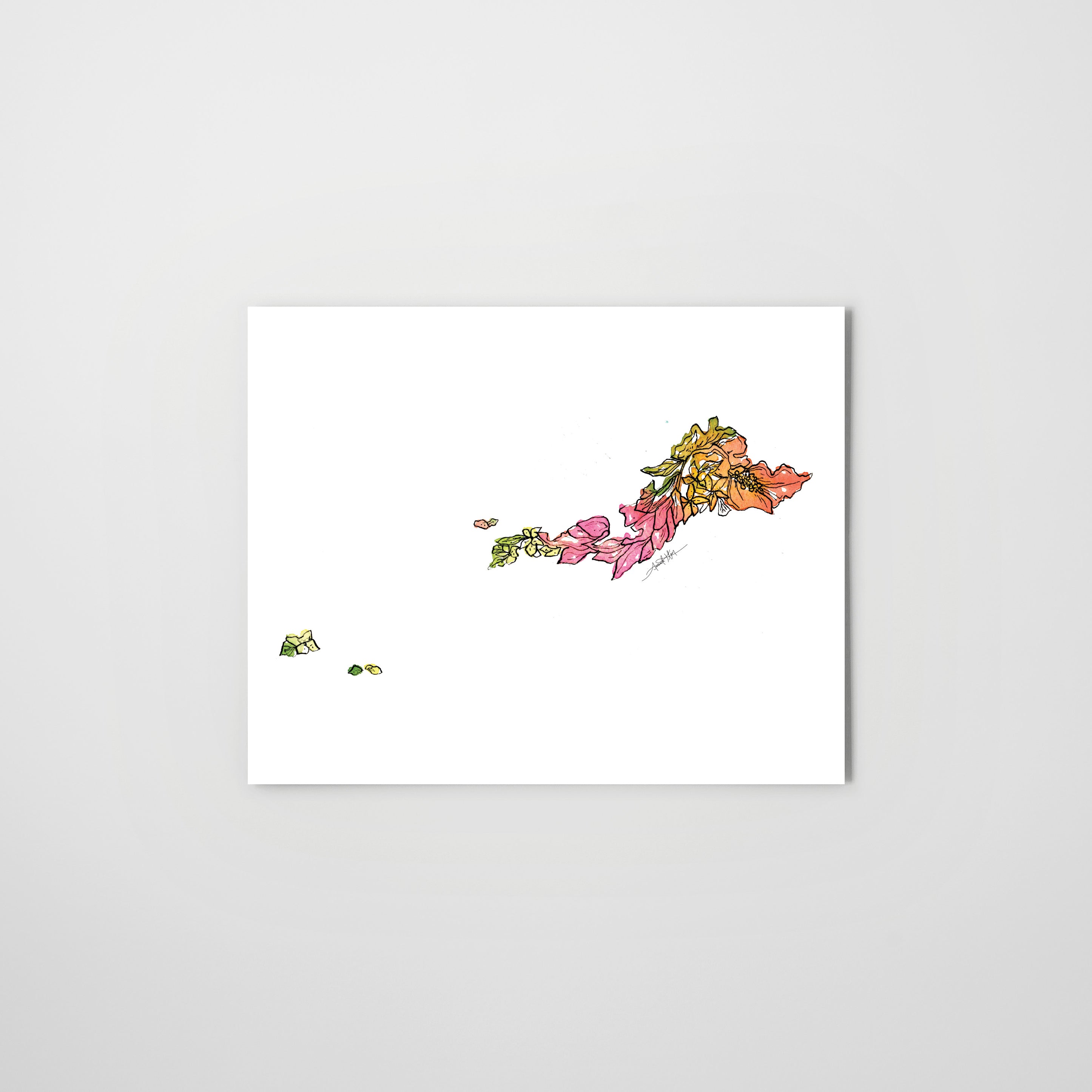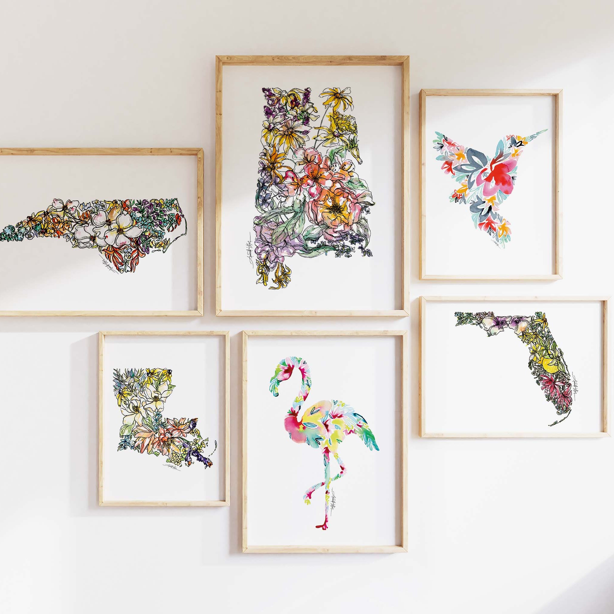 My son is marrying a woman who already had two of your states for where she had lived, so it was great to be able to add his birth state to the walls to represent them both! I love that the flowers are the state flower - it's just so clever and cute. I can't comment how it arrived, as I had it shipped straight to them, but the pic they sent me of the framed piece looks wonderful!