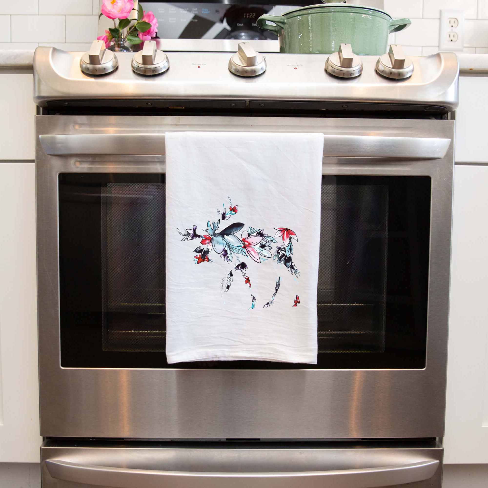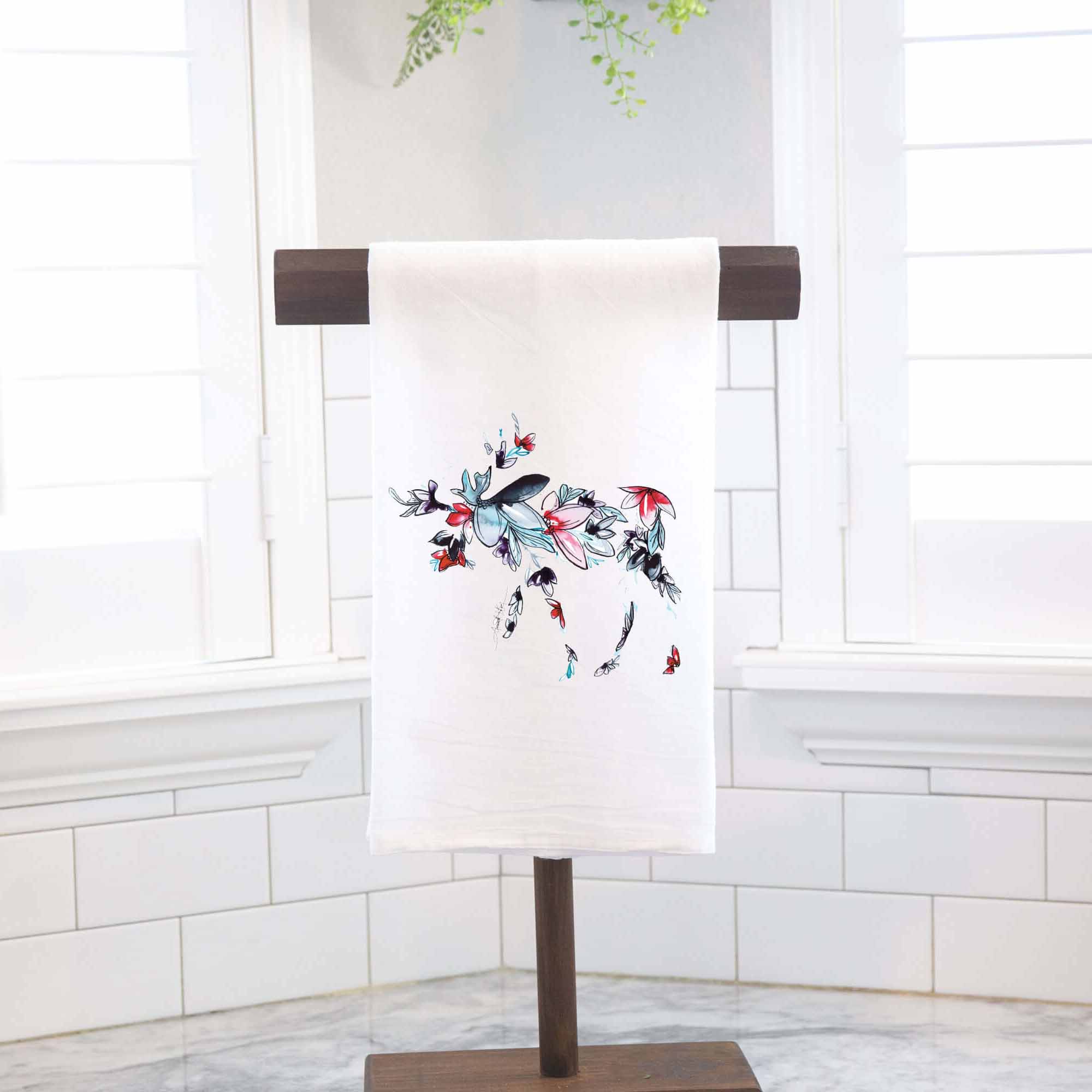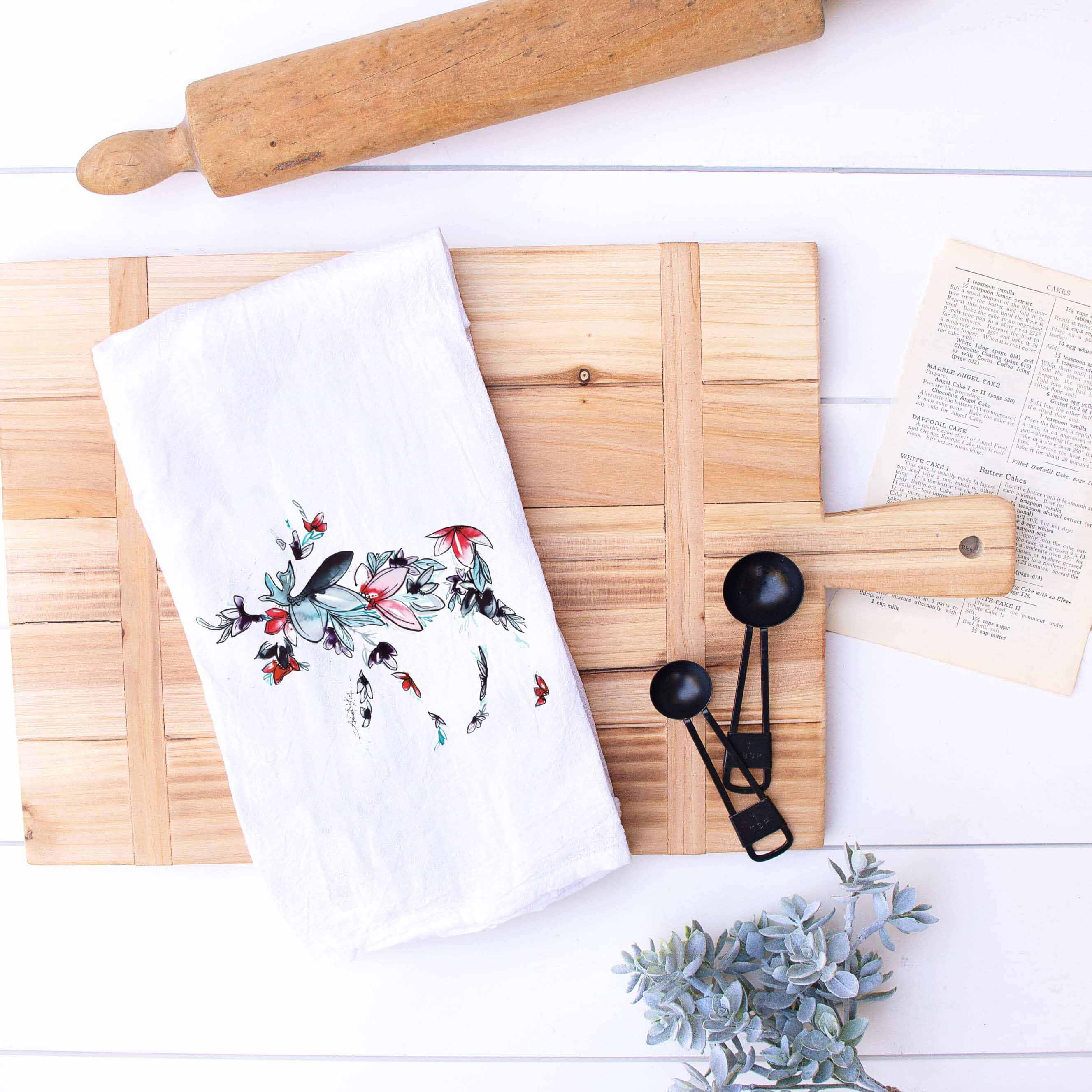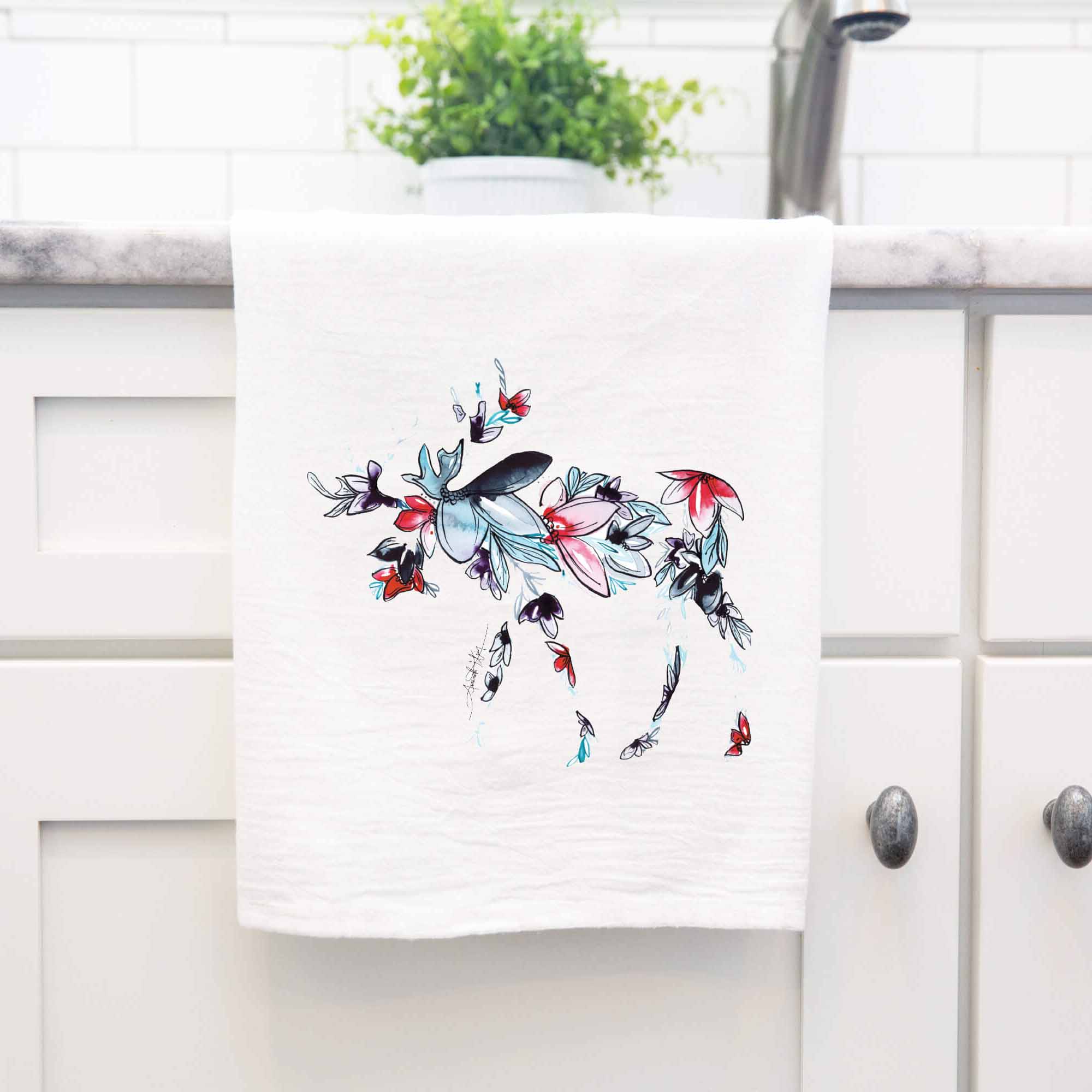 This high quality Moose design flour sack tea towel showcases Amanda Klein's whimsical watercolor and splattered design. A uniquely perfect gift for any hostess, bride, teacher, friend, or loved one.