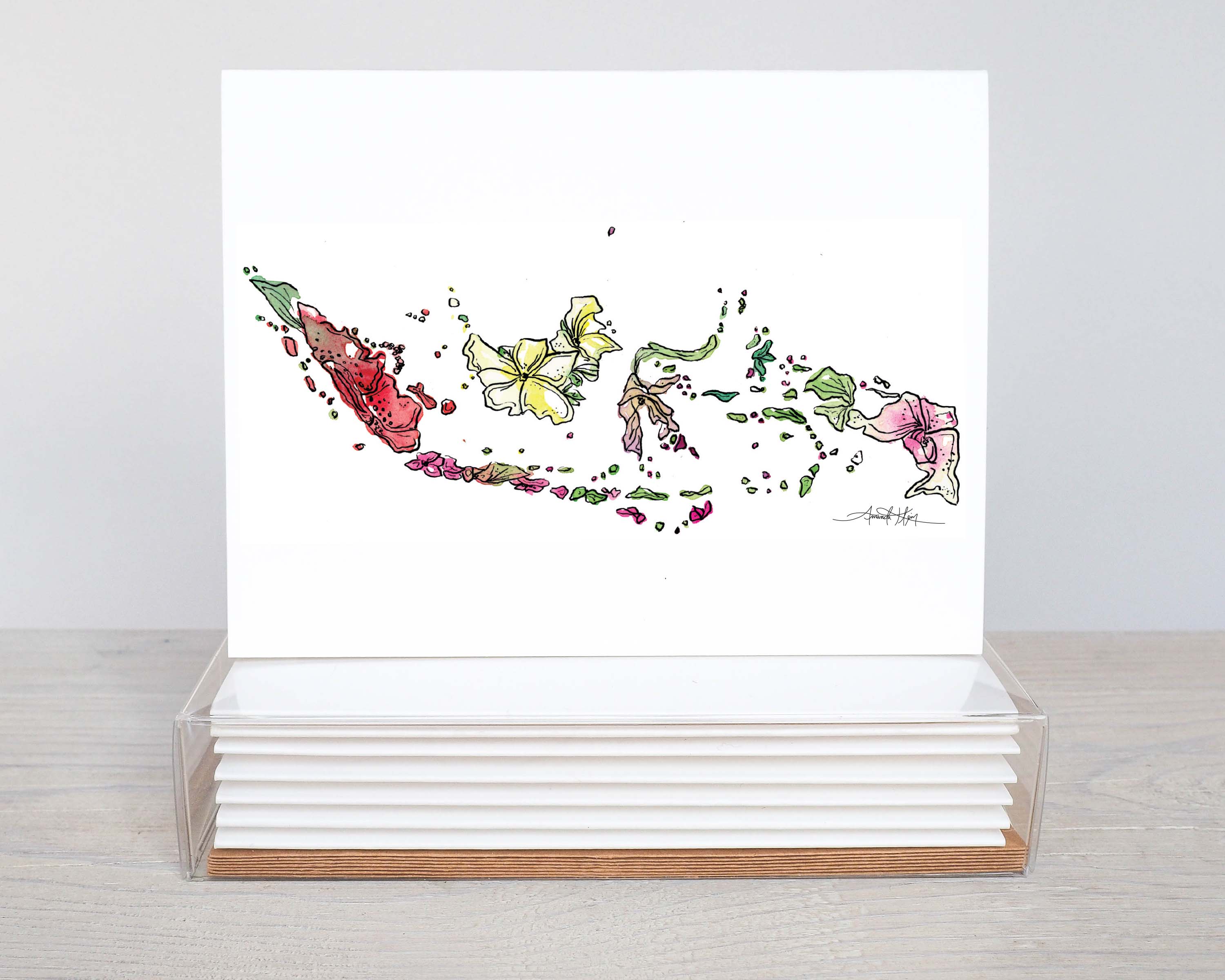 Featuring flower specific to the country of Indonesia, these high quality note cards showcase Amanda Klein’s whimsical watercolor artwork. A uniquely perfect gift for any hostess, bride, military family, adoptive family, friend, or well-traveled loved one.