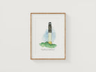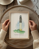 Bring a touch of the coast into your home with this fine art print featuring the iconic Oak Island Lighthouse. Available in 8” x 10” or 11” x 14” sizes (unframed), this piece is rendered in Amanda Klein’s signature style, using fluid watercolor and acrylic ink to capture the lighthouse’s distinctive concrete structure and bold coastal presence.