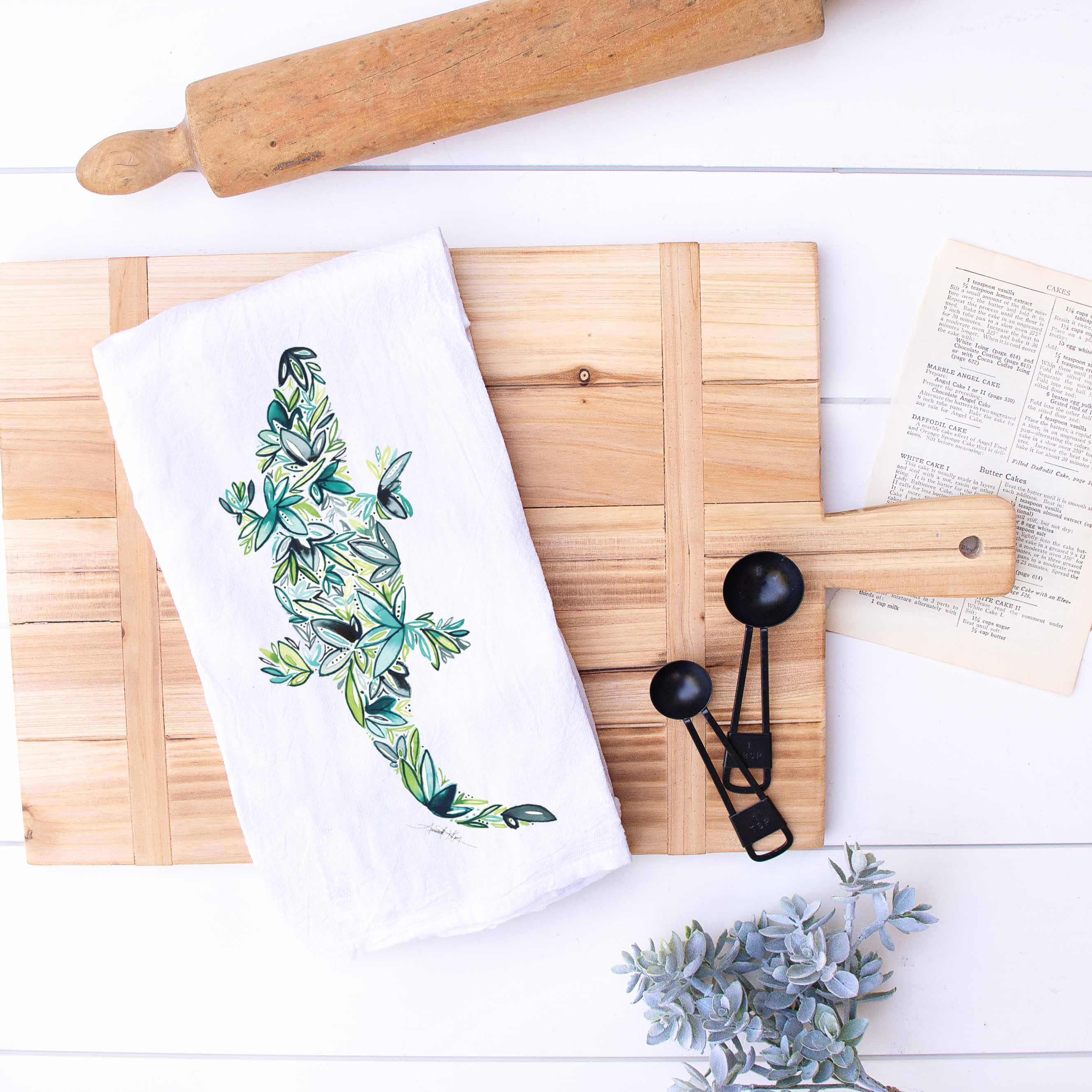 You'll love the newest addition to our marine life collection - The Alligator! Our high-quality flour sack tea towel showcases Amanda Klein's whimsical watercolor and splattered design. A uniquely perfect gift for any hostess, bride, teacher, friend or loved one.