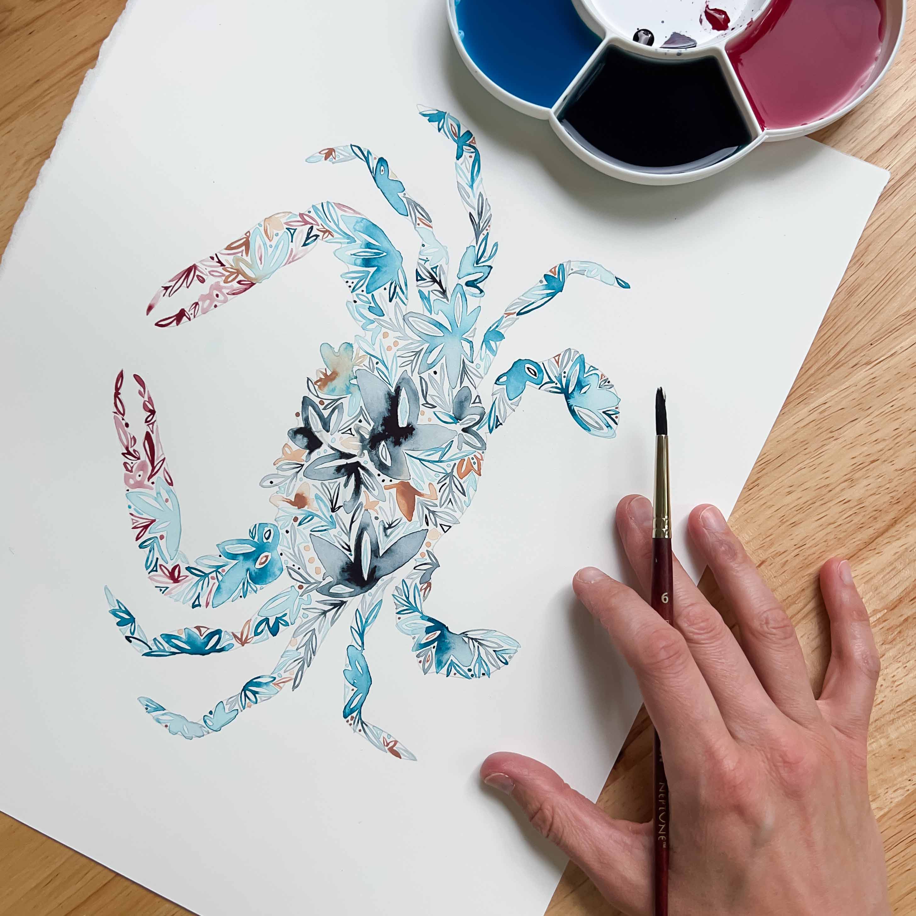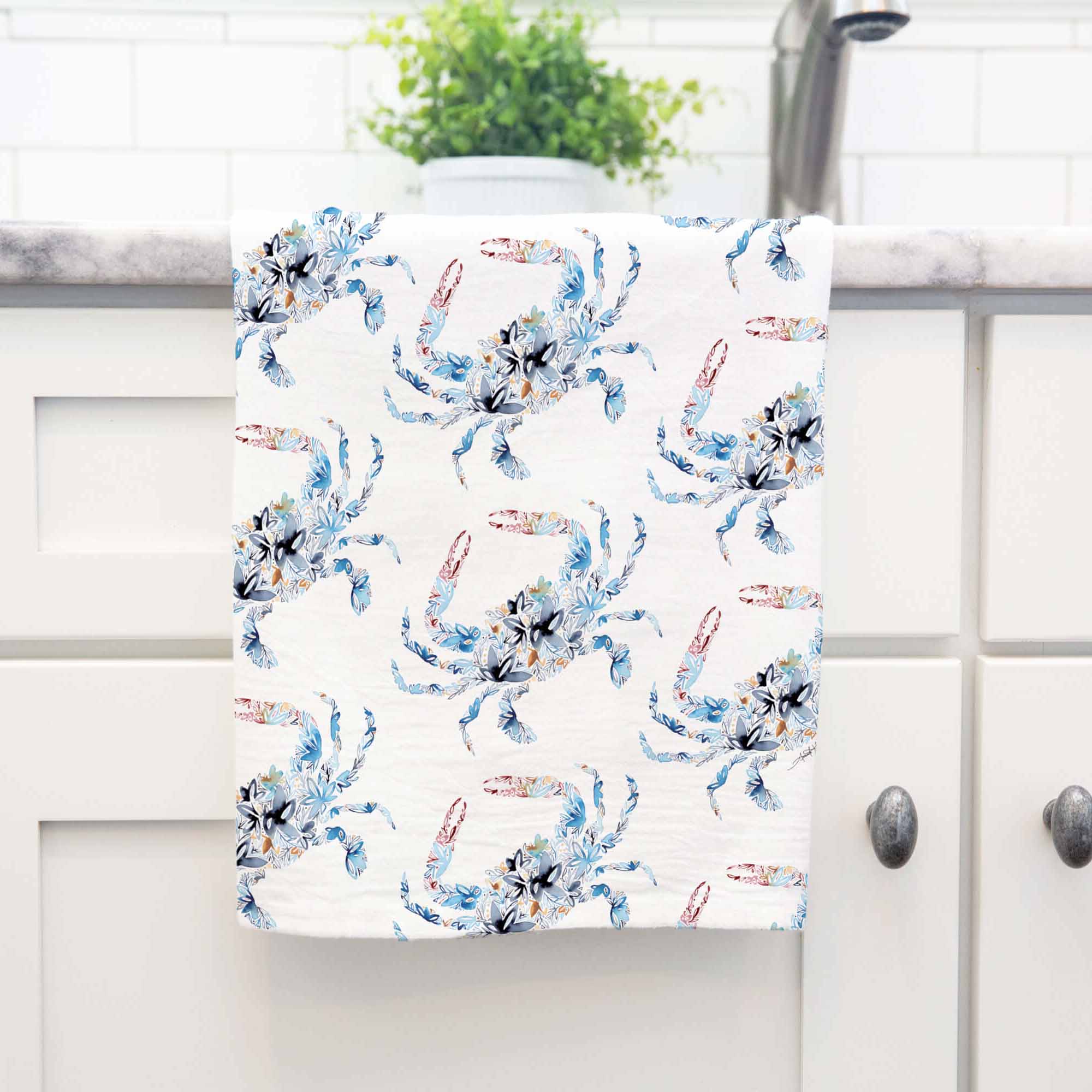 This high quality Blue Crab flour sack tea towel showcases Amanda Klein's whimsical watercolor and splattered design. A uniquely perfect gift for any hostess, bride, teacher, friend or loved one.