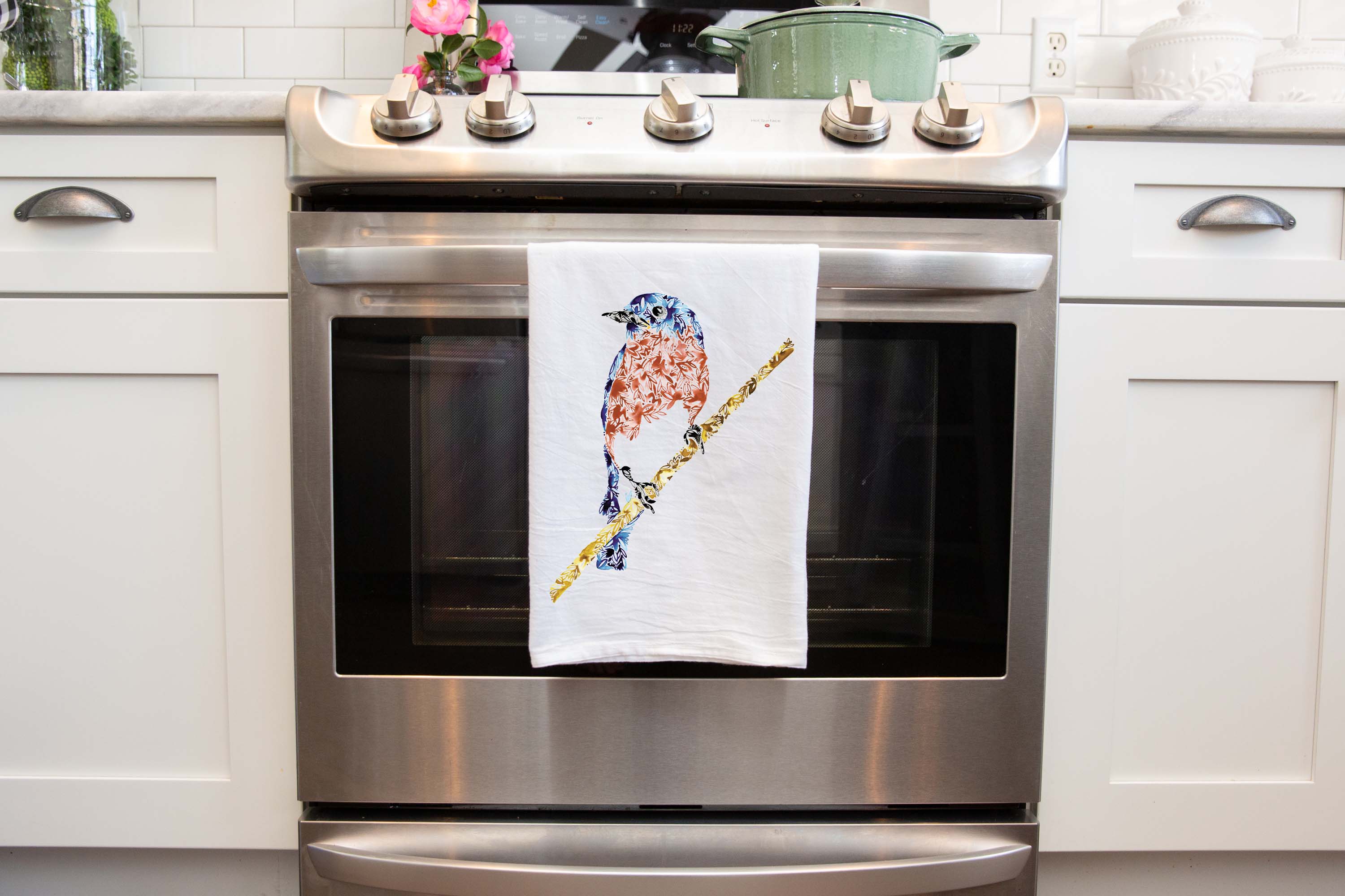 Introducing our newest woodland creature! This high quality Bluebird flour sack tea towel showcases Amanda Klein's whimsical watercolor and splattered design. A uniquely perfect gift for any hostess, bride, teacher, friend, or loved one.