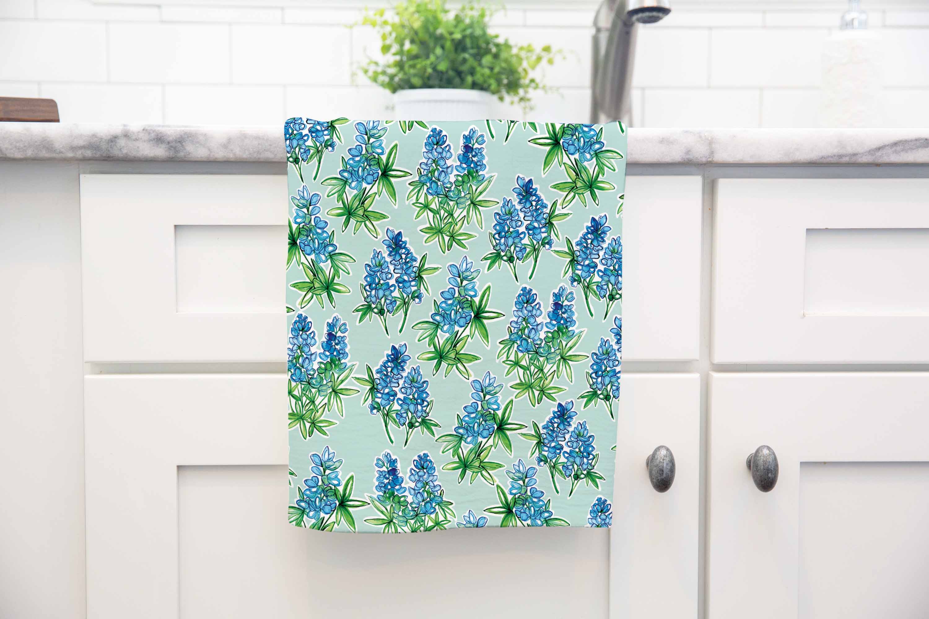 This high quality Bluebonnet flower design flour sack tea towel showcases Amanda Klein's whimsical watercolor and splattered design. A uniquely perfect gift for any hostess, bride, teacher, friend or loved one.