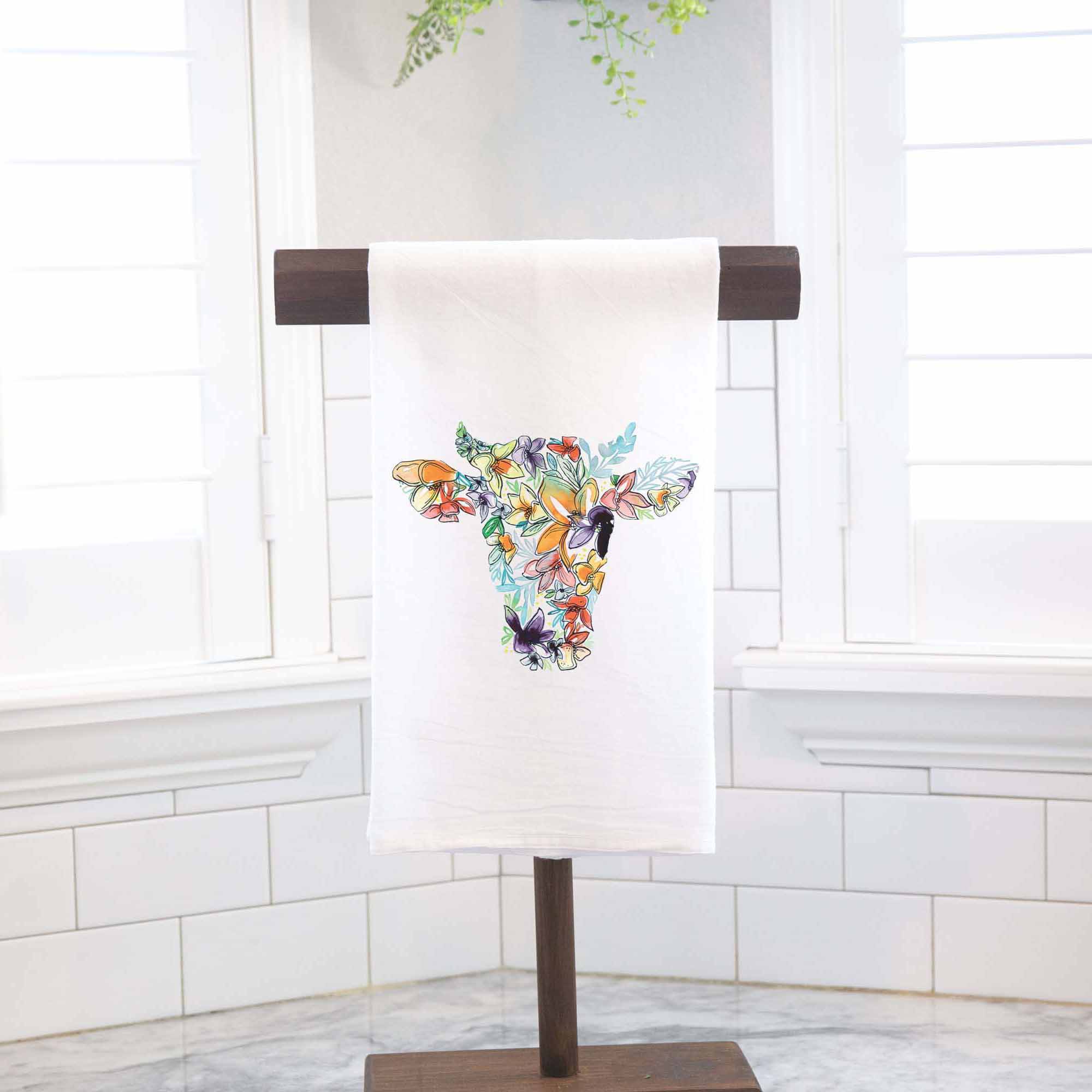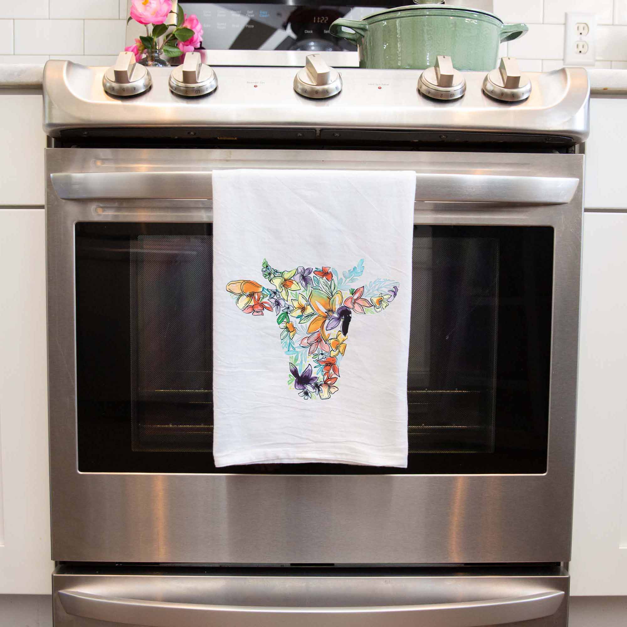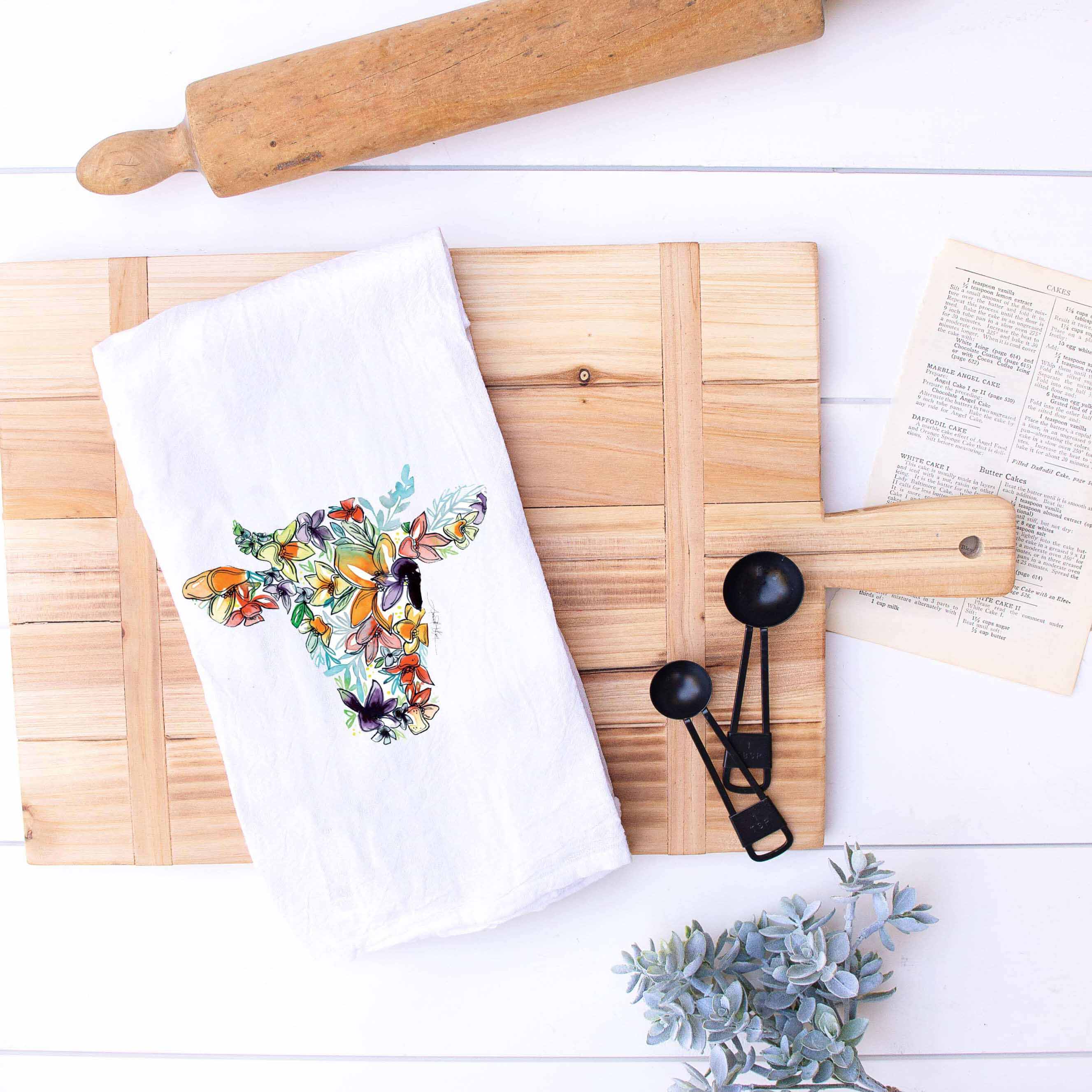 This high quality Cow flour sack tea towel showcases Amanda Klein's whimsical watercolor and splattered design. A uniquely perfect gift for any hostess, bride, teacher, friend, or loved one.