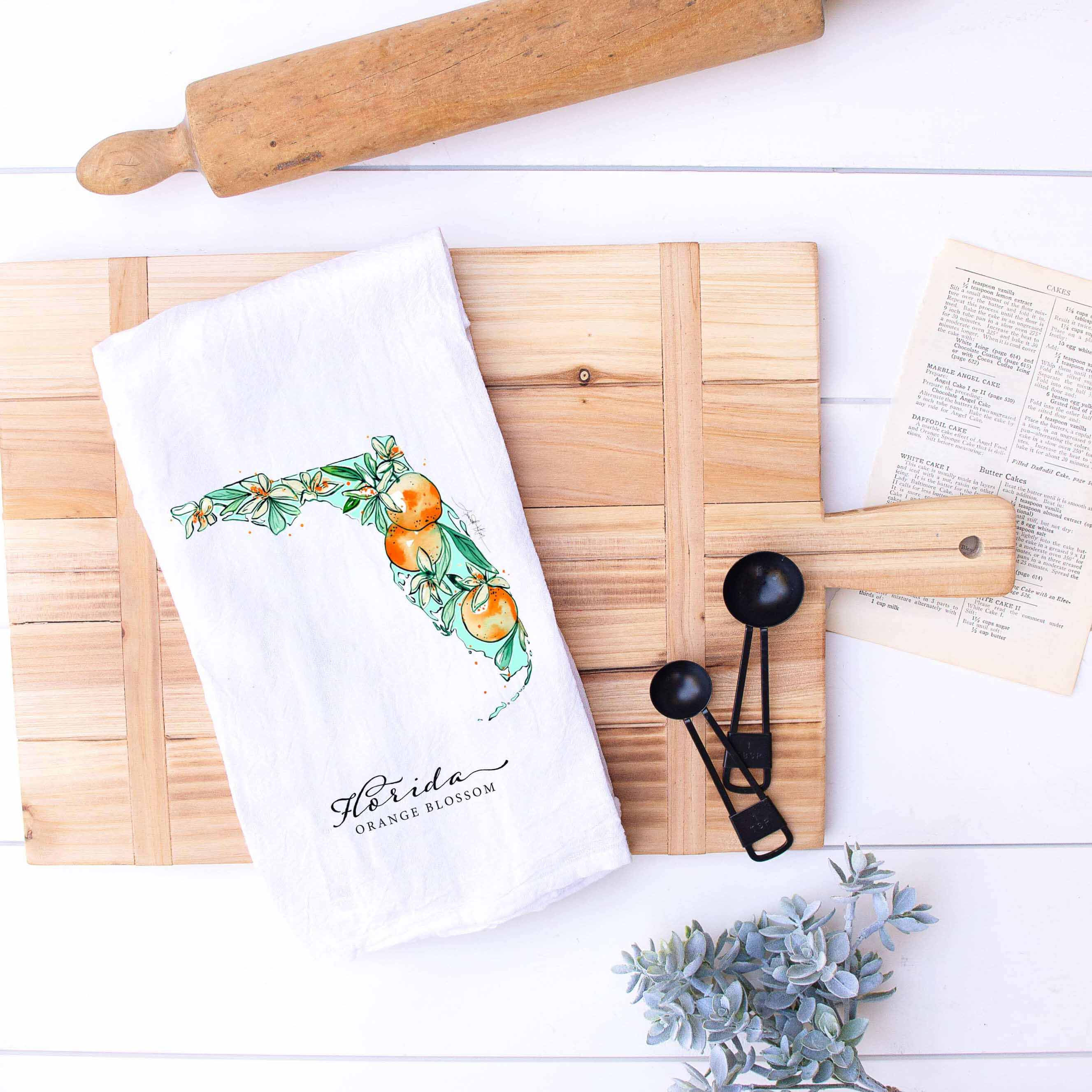 Featuring Florida's state flower, the Orange Blossom, this high quality flour sack tea towel showcases Amanda Klein's whimsical watercolor and splattered design. A uniquely perfect gift for any hostess, bride, teacher, friend, or well-traveled loved one.