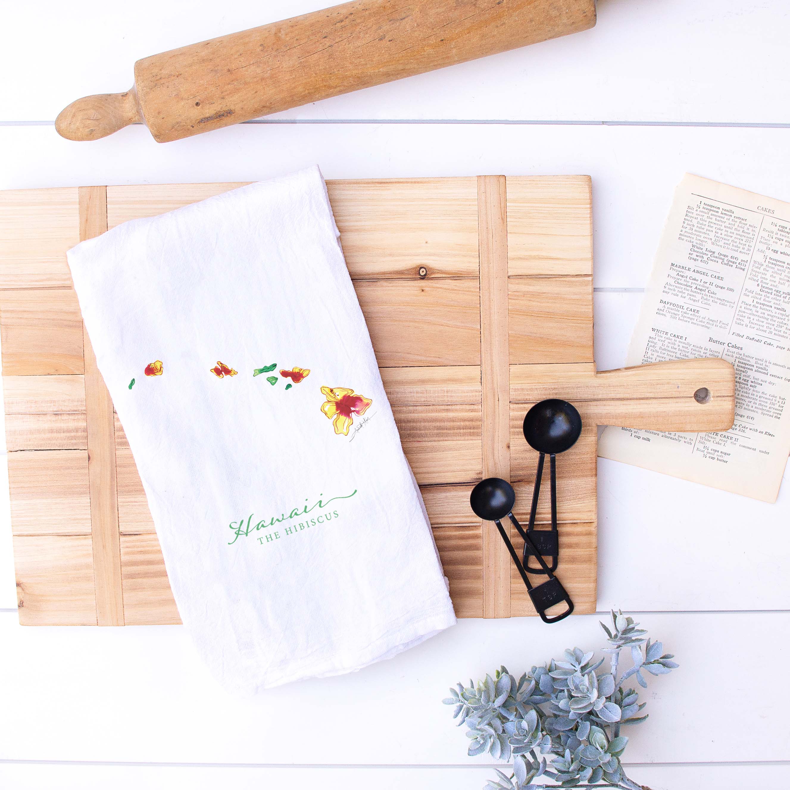 Featuring Hawaii's state flower, the Hibiscus, this high quality flour sack tea towel showcases Amanda Klein's whimsical watercolor and splattered design. A uniquely perfect gift for any hostess, bride, teacher, friend, or well-traveled loved one.
