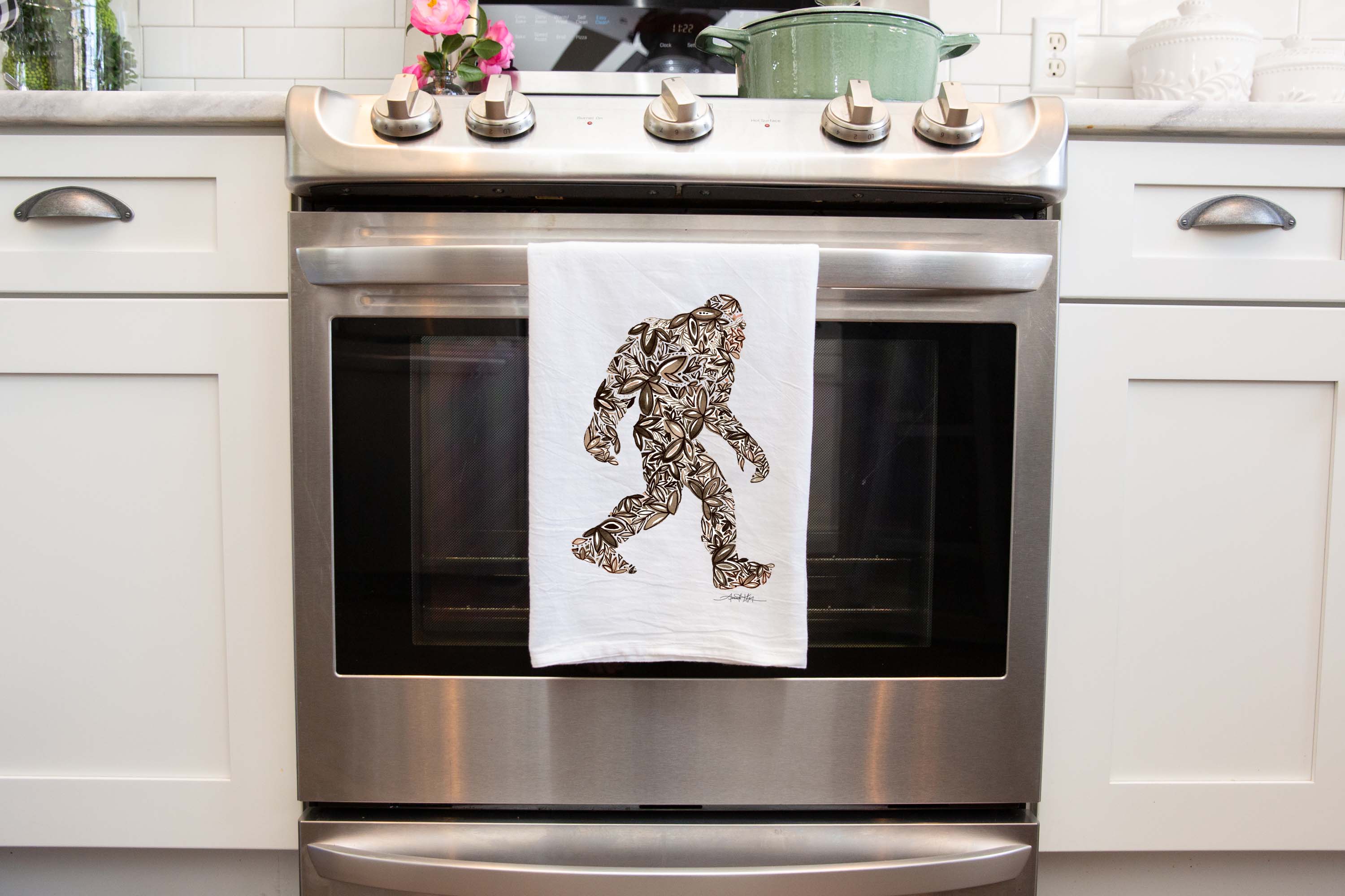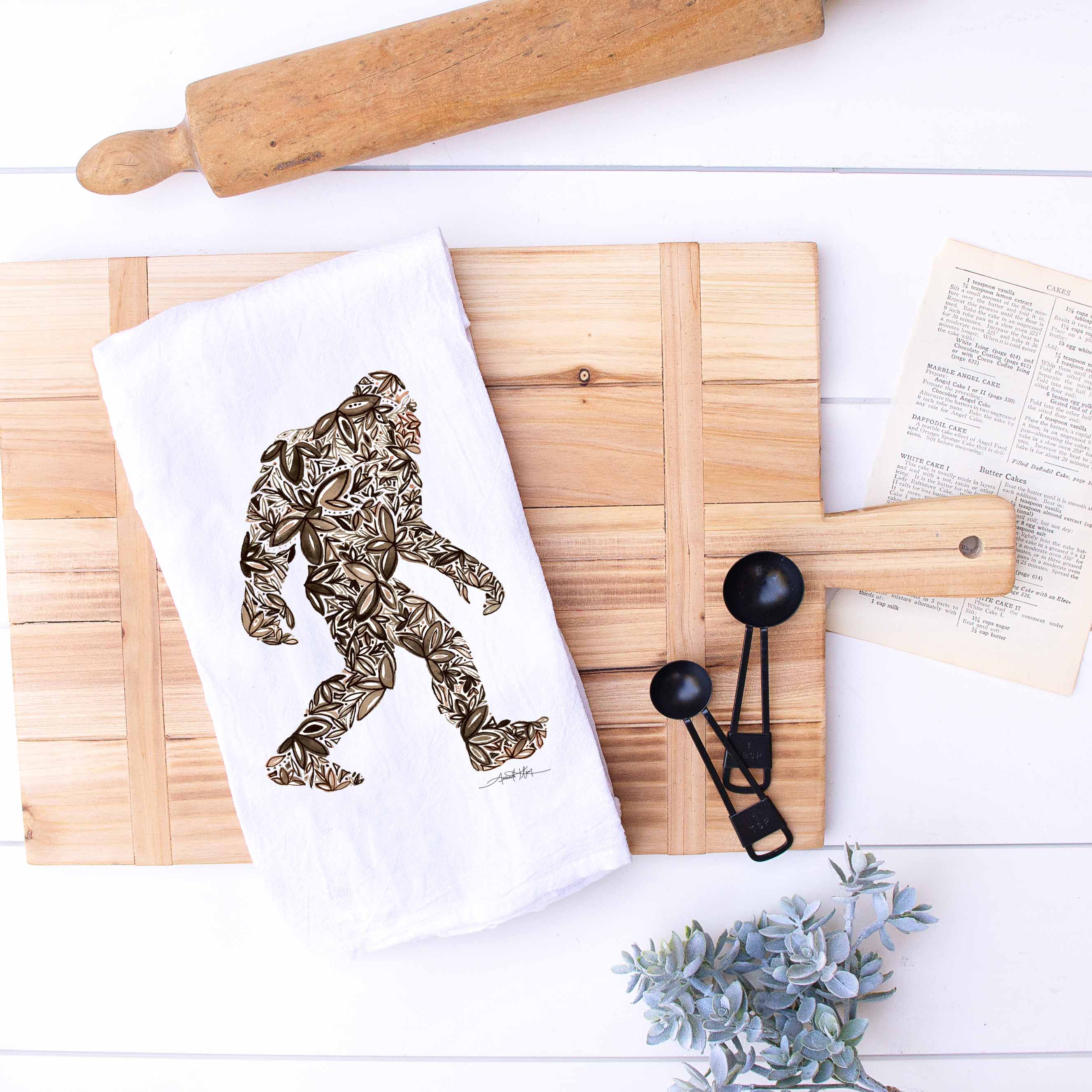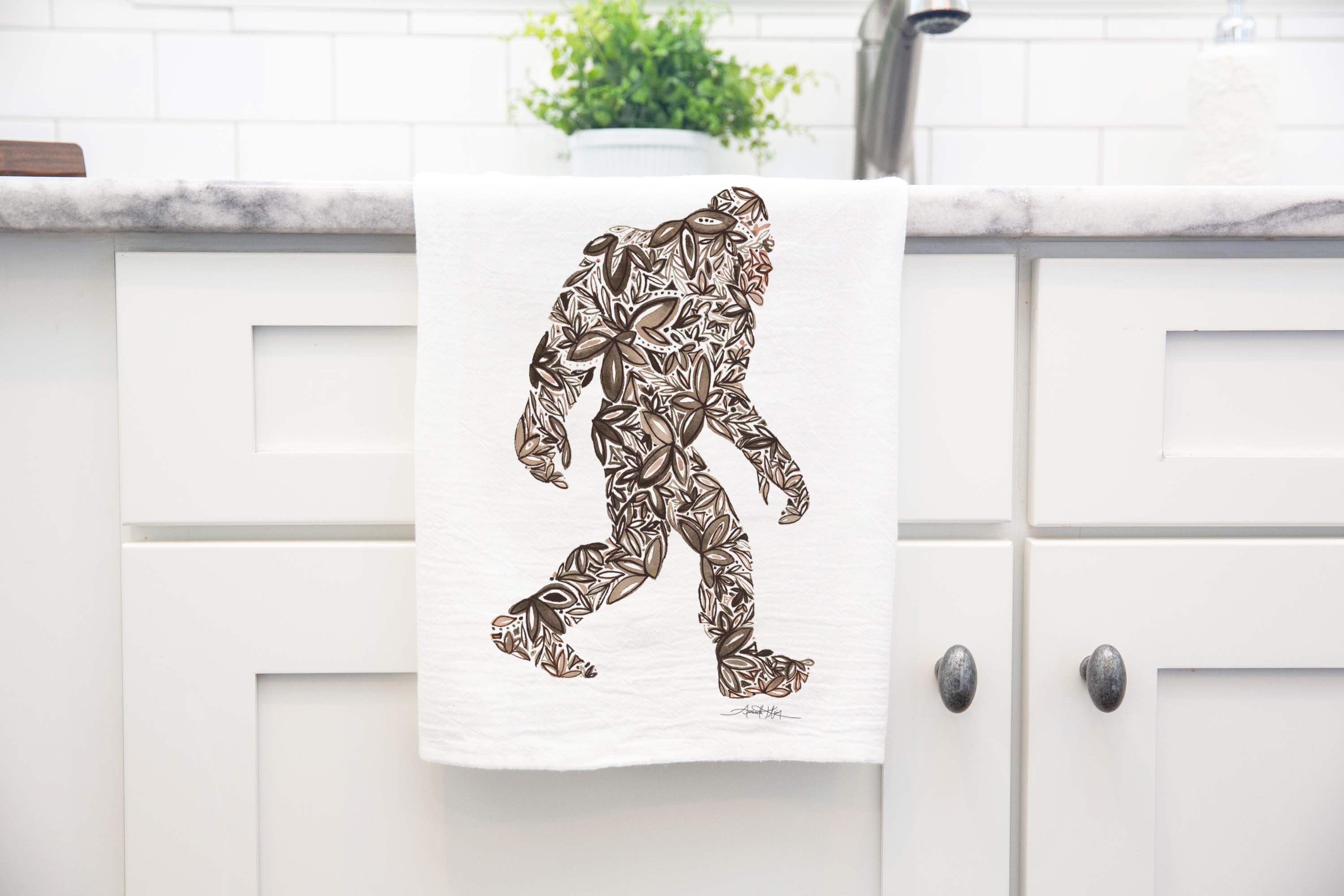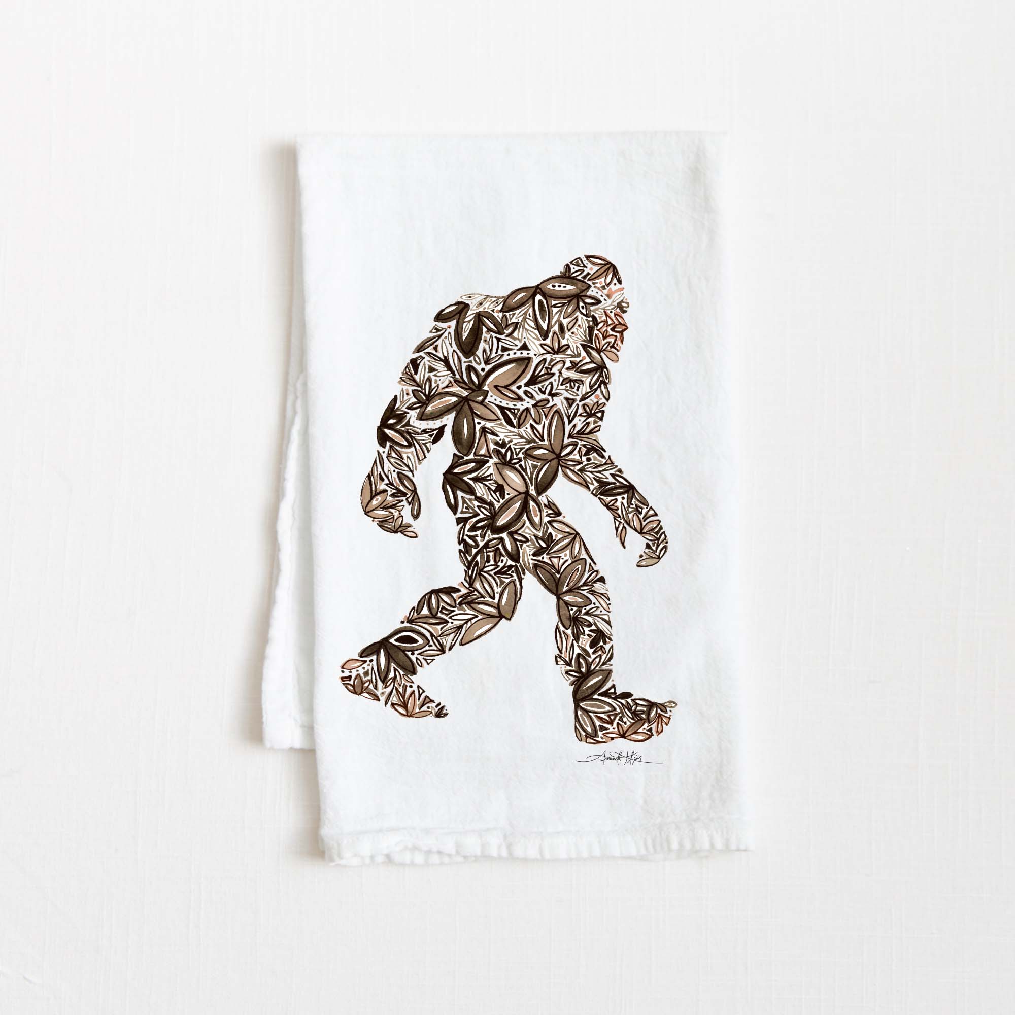 Celebrate the legend of Bigfoot with the newest addition to our Woodland Creatures collection! This high quality flour sack tea towel showcases Amanda Klein's whimsical watercolor and splattered design. A uniquely perfect gift for all you monster hunters out there.
