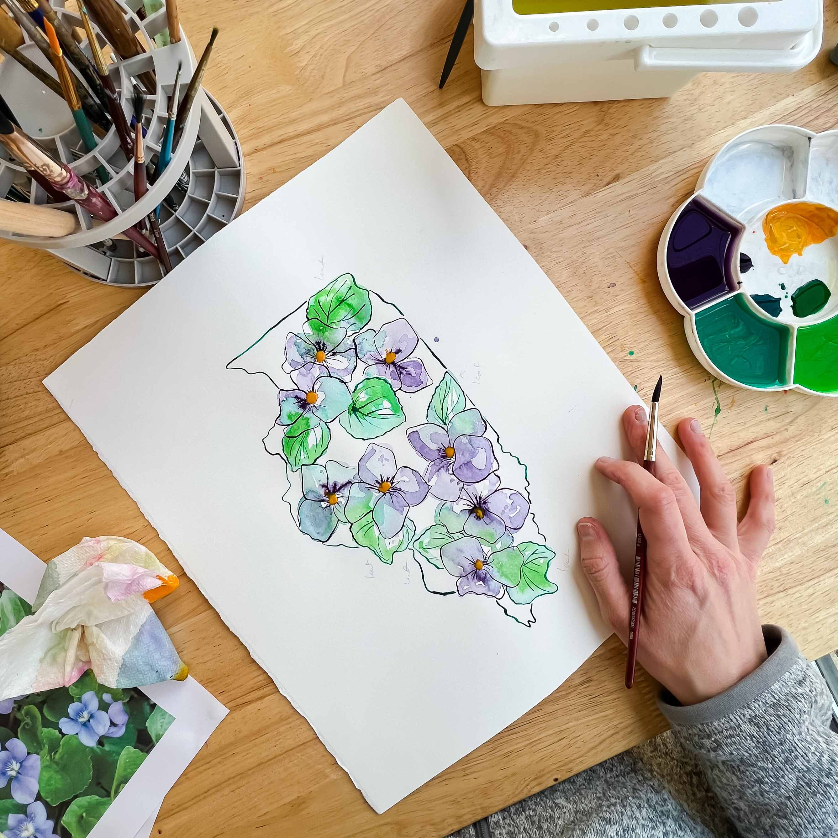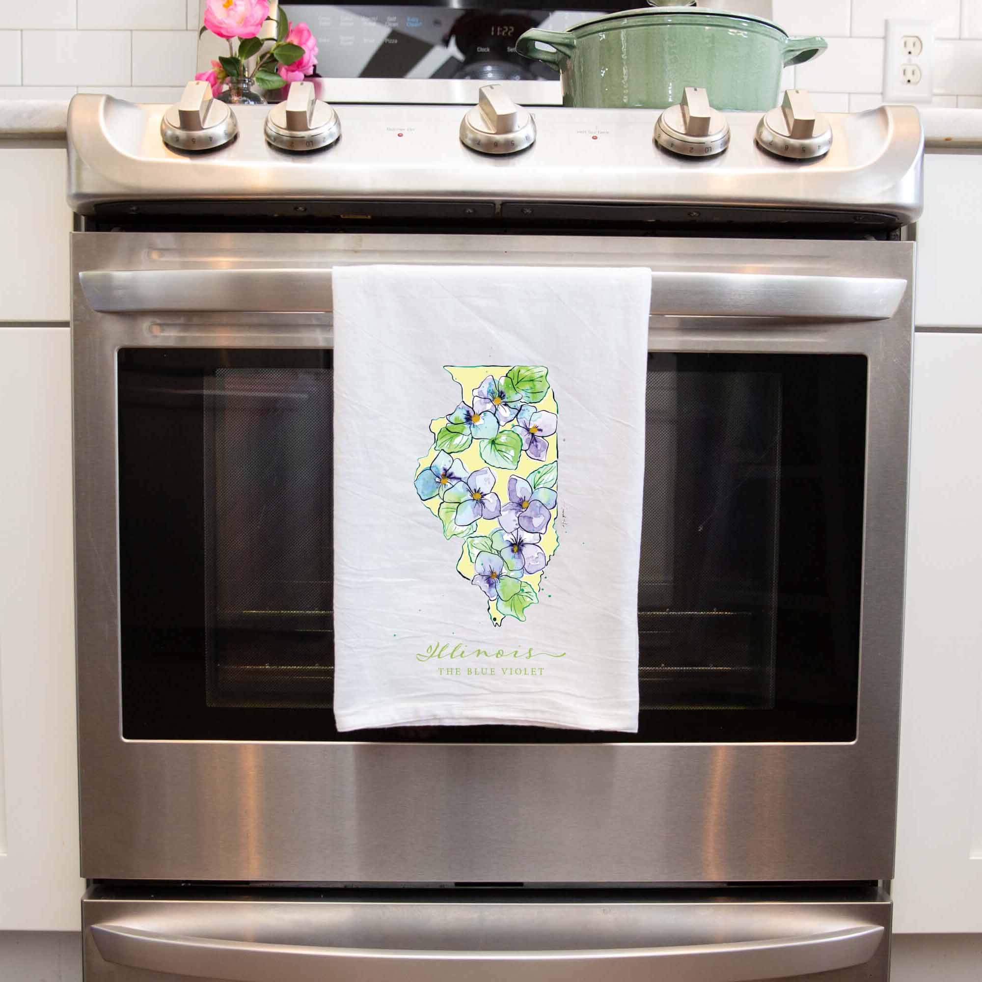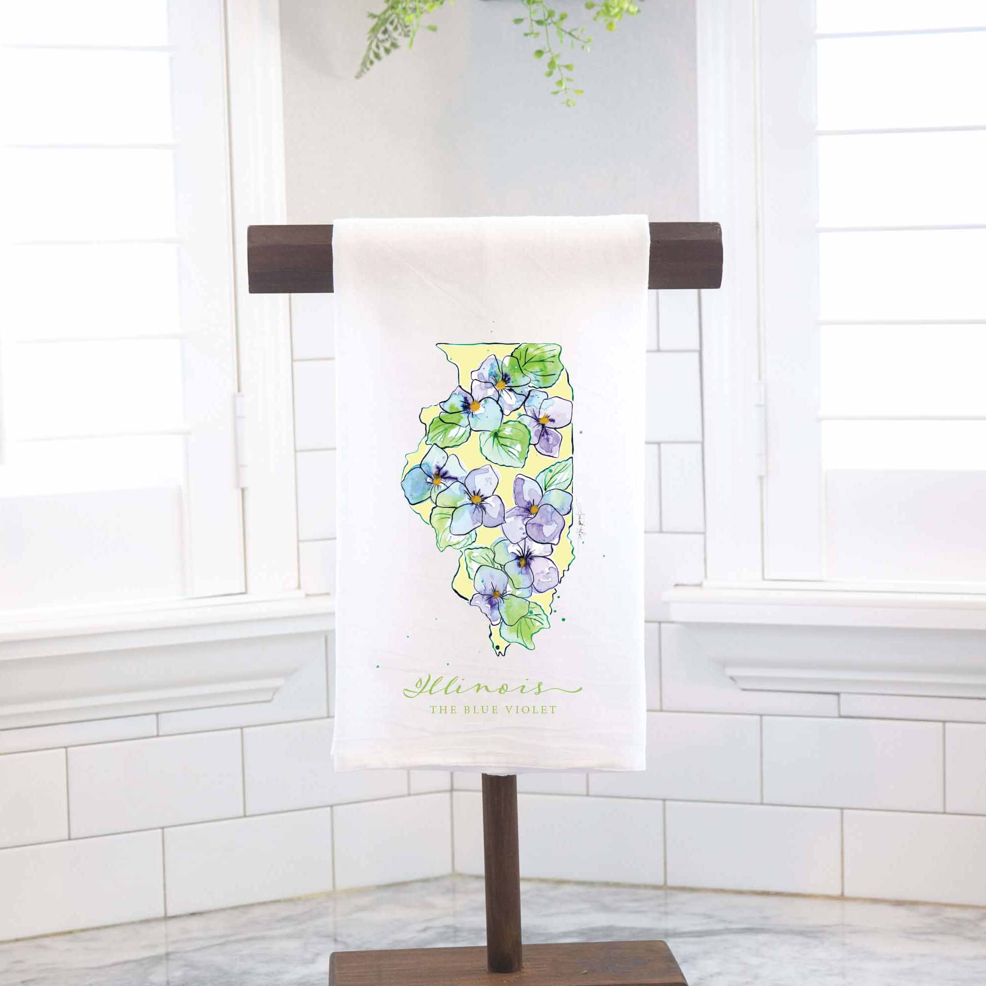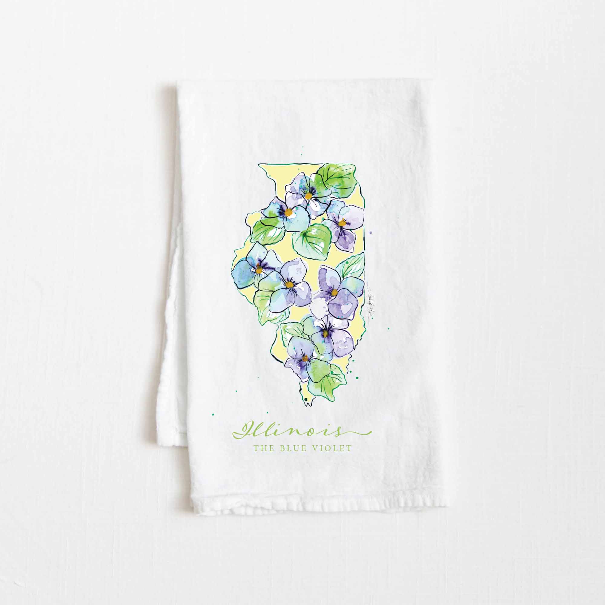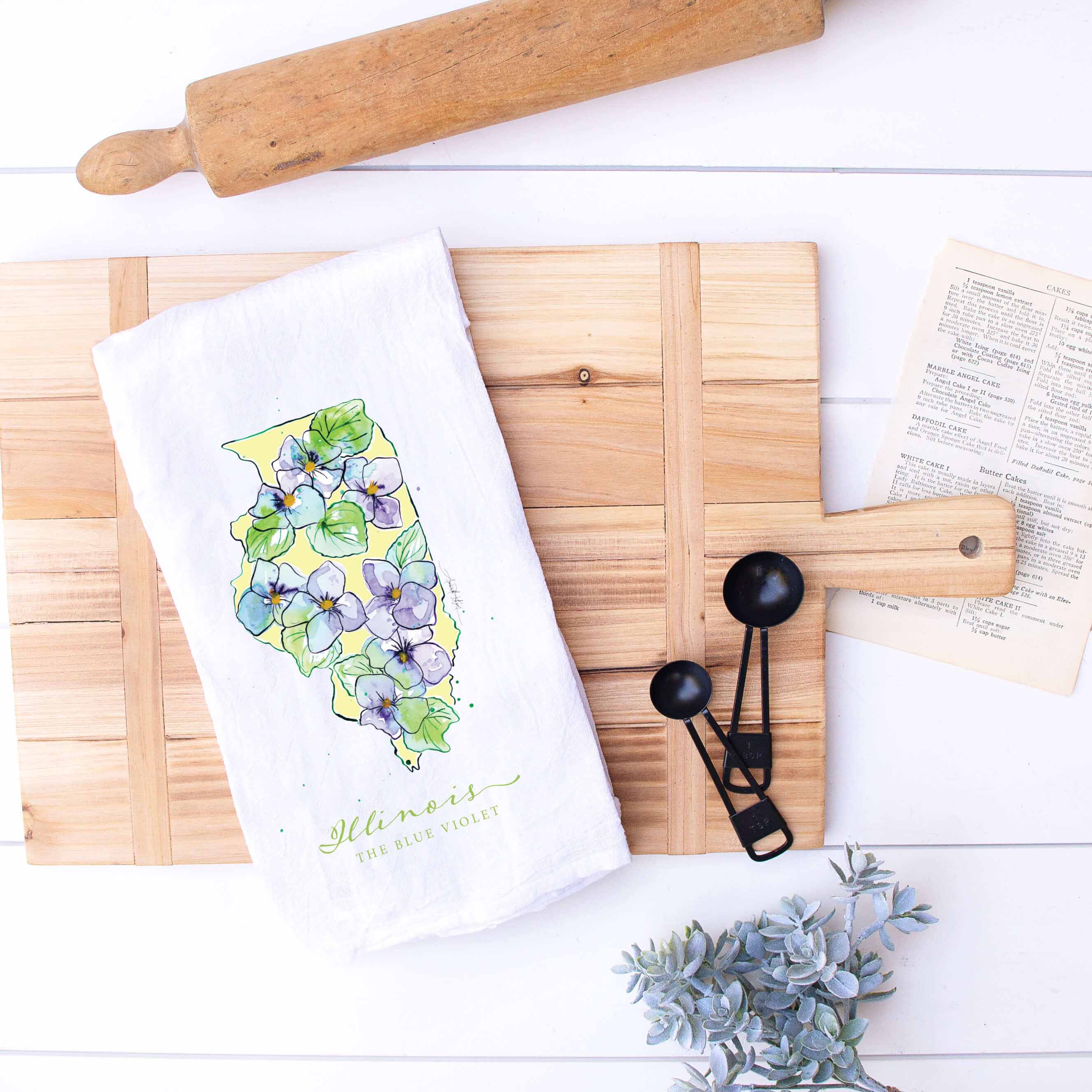 Featuring the Illinois state flower, the Blue Violet, this high quality flour sack tea towel showcases Amanda Klein's whimsical watercolor and splattered design. A uniquely perfect gift for any hostess, bride, teacher, friend, or well-traveled loved one.