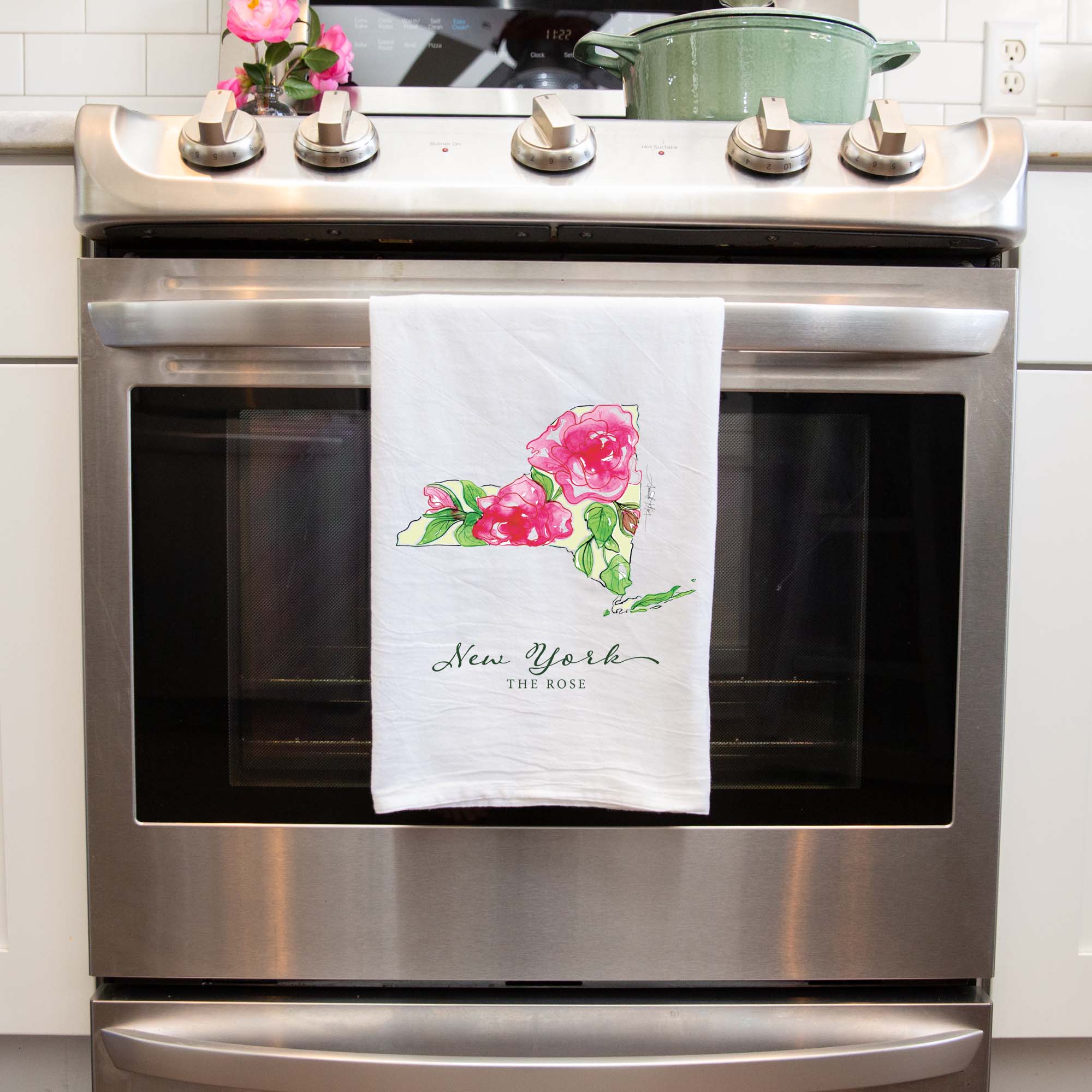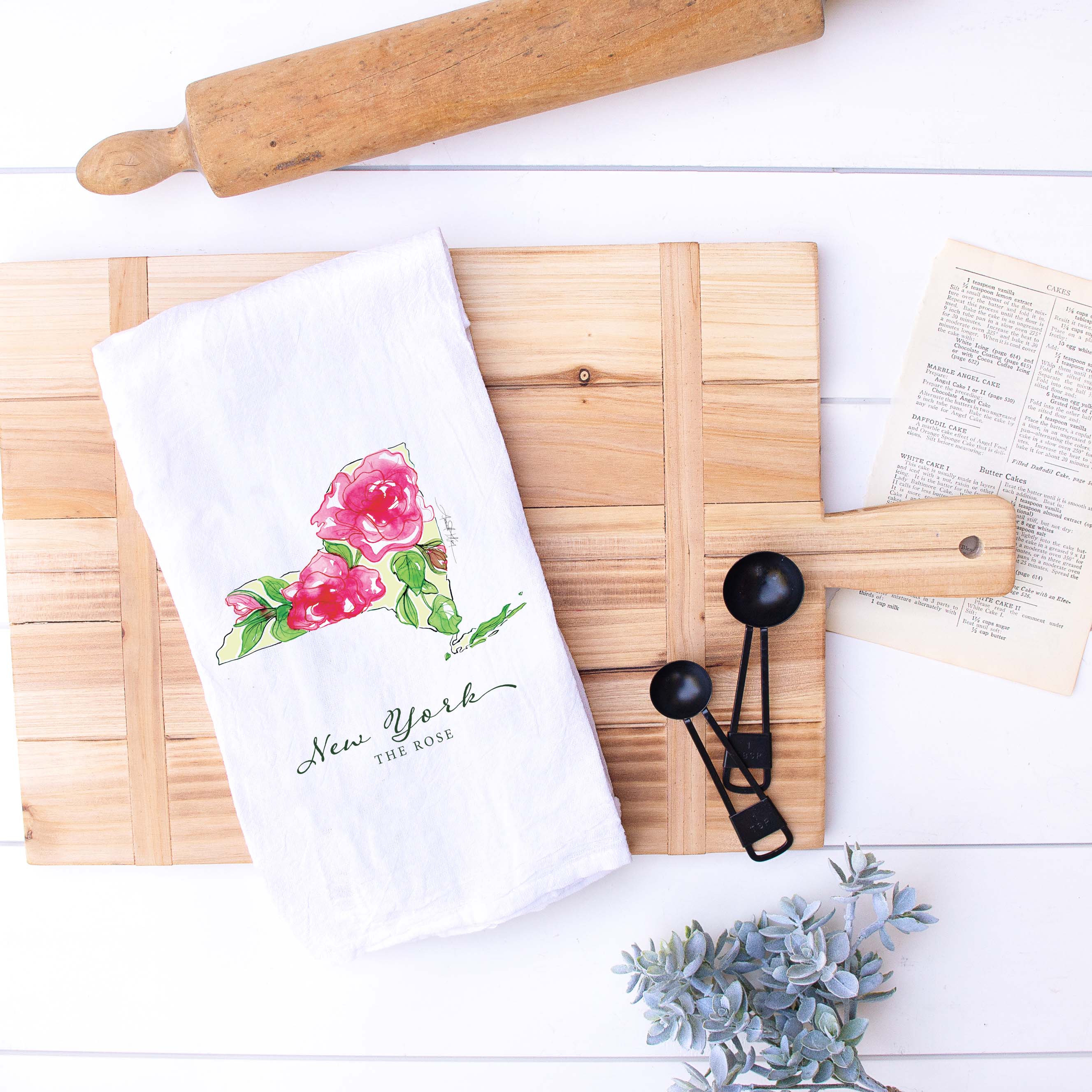 Featuring New York's state flower, the Rose, this high quality flour sack tea towel showcases Amanda Klein's whimsical watercolor and splattered design. A uniquely perfect gift for any hostess, bride, teacher, friend, or well-traveled loved one.