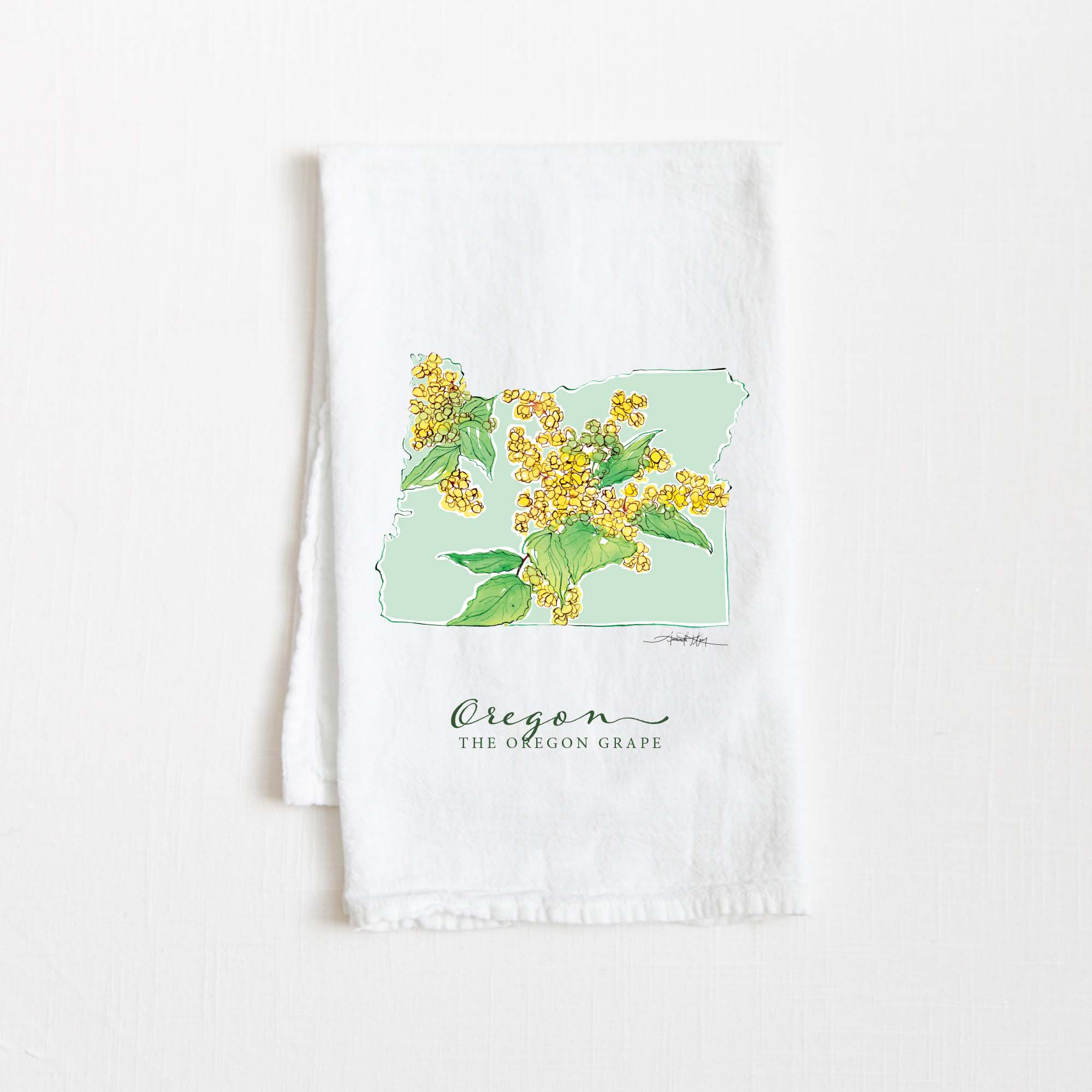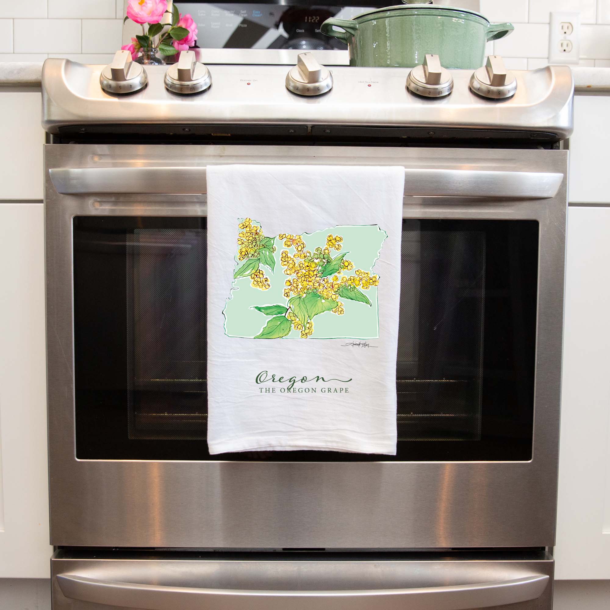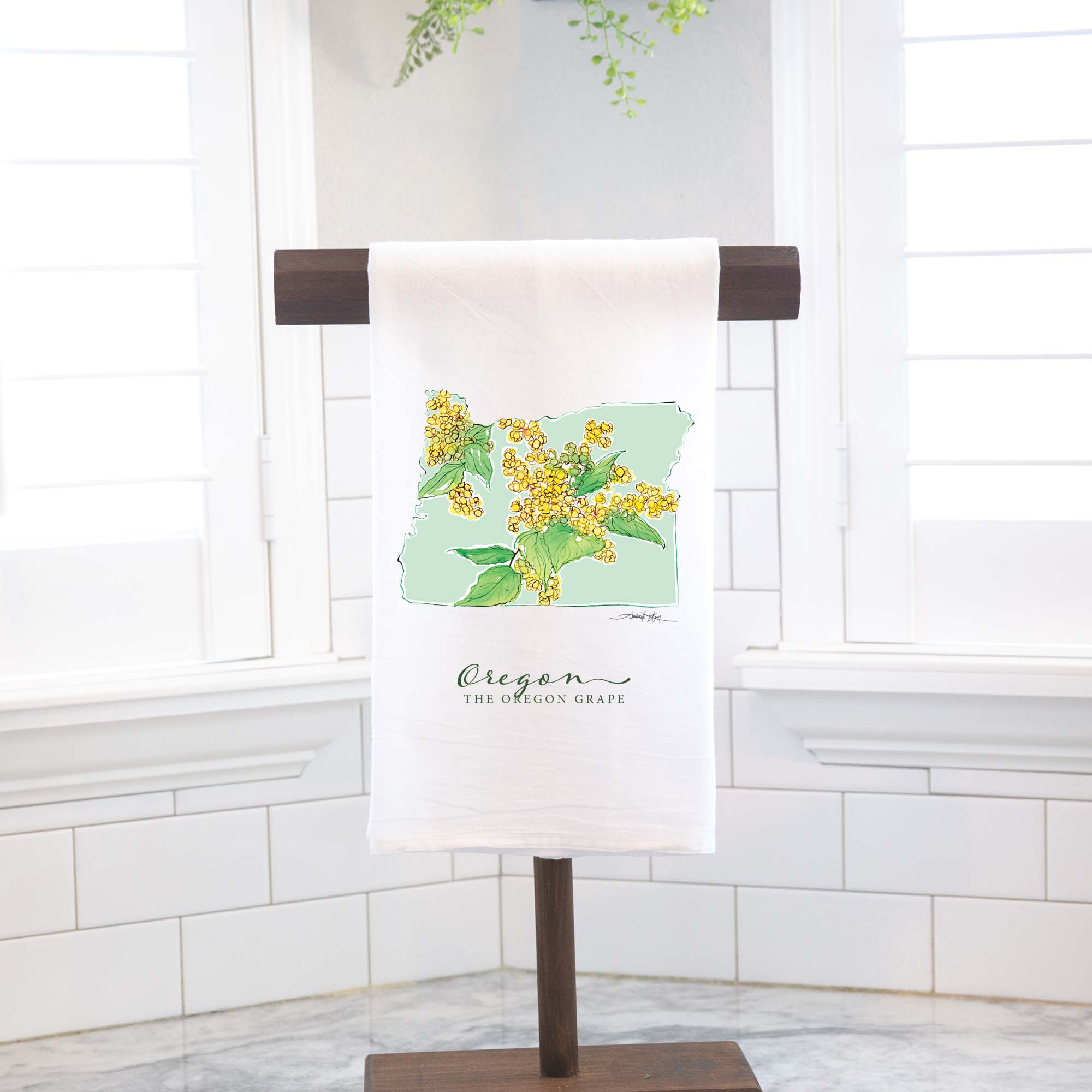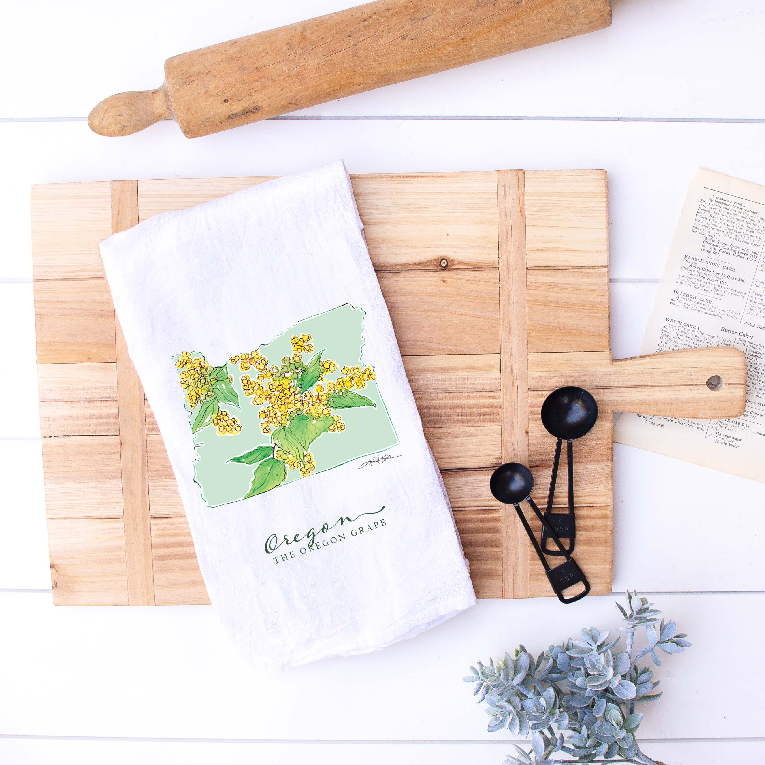 Featuring Oregon's state flower, the Oregon Grape, this high quality flour sack tea towel showcases Amanda Klein's whimsical watercolor and splattered design. A uniquely perfect gift for any hostess, bride, teacher, friend, or well-traveled loved one.