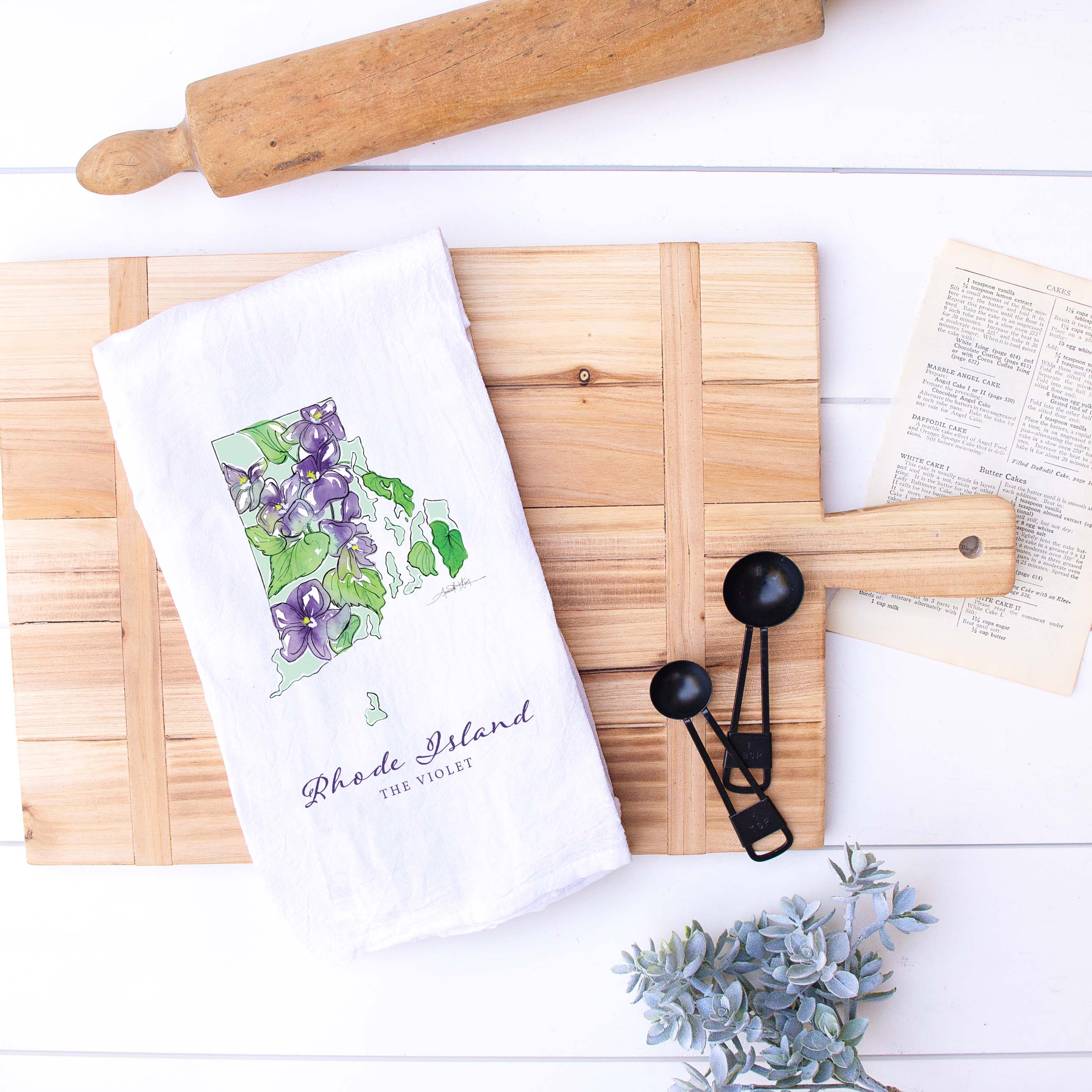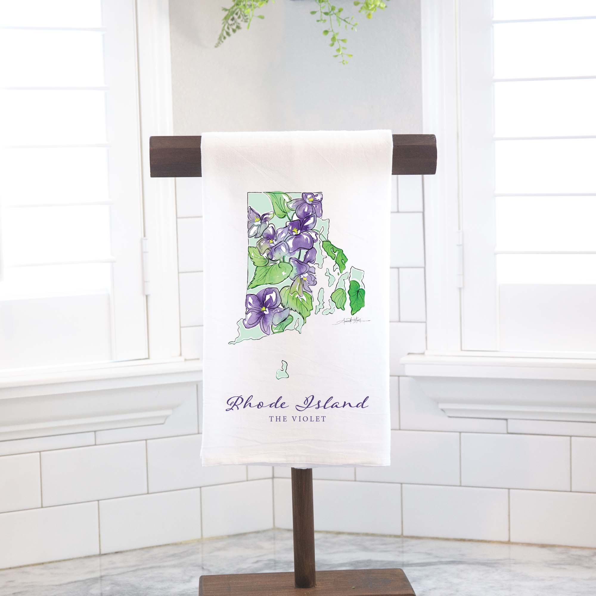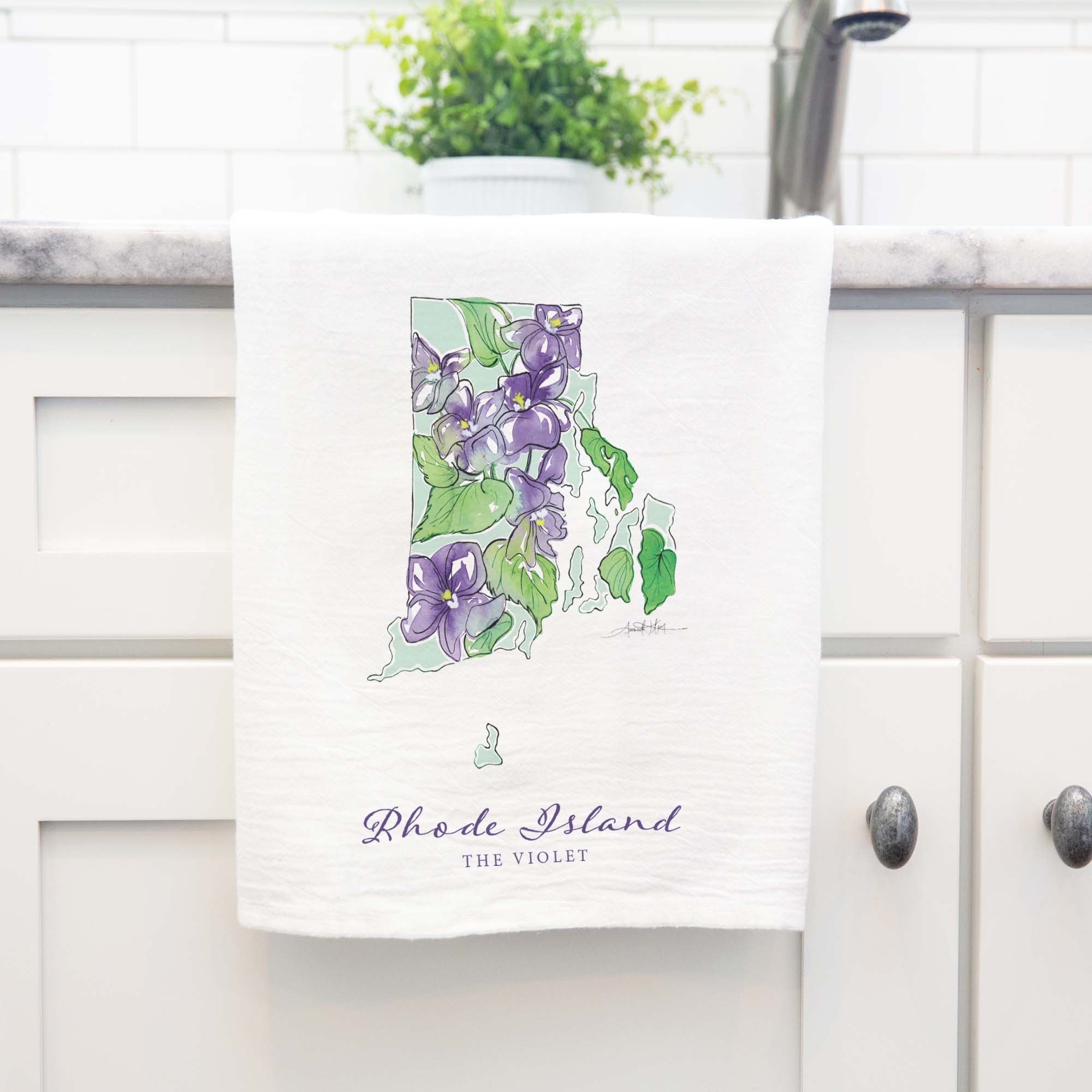 Featuring Rhode Island's state flower, the Violet, this high quality flour sack tea towel showcases Amanda Klein's whimsical watercolor and splattered design. A uniquely perfect gift for any hostess, bride, teacher, friend, or well-traveled loved one.