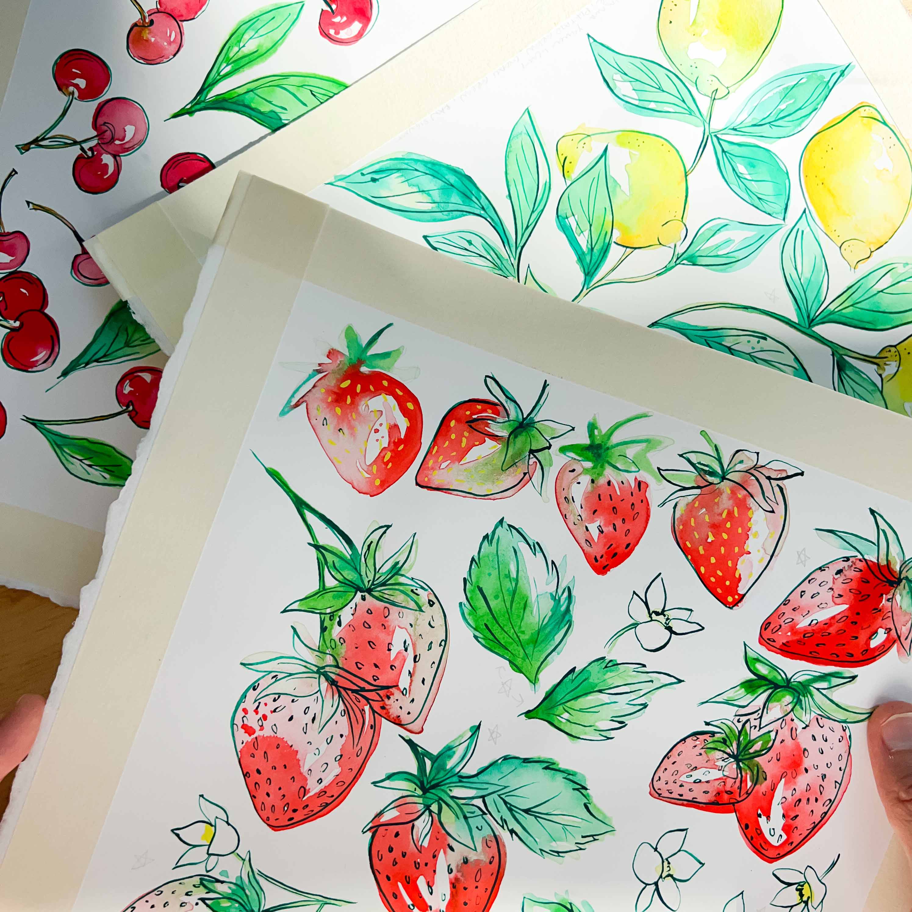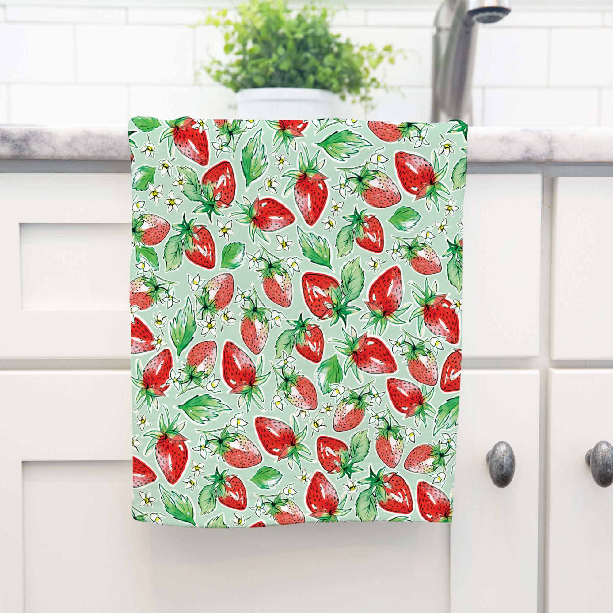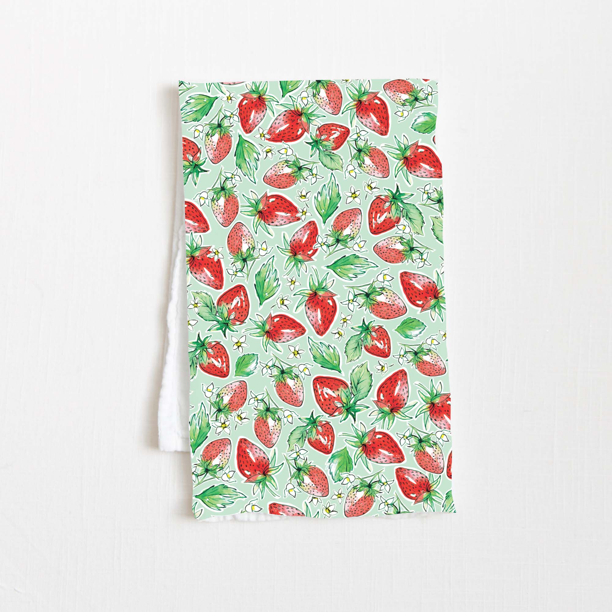 This high quality Strawberry design flour sack tea towel showcases Amanda Klein's whimsical watercolor and splattered design. A uniquely perfect gift for any hostess, bride, teacher, friend, or loved one.