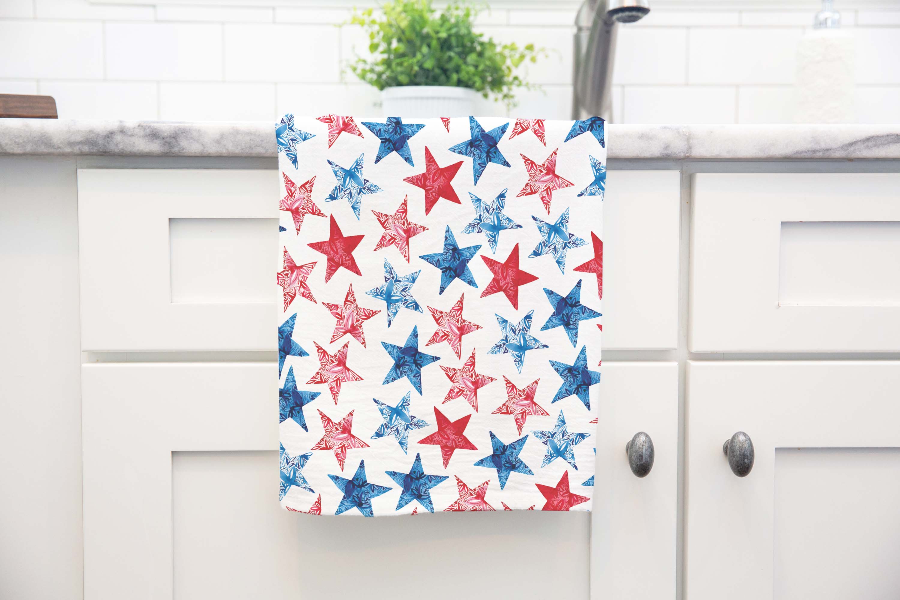 Red, White, and Blue Stars Flour Sack Tea Towel