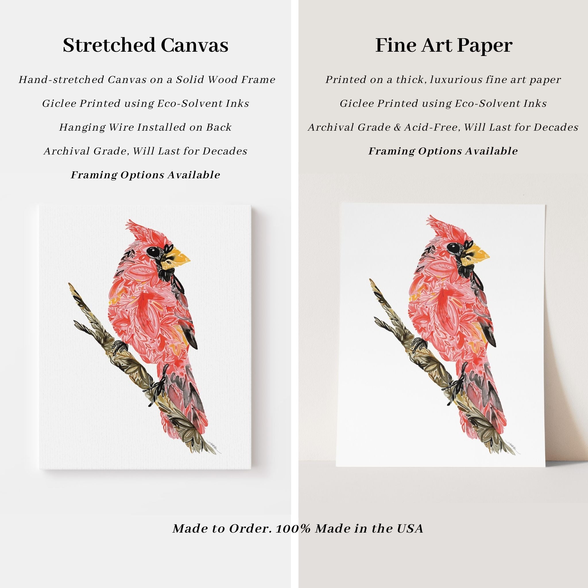 Original artwork created entirely by hand using watercolor and ink, by nationally recognized artist Amanda Klein. With over 9,000 five-star reviews, our artwork is trusted by collectors nationwide. All pieces are 100% made in the USA, printed to order, and giclée-printed using eco-solvent inks on archival-grade materials designed to last for decades. Orders ship within 2–5 business days.