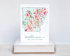 Now available in our beautiful state flower design! Our notecard box set features 8 blank note cards, 8 kraft envelopes, and 8 envelope closure stickers. Each card features a beautiful floral design showcasing the state flower, with the state name and flower name printed across the bottom. A uniquely perfect gift for any hostess, bride, teacher, friend, or well-traveled loved one.