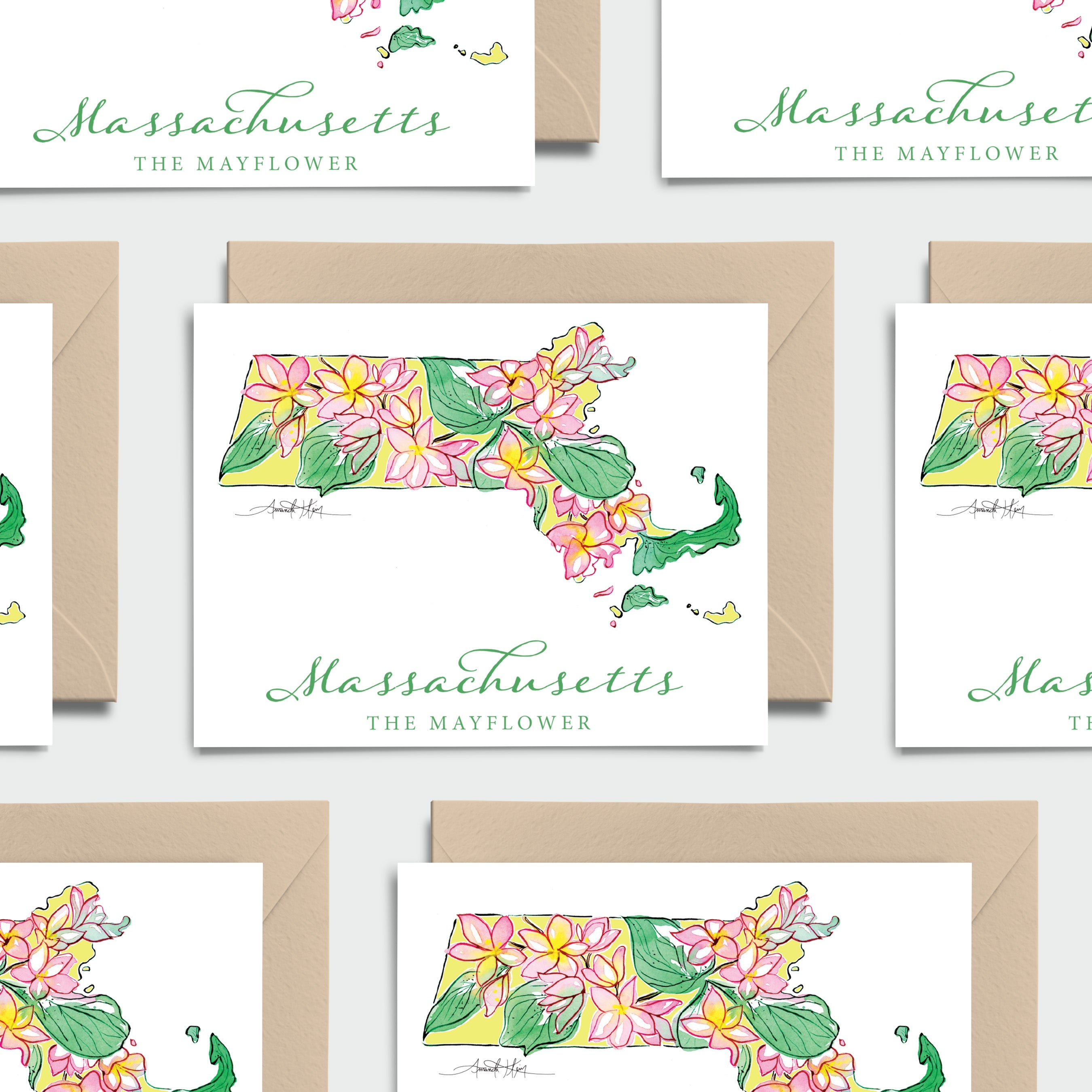 Now available in our beautiful state flower design! Our notecard box set features 8 blank note cards, 8 kraft envelopes, and 8 envelope closure stickers. Each card features a beautiful floral design showcasing the state flower, with the state name and flower name printed across the bottom. A uniquely perfect gift for any hostess, bride, teacher, friend, or well-traveled loved one.