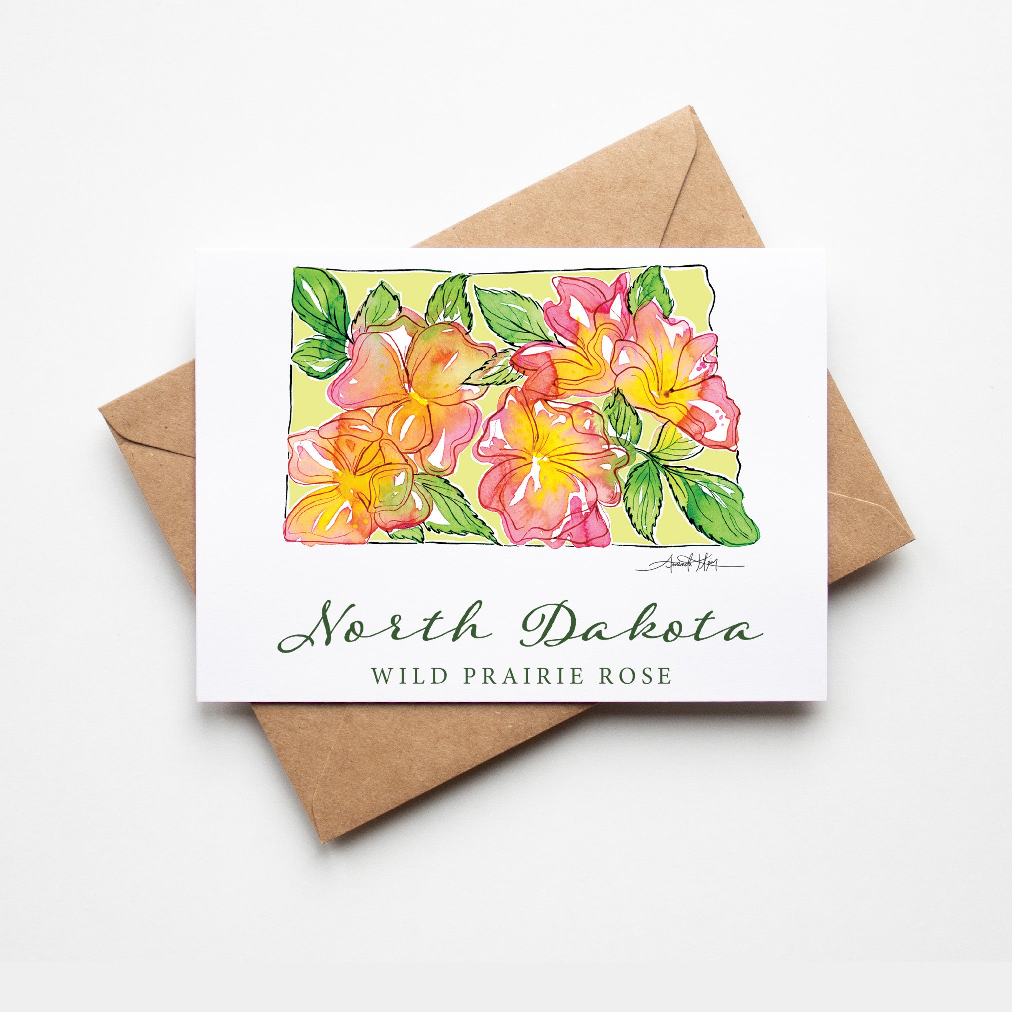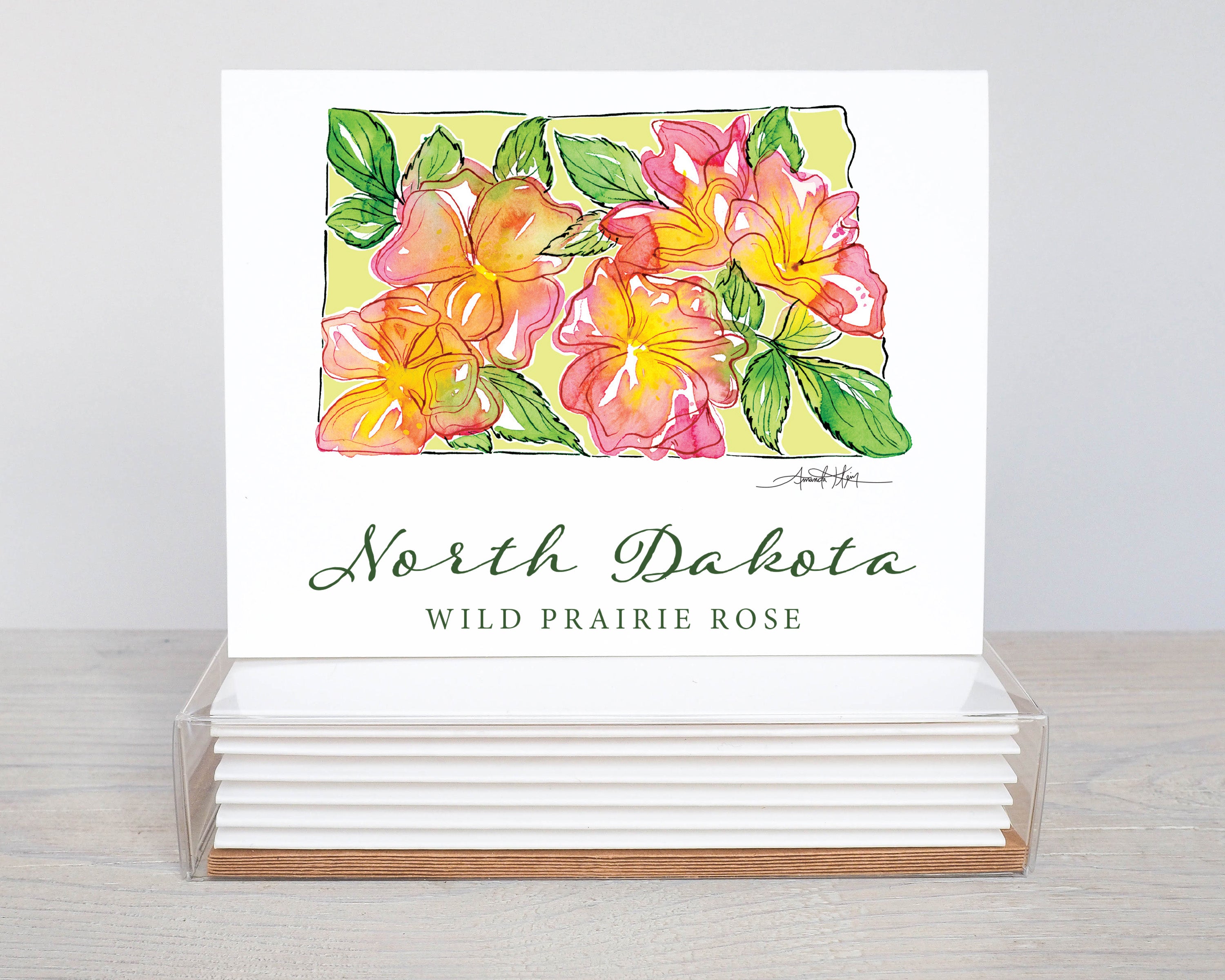 North Dakota Wild Prairie Rose State Flower Notecard Set