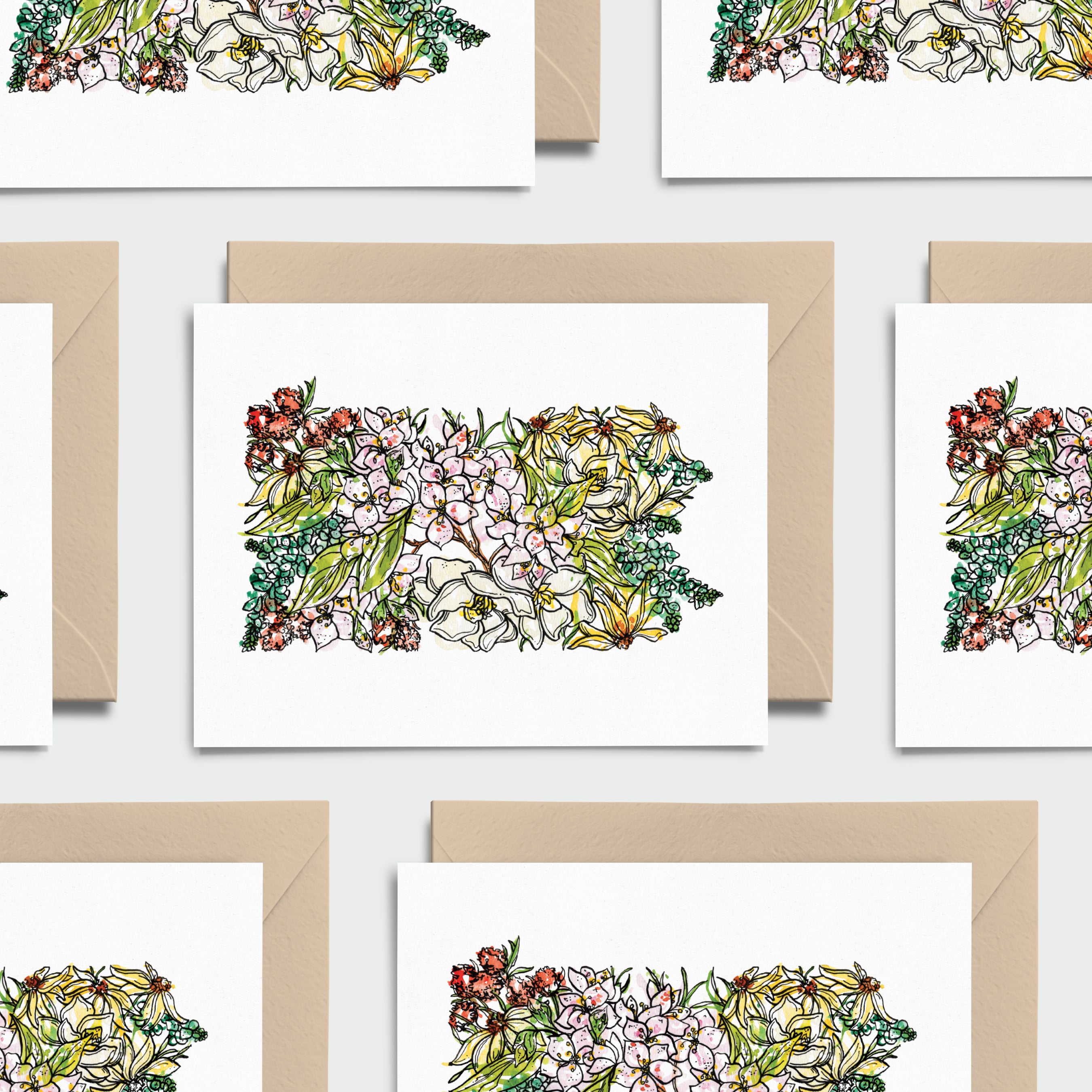 Featuring wildflowers specific to each individual state, these high quality notecards showcase Amanda Klein’s whimsical watercolor artwork. A uniquely perfect gift for any hostess, bride, teacher, friend or well traveled loved one.