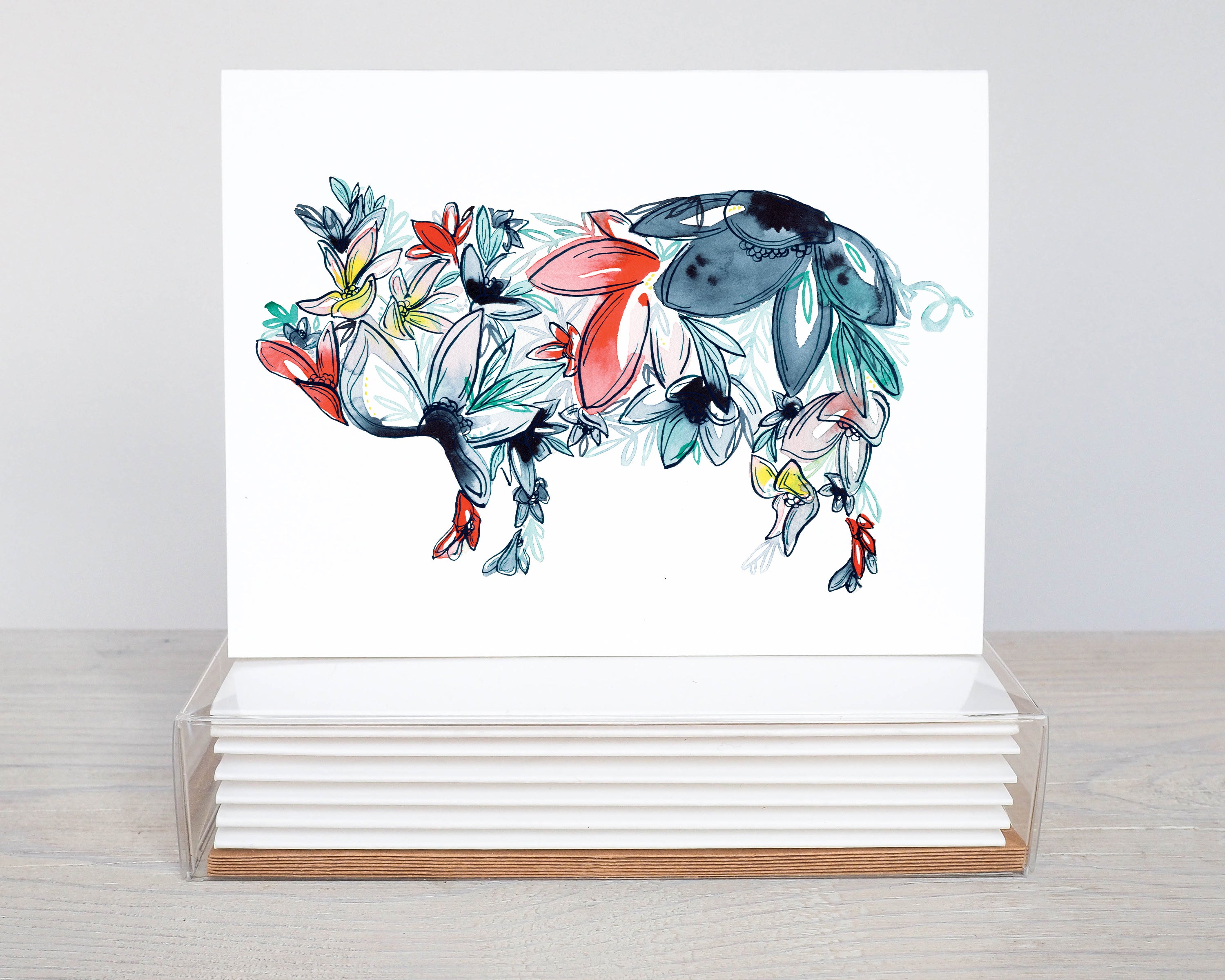 These high quality note cards showcase Amanda Klein's whimsical watercolor and ink designs. A uniquely perfect gift for any hostess, bride, teacher, friend or animal loving loved one.