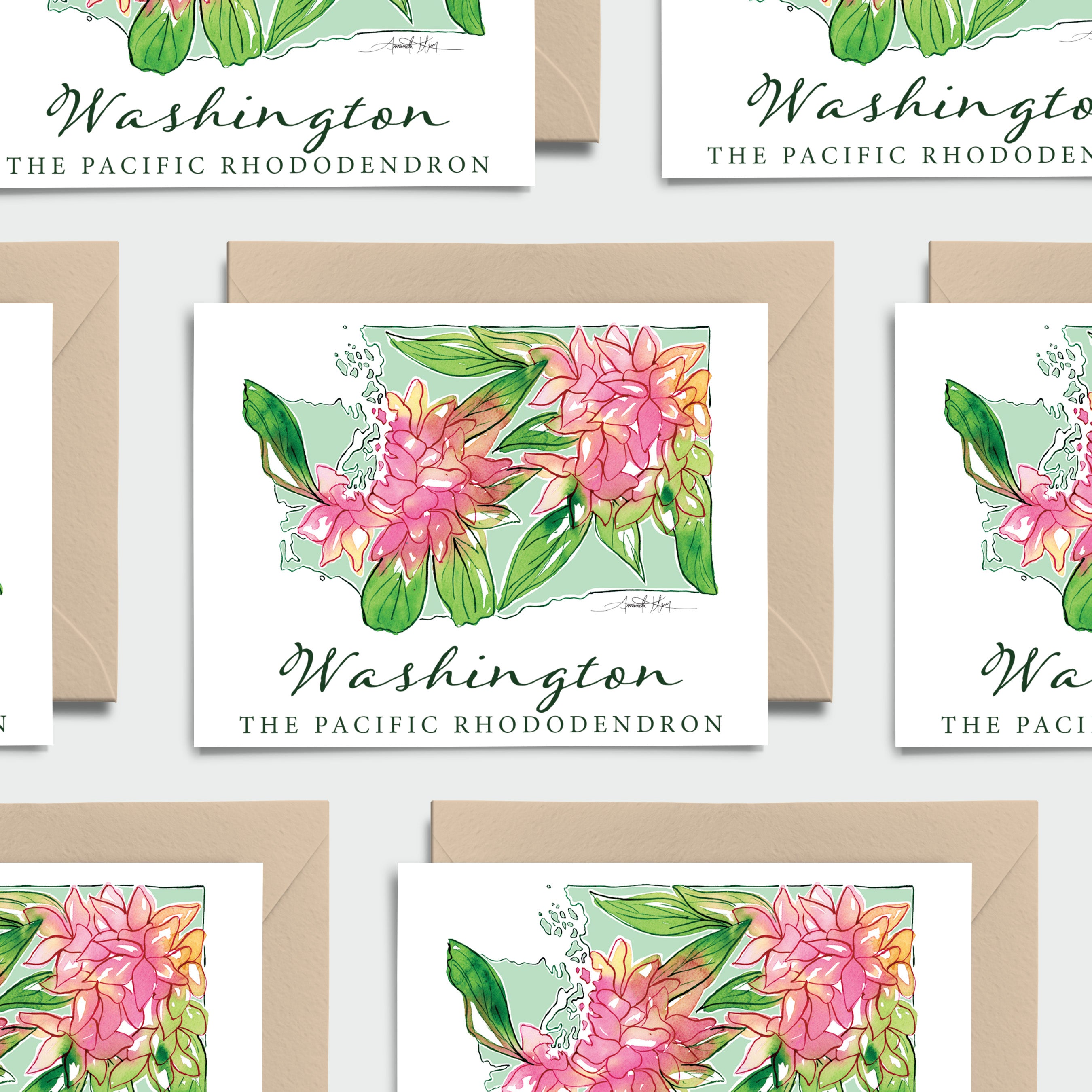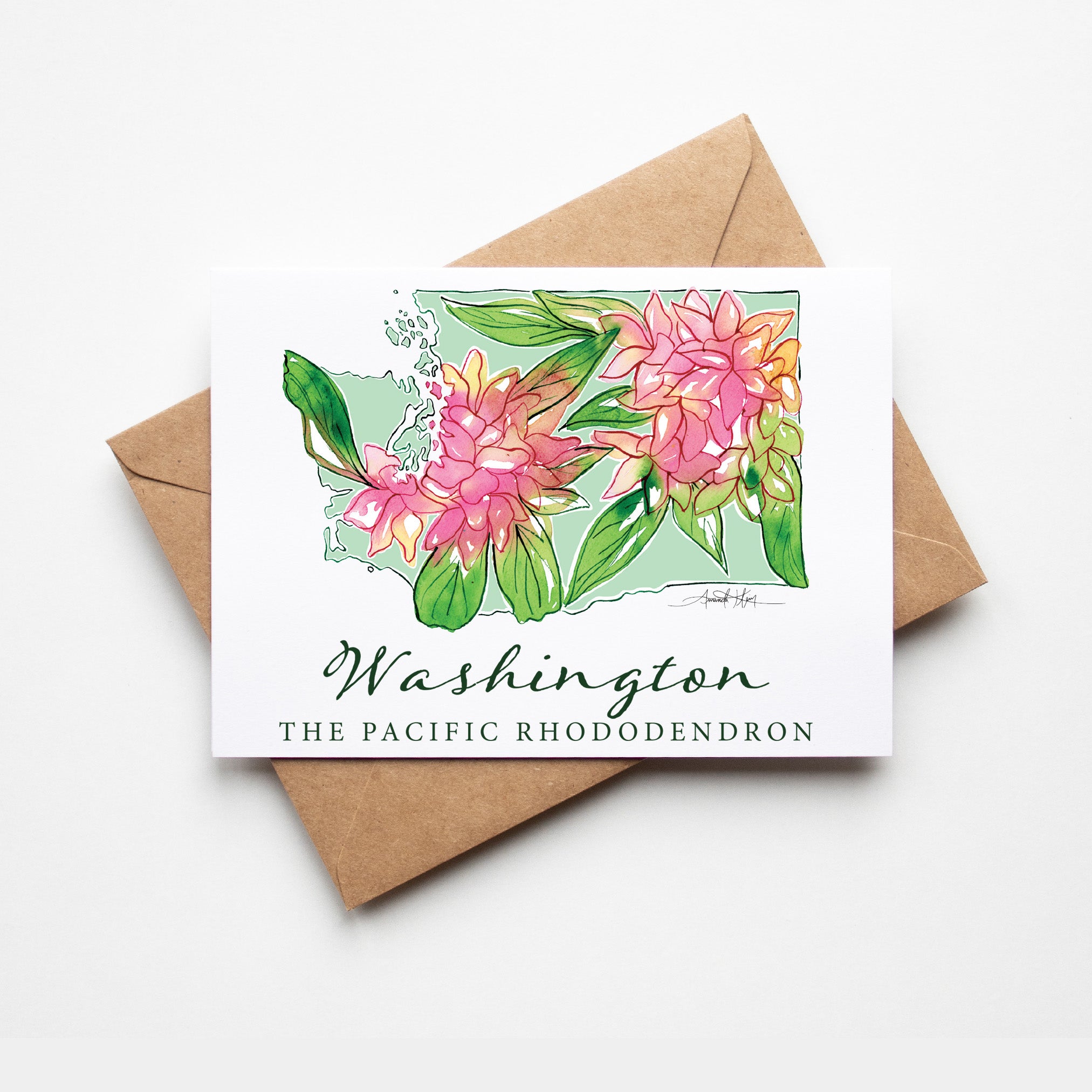 Now available in our beautiful state flower design! Our notecard box set features 8 blank note cards, 8 kraft envelopes, and 8 envelope closure stickers. Each card features a beautiful floral design showcasing the state flower, with the state name and flower name printed across the bottom. A uniquely perfect gift for any hostess, bride, teacher, friend, or well-traveled loved one.