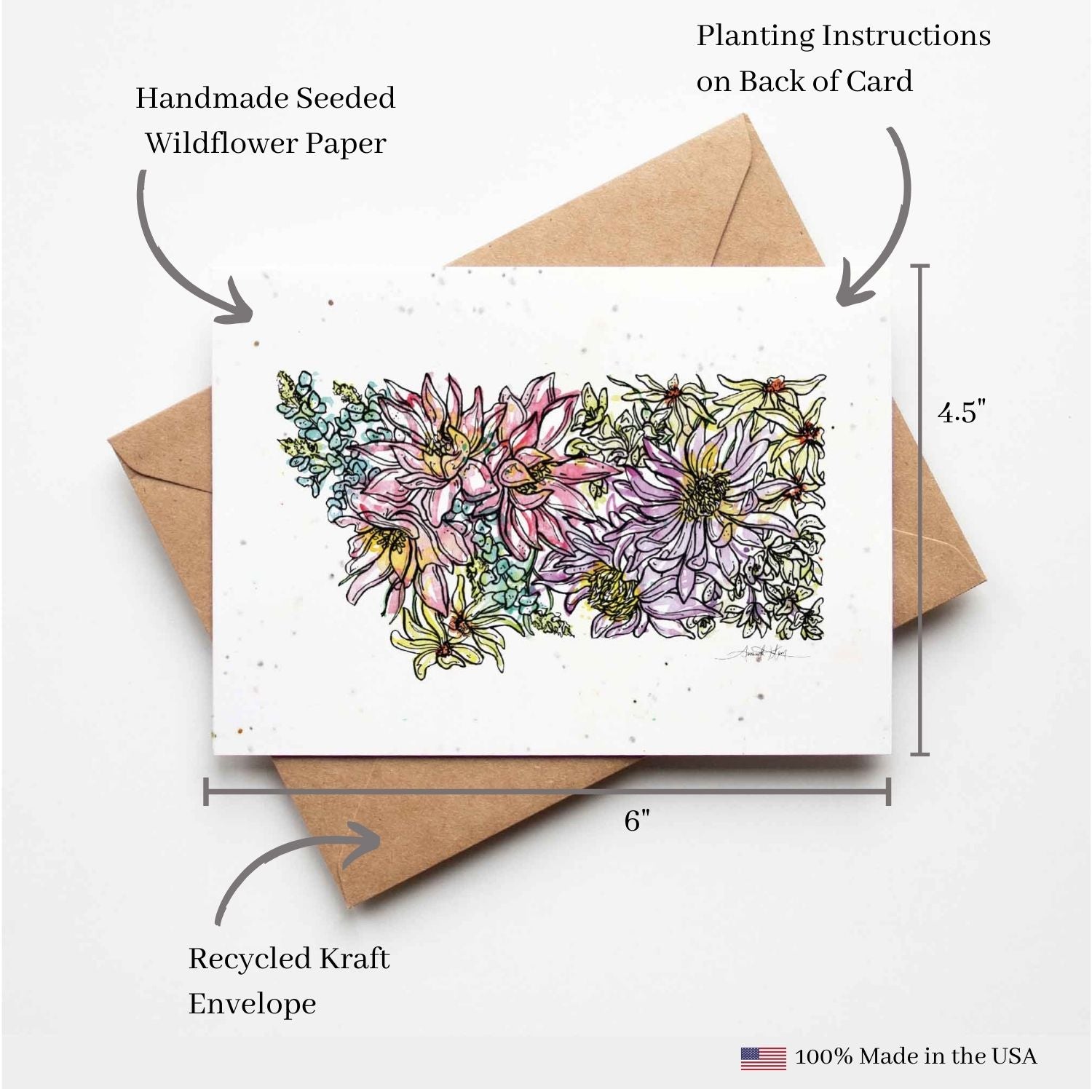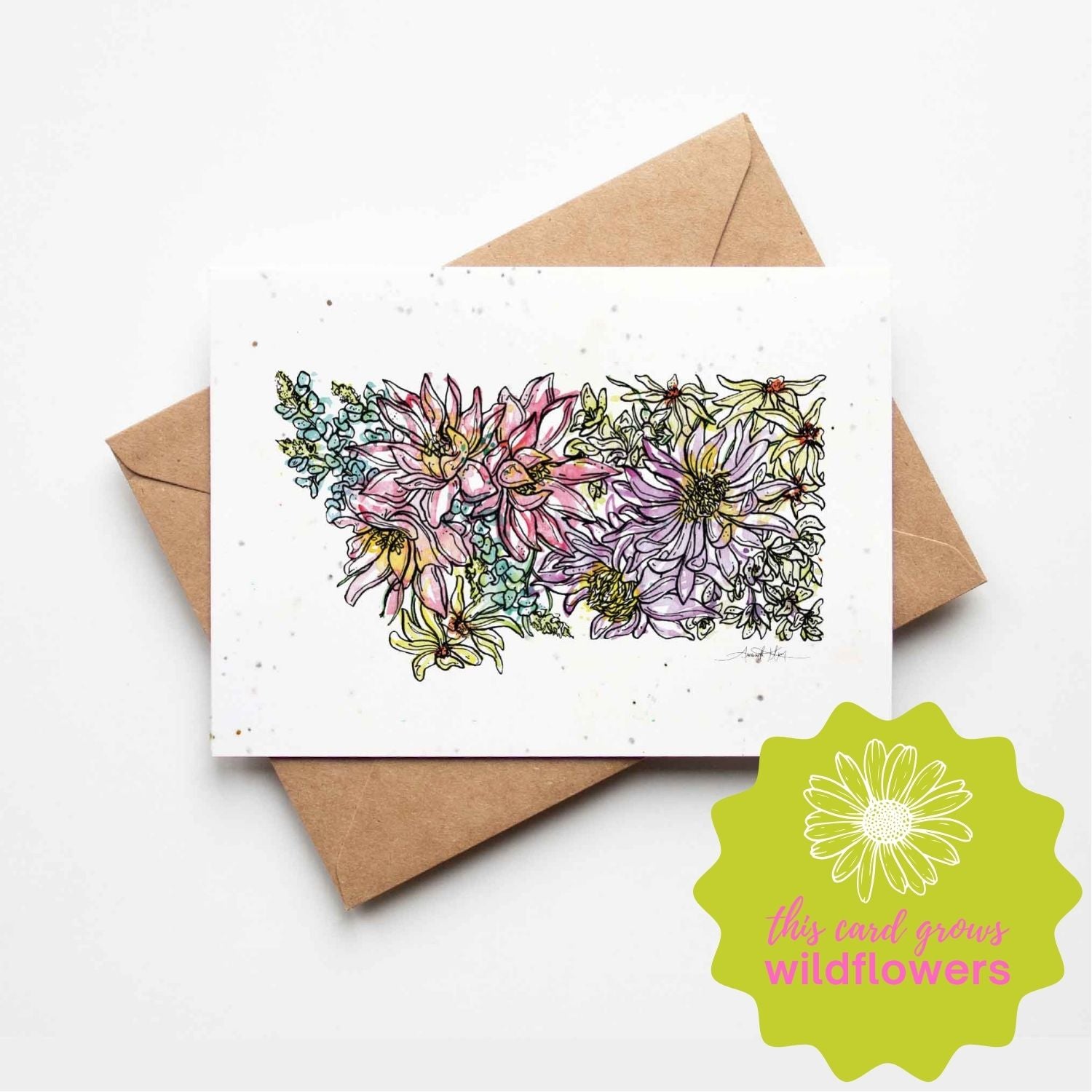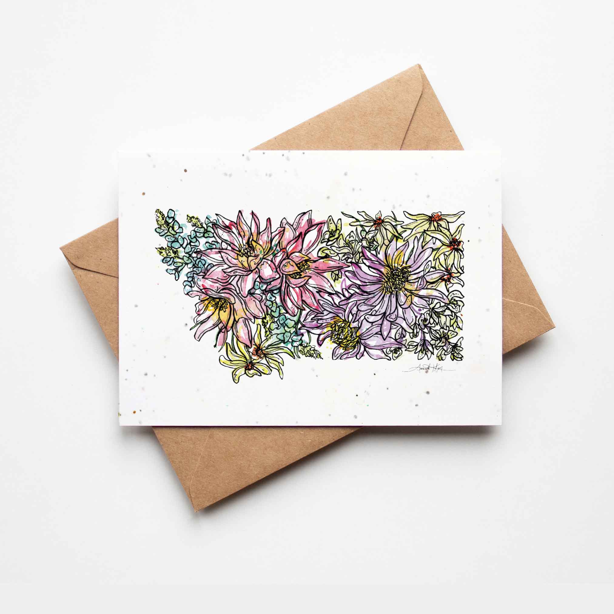 Don’t just send a greeting card, send flowers! Every plantable card is a gift unto itself and features original floral artwork created by Amanda Klein. Our plantable cards are small-batch printed on handmade, biodegradable paper that is embedded with a mix of non-invasive wildflower seeds.