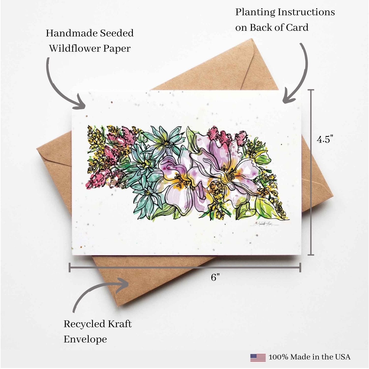 Don’t just send a greeting card, send flowers! Every plantable card is a gift unto itself and features original floral artwork created by Amanda Klein. Our plantable cards are small-batch printed on handmade, biodegradable paper that is embedded with a mix of non-invasive wildflower seeds.