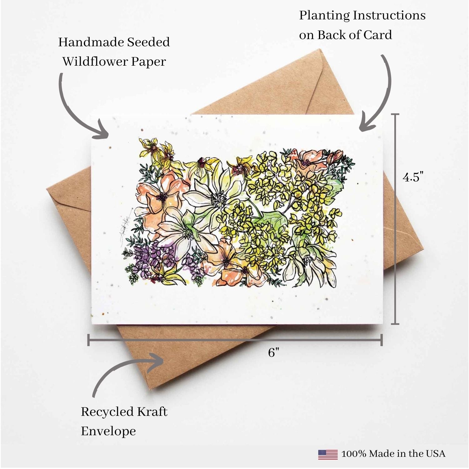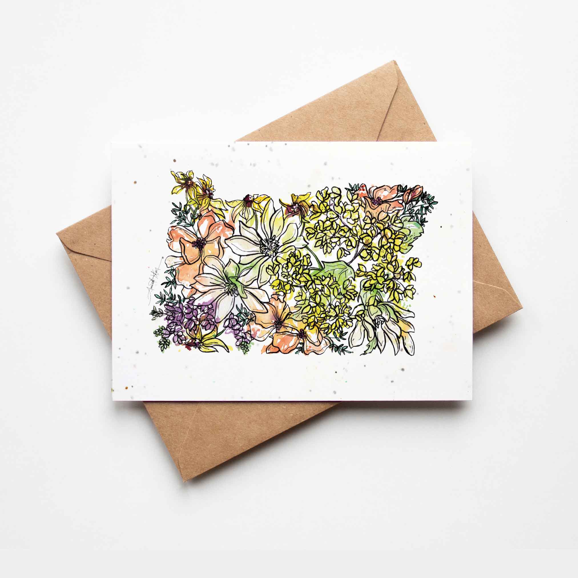Don’t just send a greeting card, send flowers! Every plantable card is a gift unto itself and features original floral artwork created by Amanda Klein. Our plantable cards are small-batch printed on handmade, biodegradable paper that is embedded with a mix of non-invasive wildflower seeds.