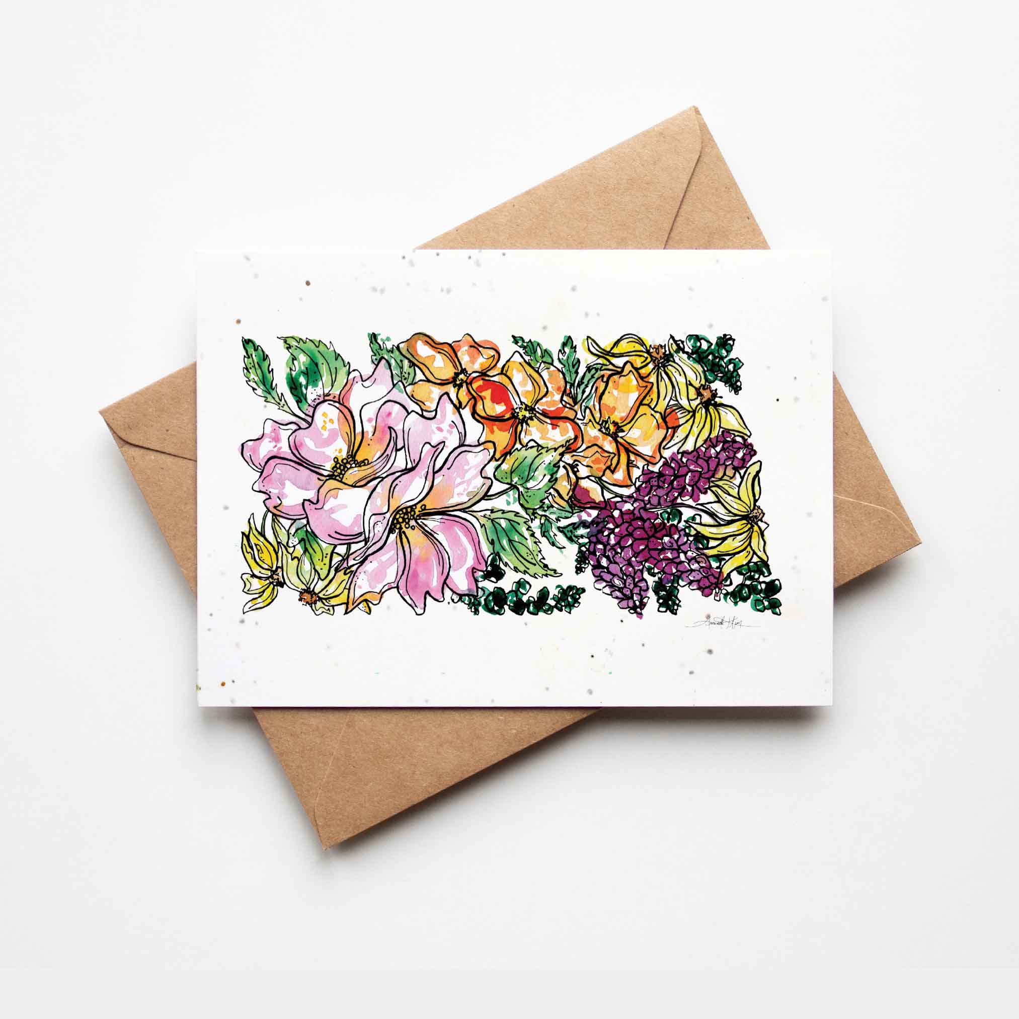 Don’t just send a greeting card, send flowers! Every plantable card is a gift unto itself and features original floral artwork created by Amanda Klein. Our plantable cards are small-batch printed on handmade, biodegradable paper that is embedded with a mix of non-invasive wildflower seeds.