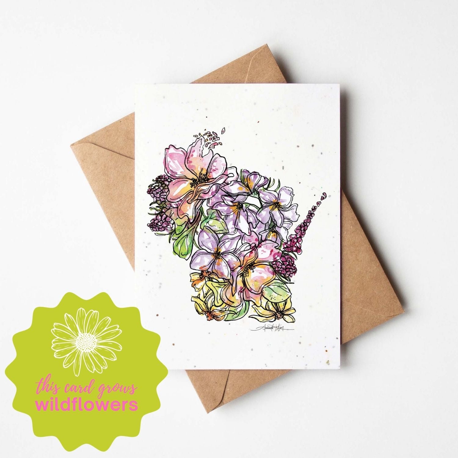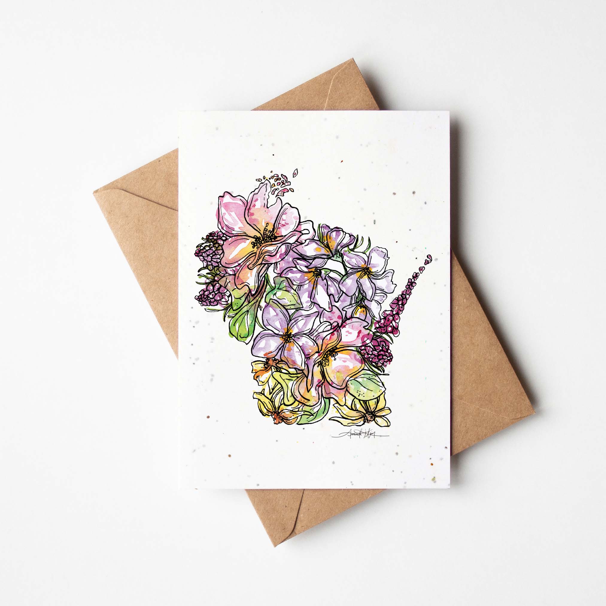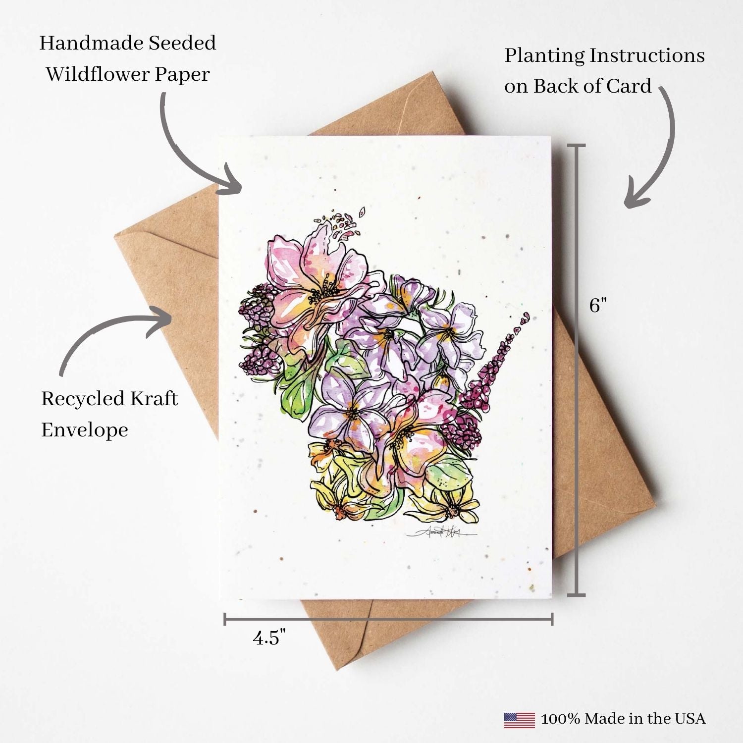 Don’t just send a greeting card, send flowers! Every plantable card is a gift unto itself and features original floral artwork created by Amanda Klein. Our plantable cards are small-batch printed on handmade, biodegradable paper that is embedded with a mix of non-invasive wildflower seeds.