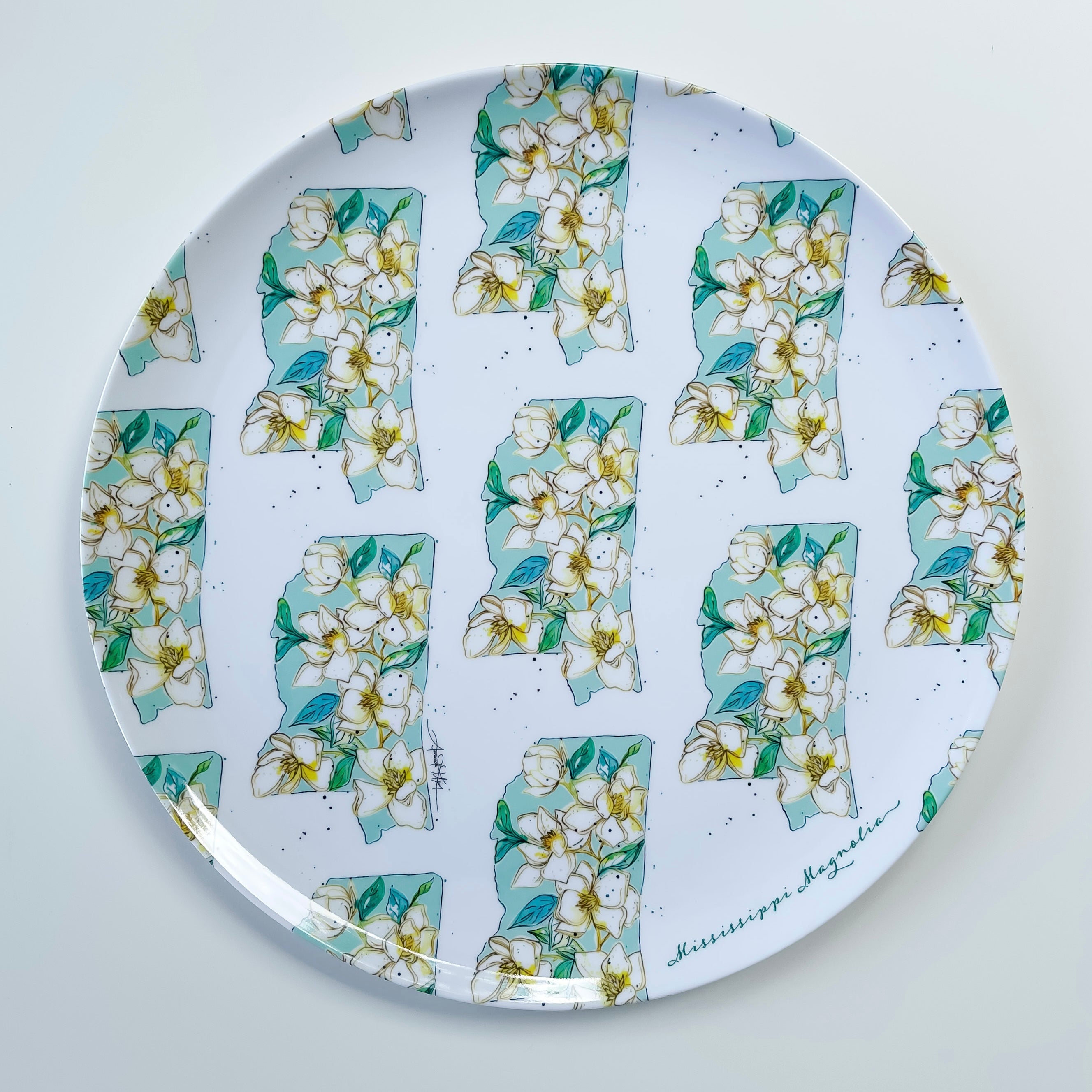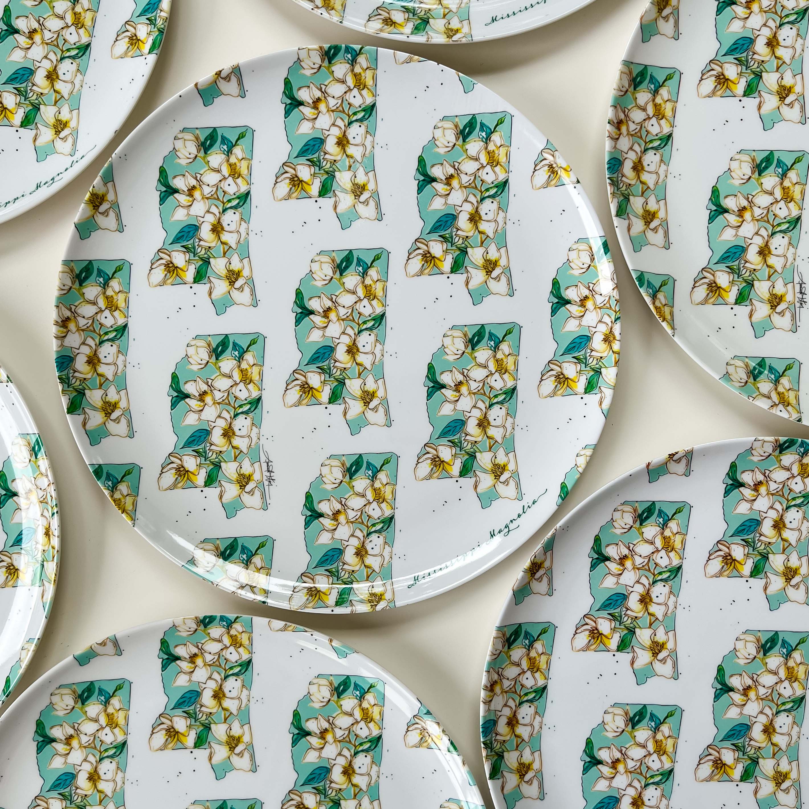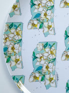 Bring the style and beauty of Amanda Klein Co. designs to your next outdoor dining table or family gathering. Made of break resistant melamine, these 10 inch plates are as durable as they are charming. The state flower is the centerpiece of each plate painted in Amanda’s whimsical watercolor style.