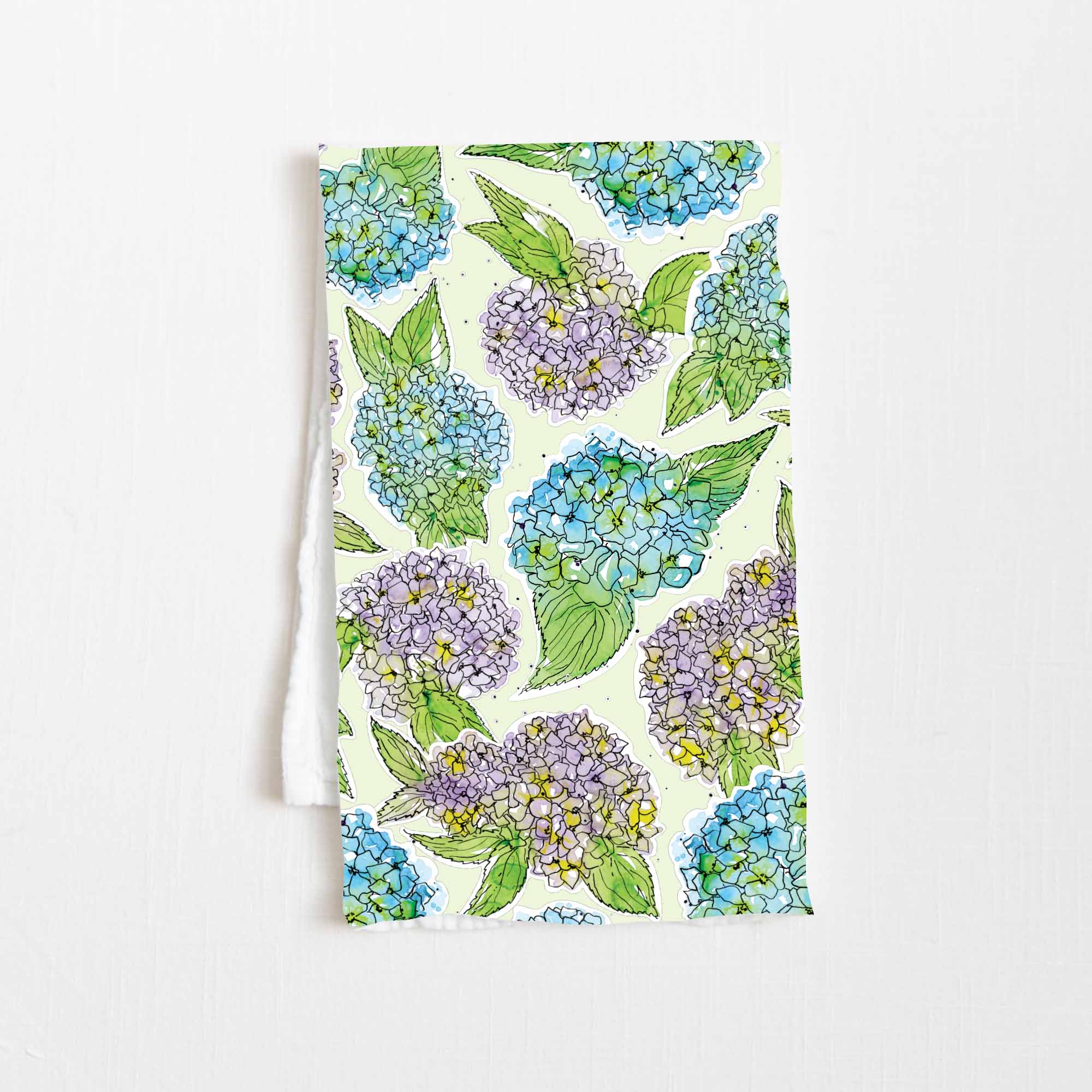 This high quality Hydrangea flour sack tea towel showcases Amanda Klein's whimsical watercolor and splattered design. A uniquely perfect gift for any hostess, bride, teacher, friend, or loved one.