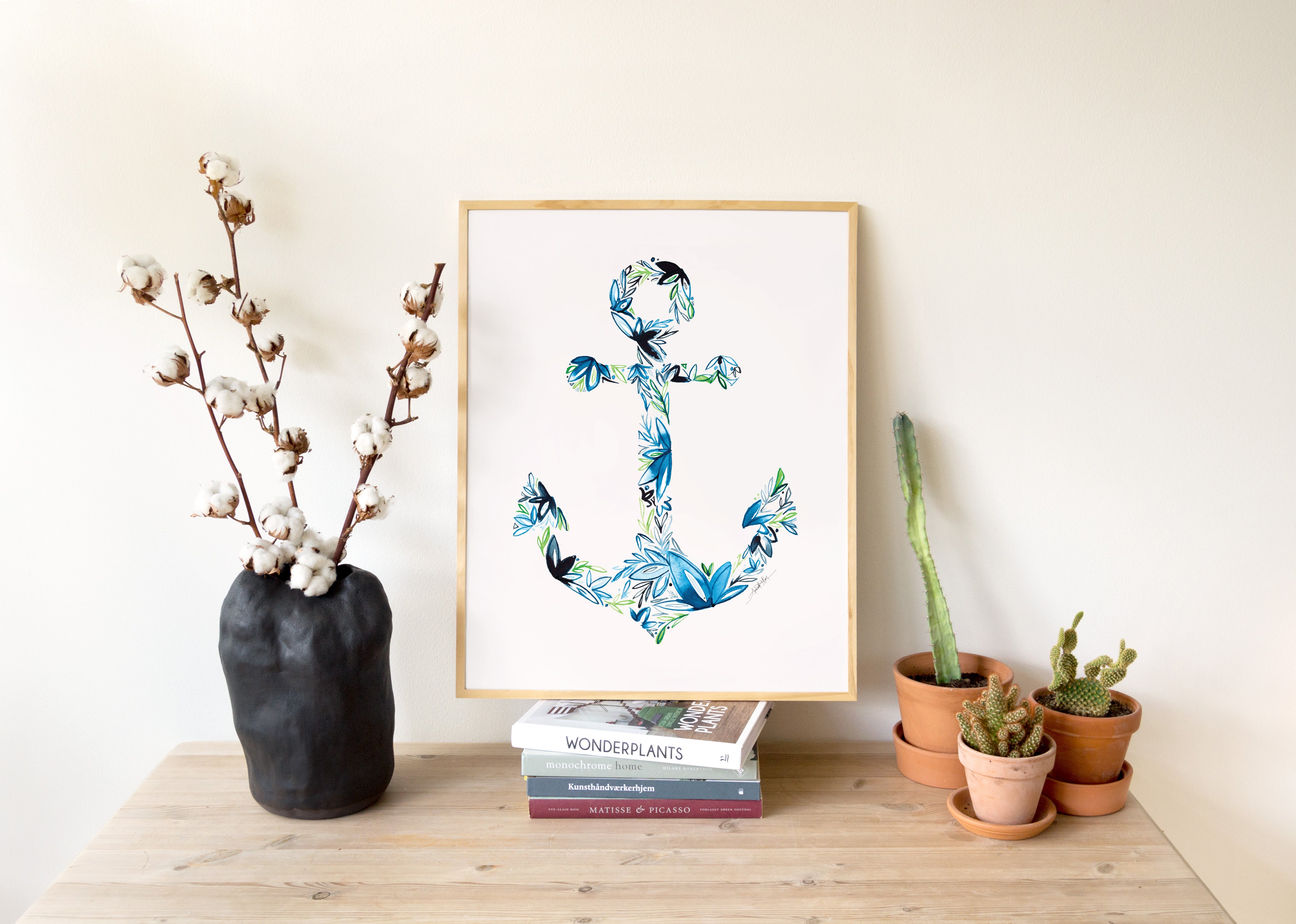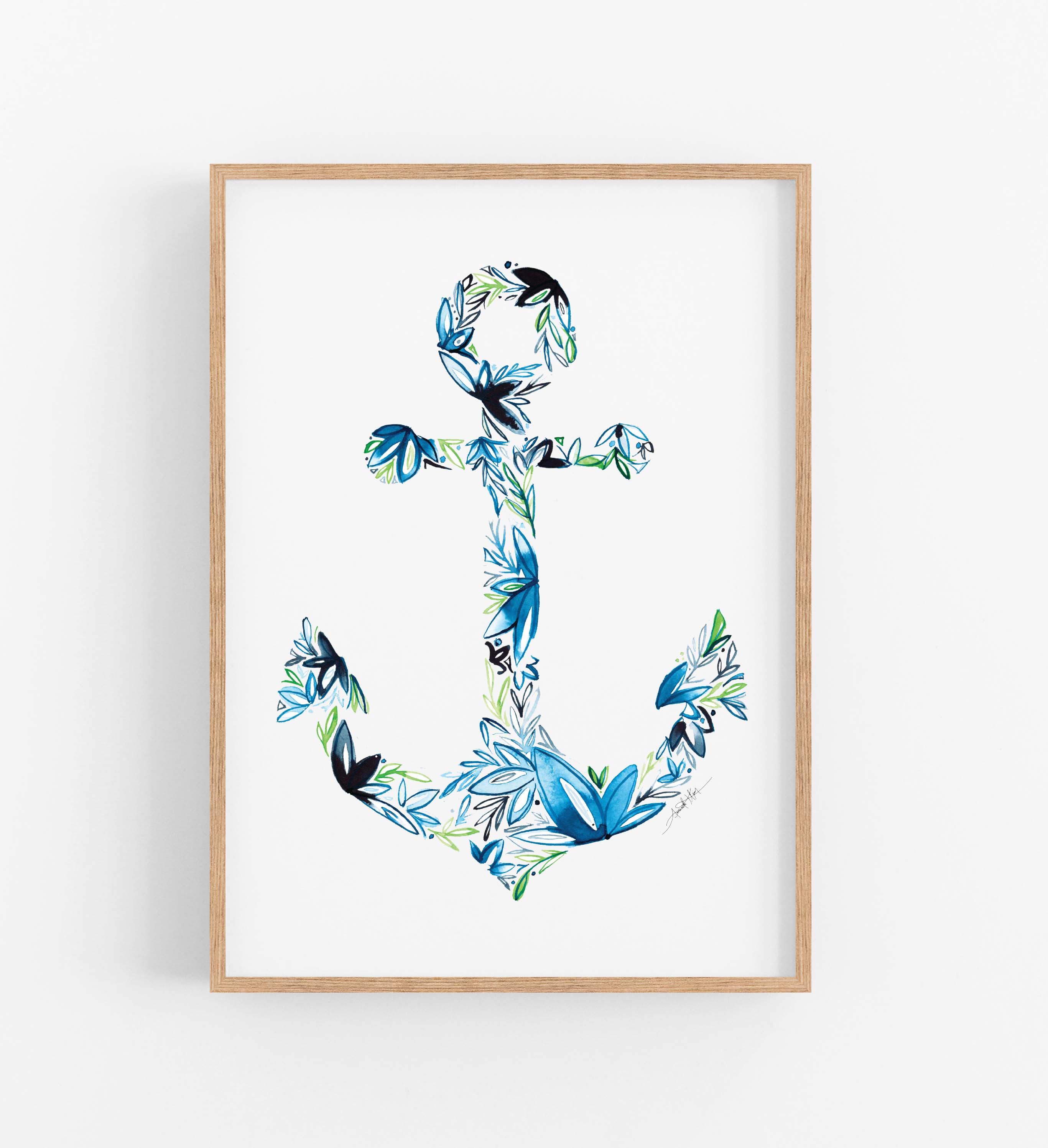 Available as an 8” x 10” or 11” x 14” unframed print, this Anchor fine art print features a beautiful & bright color palette. This piece has been completed in Amanda Klein’s signature style using liquid watercolor and acrylic ink.