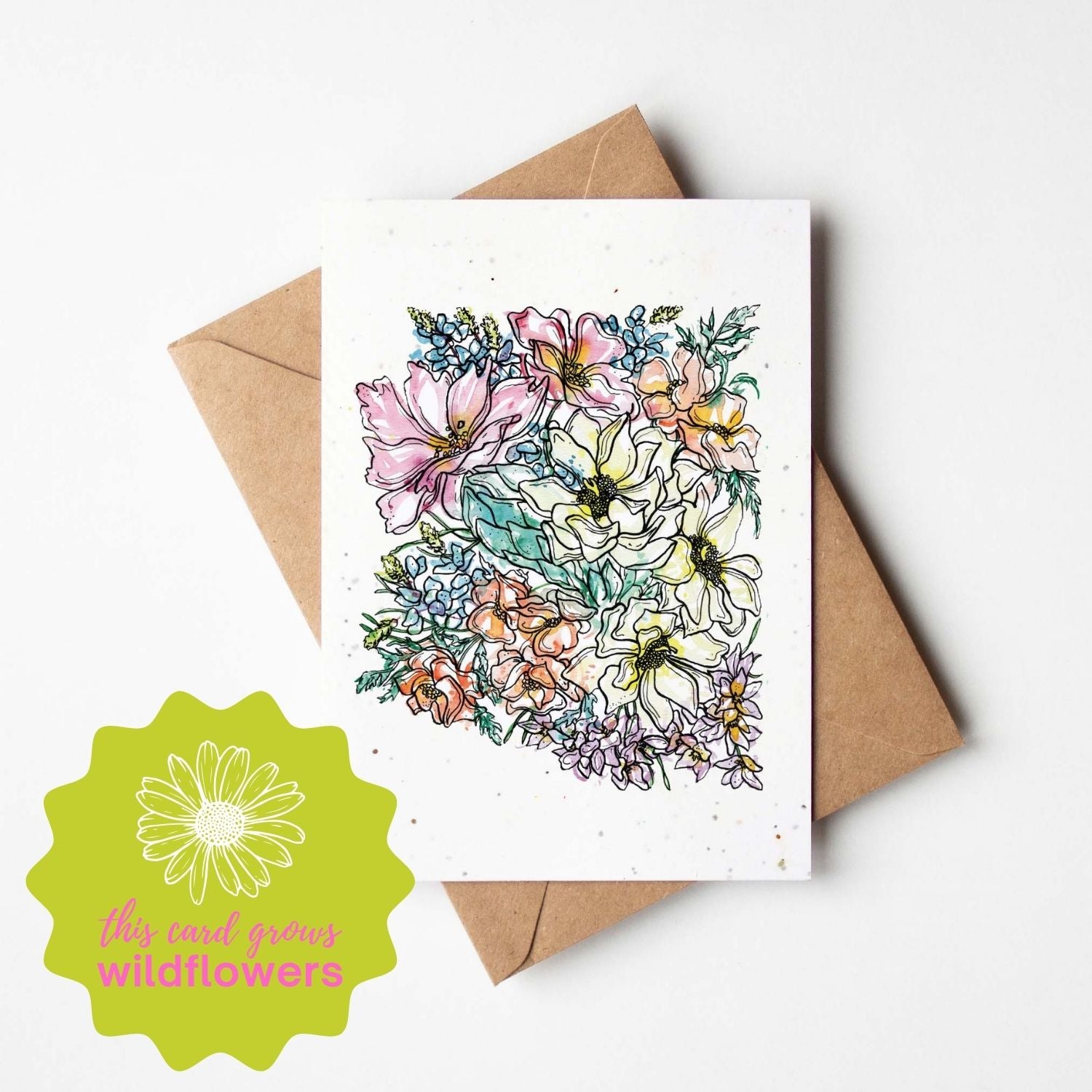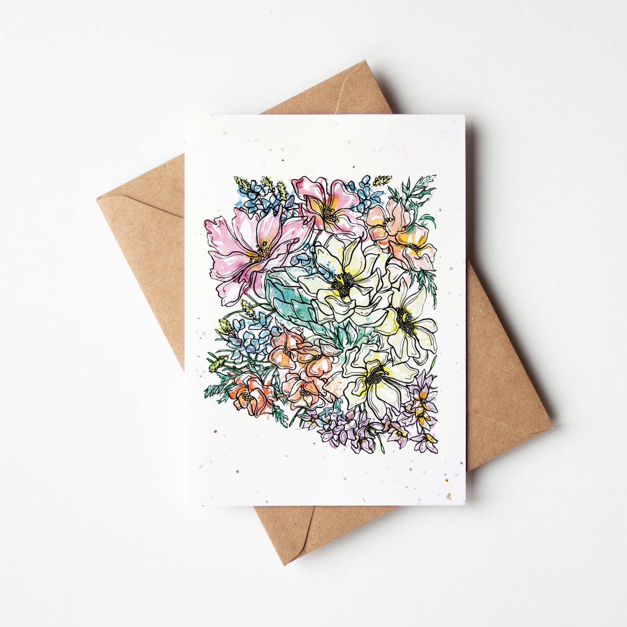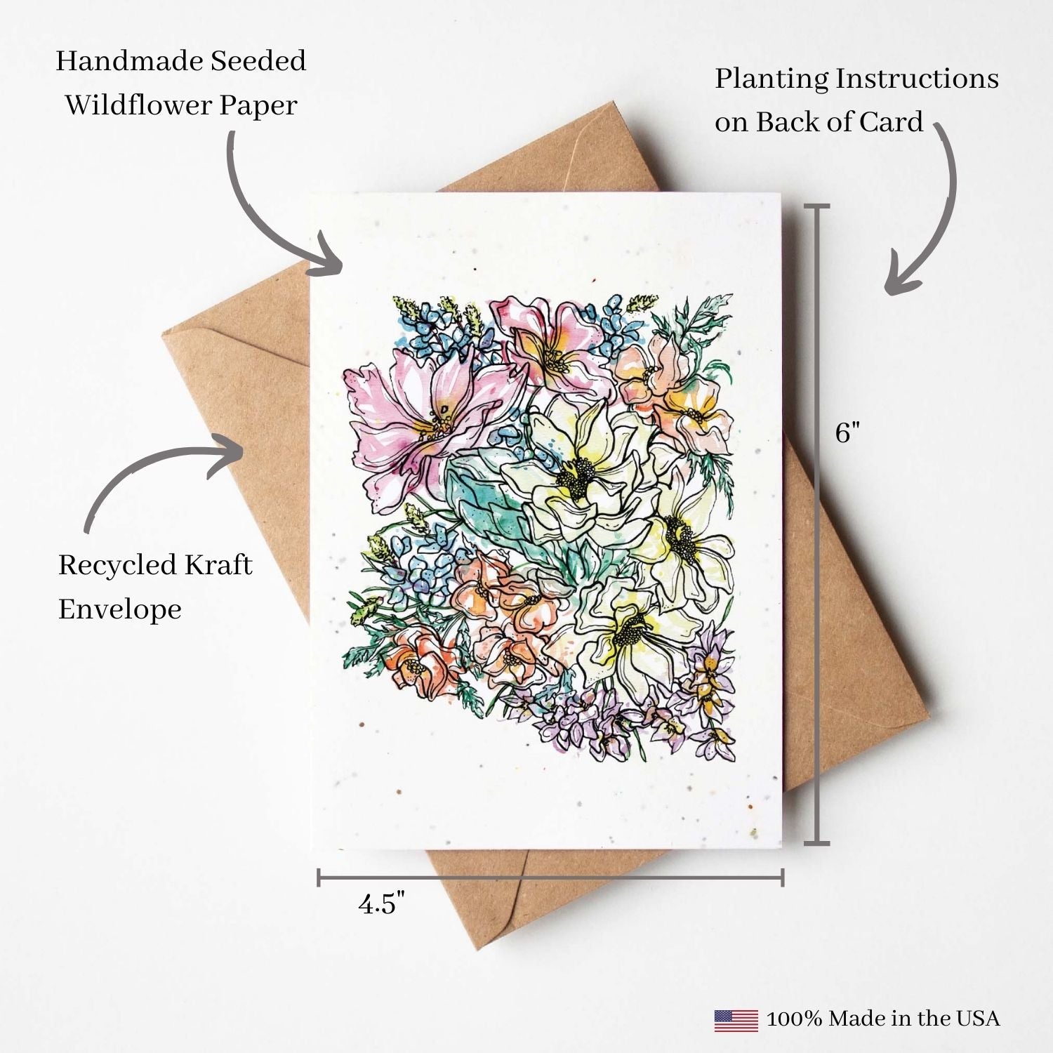 Don’t just send a greeting card, send flowers! Every plantable card is a gift unto itself and features original floral artwork created by Amanda Klein. Our plantable cards are small-batch printed on handmade, biodegradable paper that is embedded with a mix of non-invasive wildflower seeds.