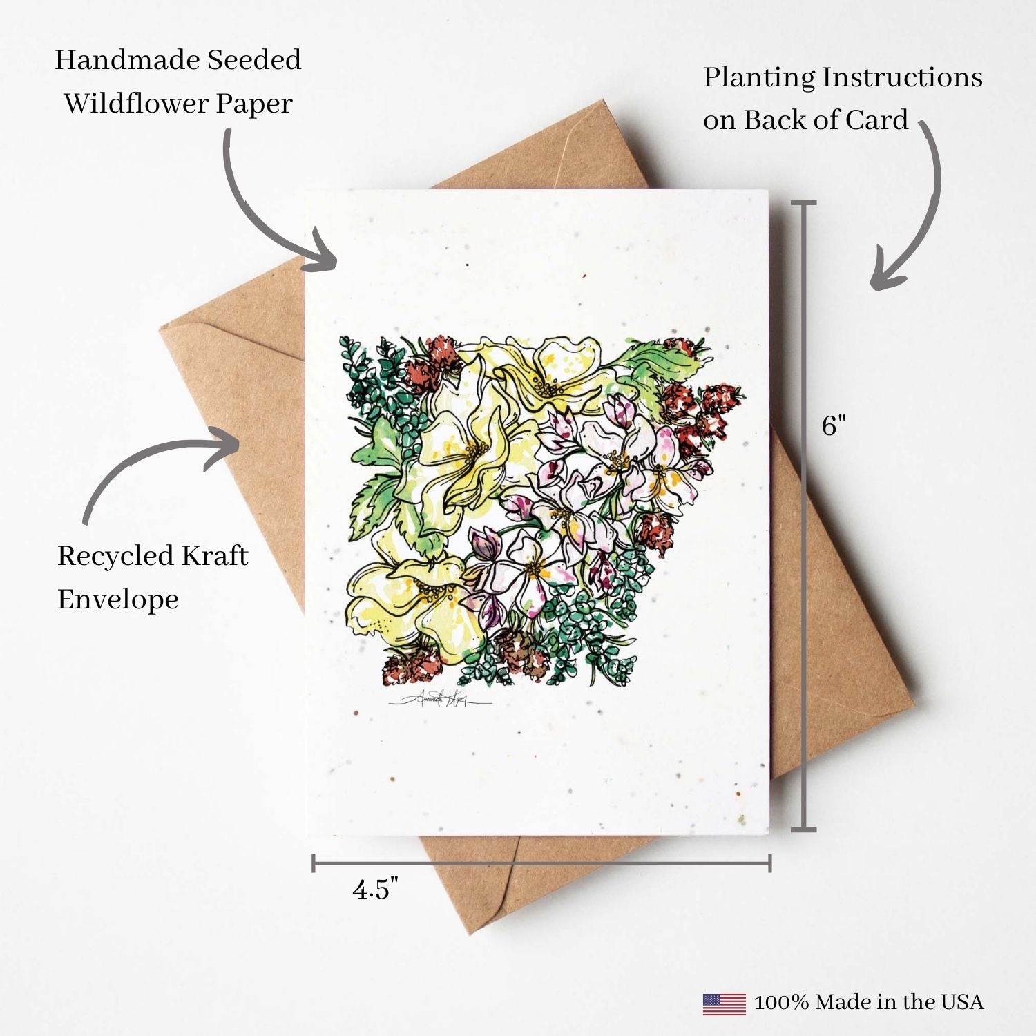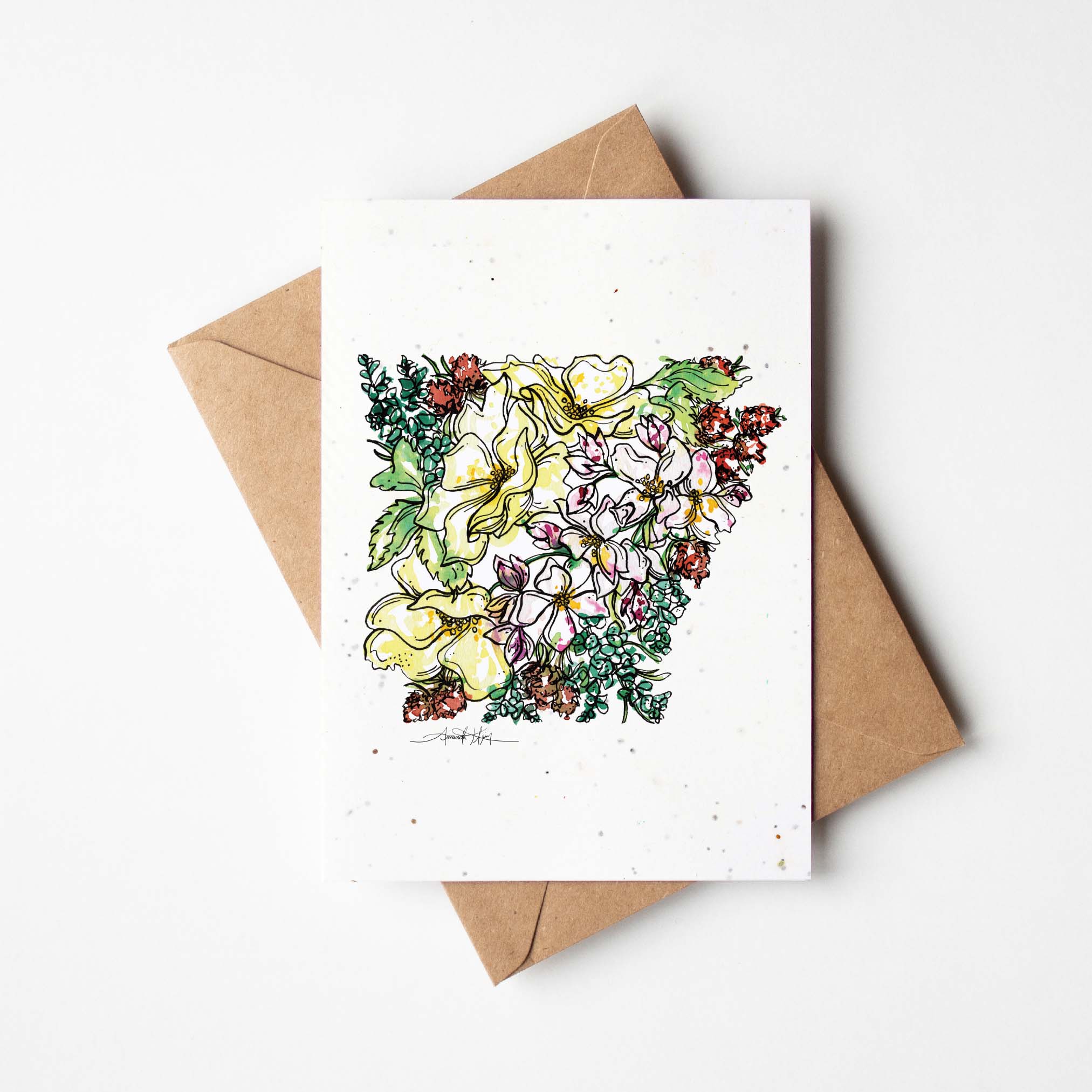 Don’t just send a greeting card, send flowers! Every plantable card is a gift unto itself and features original floral artwork created by Amanda Klein. Our plantable cards are small-batch printed on handmade, biodegradable paper that is embedded with a mix of non-invasive wildflower seeds.