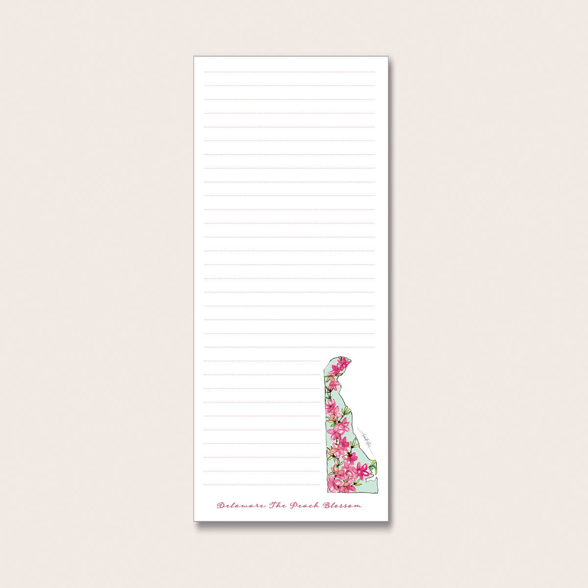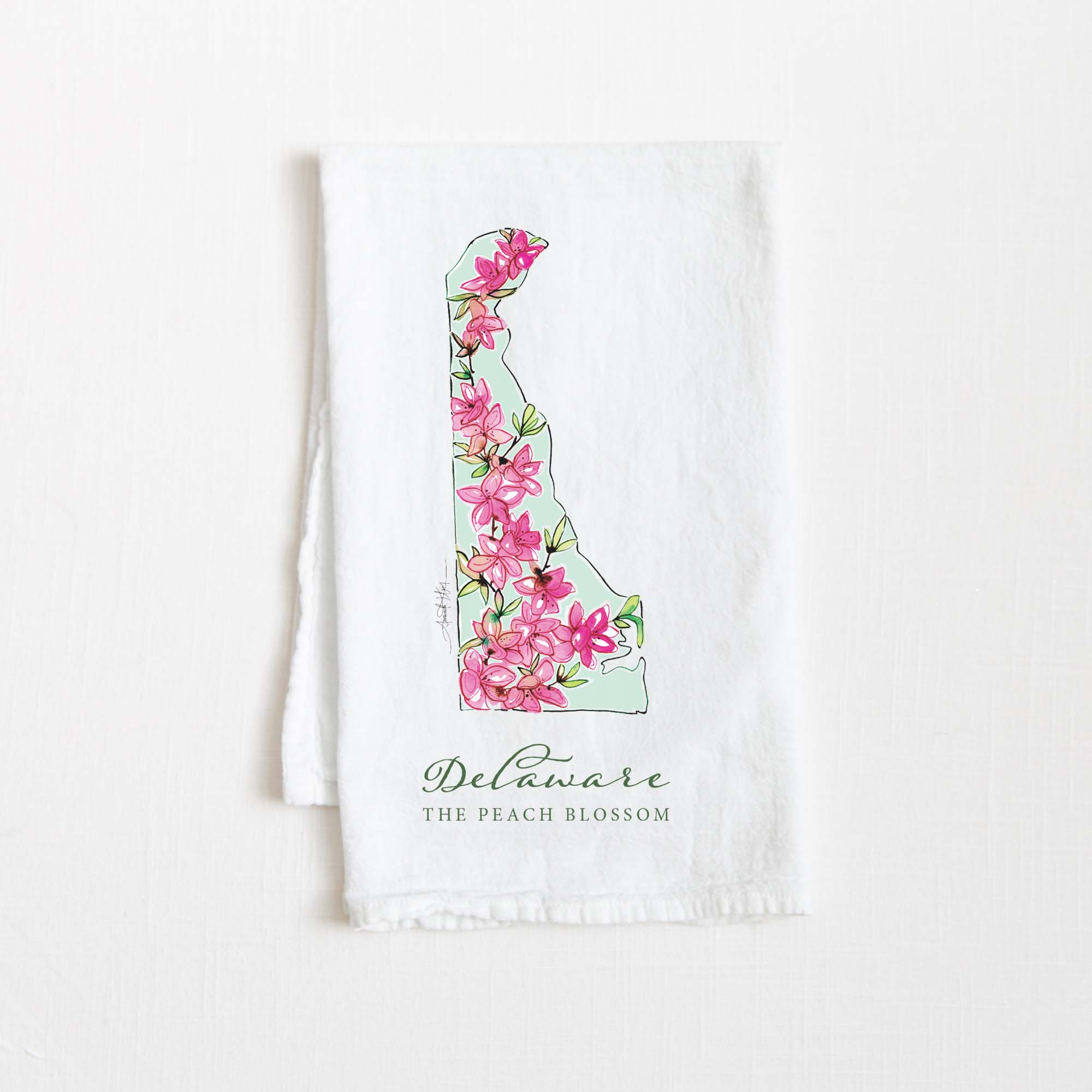 ✨ Flour Sack Towel, Desk Notepad, and Refrigerator Notepad all feature the Delaware State Flower, the Peach Blossom.