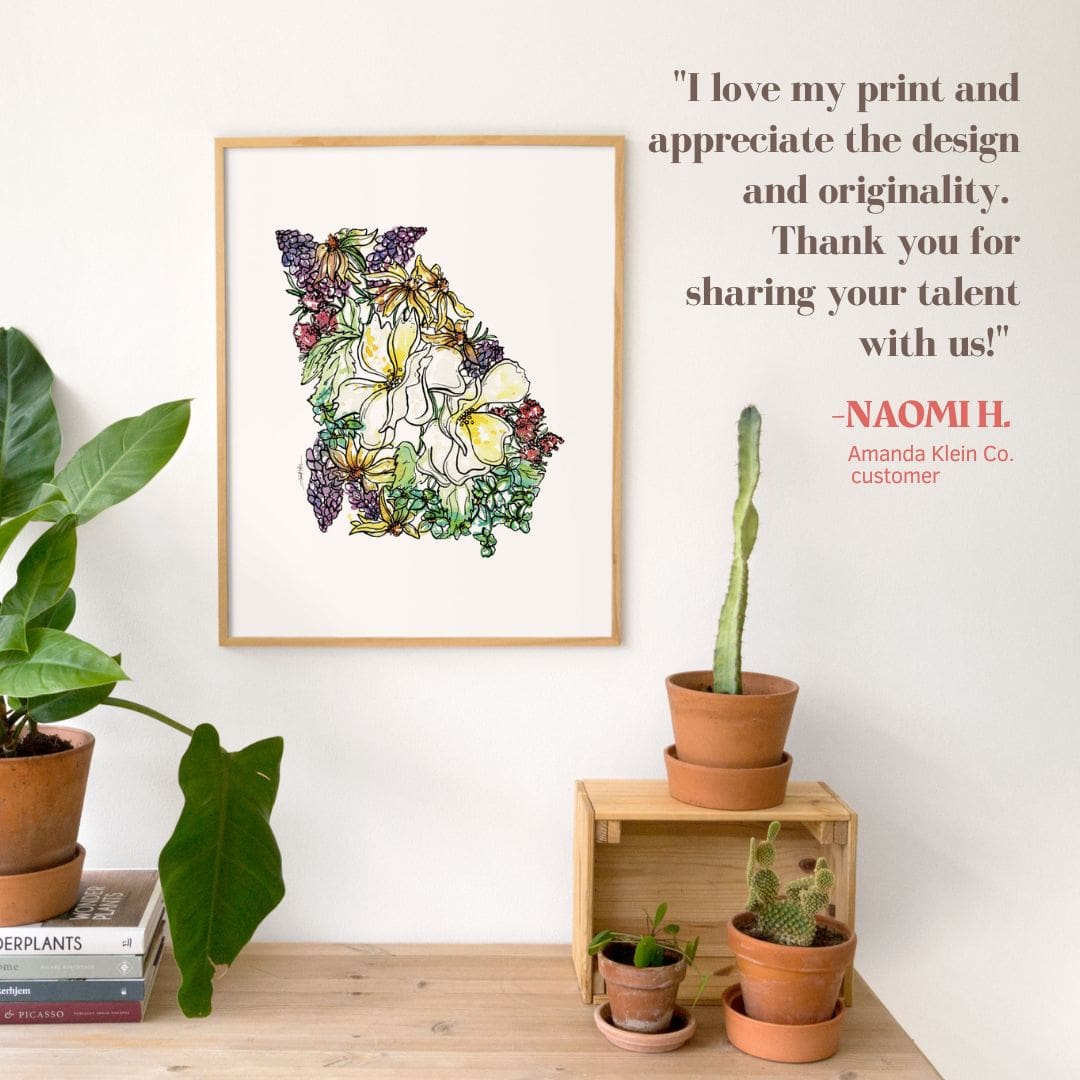 Featuring wildflowers specific to each individual state, these high quality fine art reproductions of Amanda Klein’s original artwork beautifully showcase her whimsical watercolor designs. A uniquely perfect gift for any hostess, bride, holiday, teacher, friend or well traveled loved one.