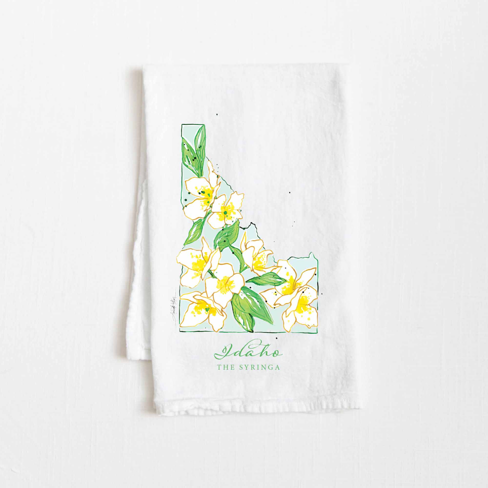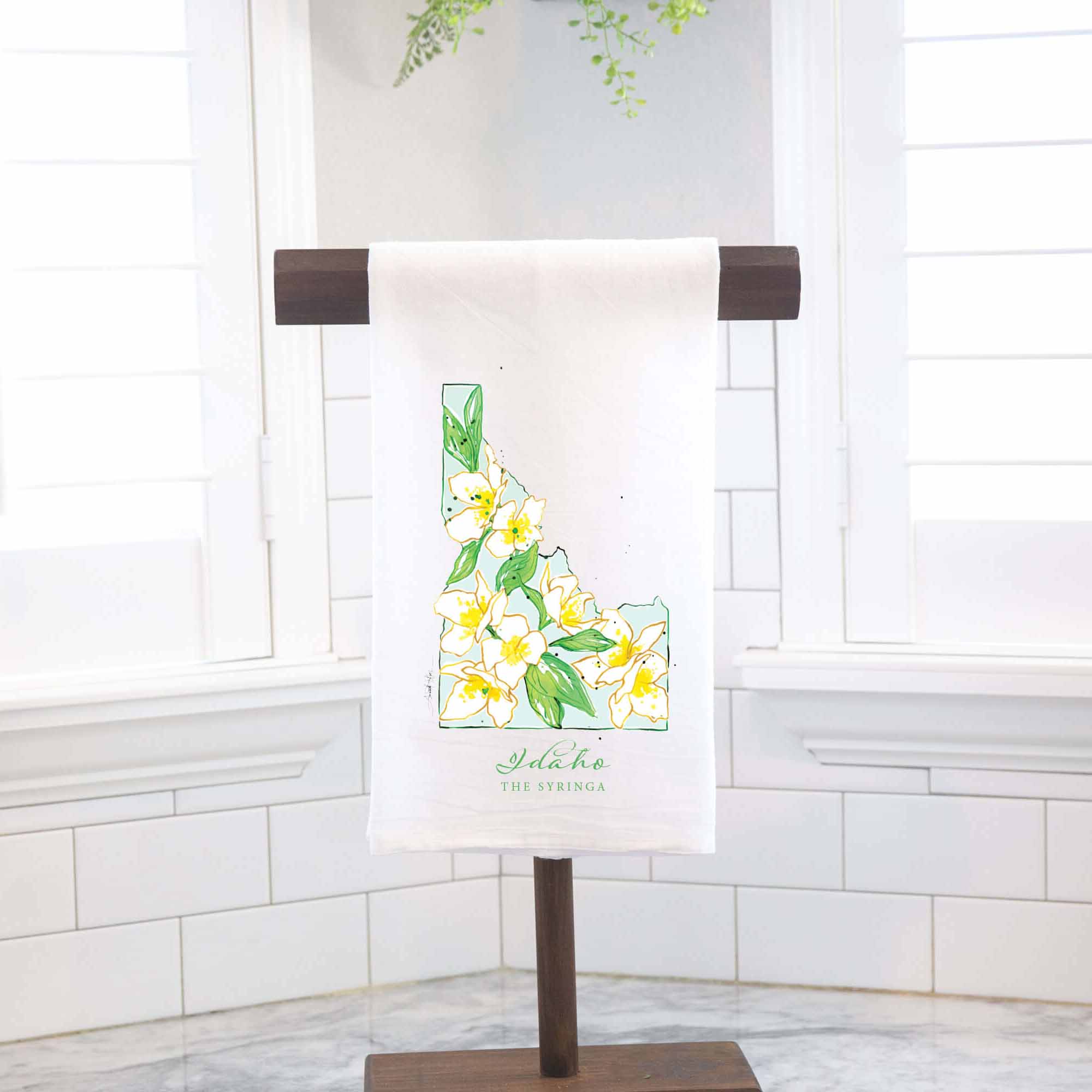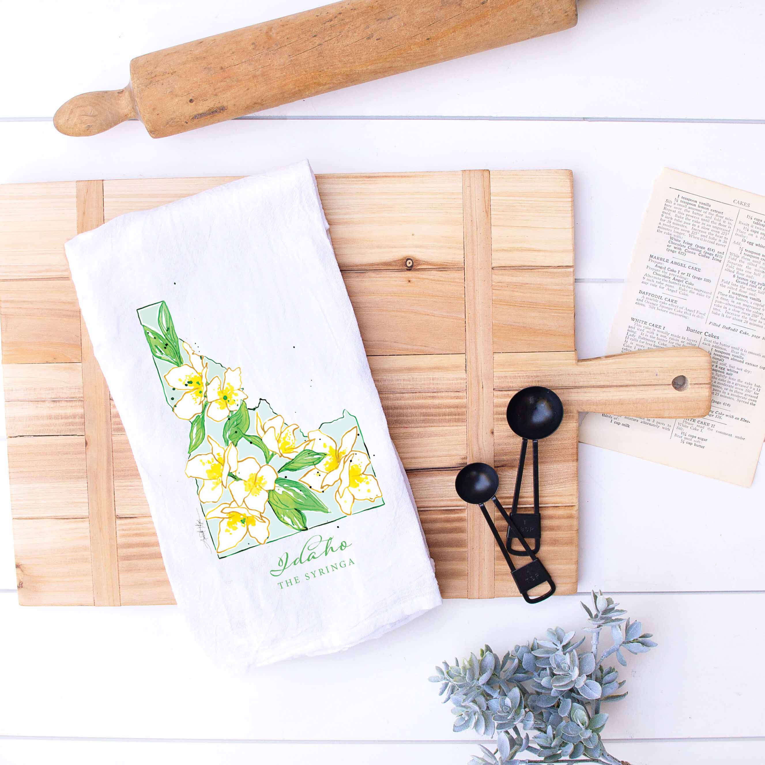 Featuring Idaho's state flower, the Syringa, this high quality flour sack tea towel showcases Amanda Klein's whimsical watercolor and splattered design. A uniquely perfect gift for any hostess, bride, teacher, friend, or well-traveled loved one.