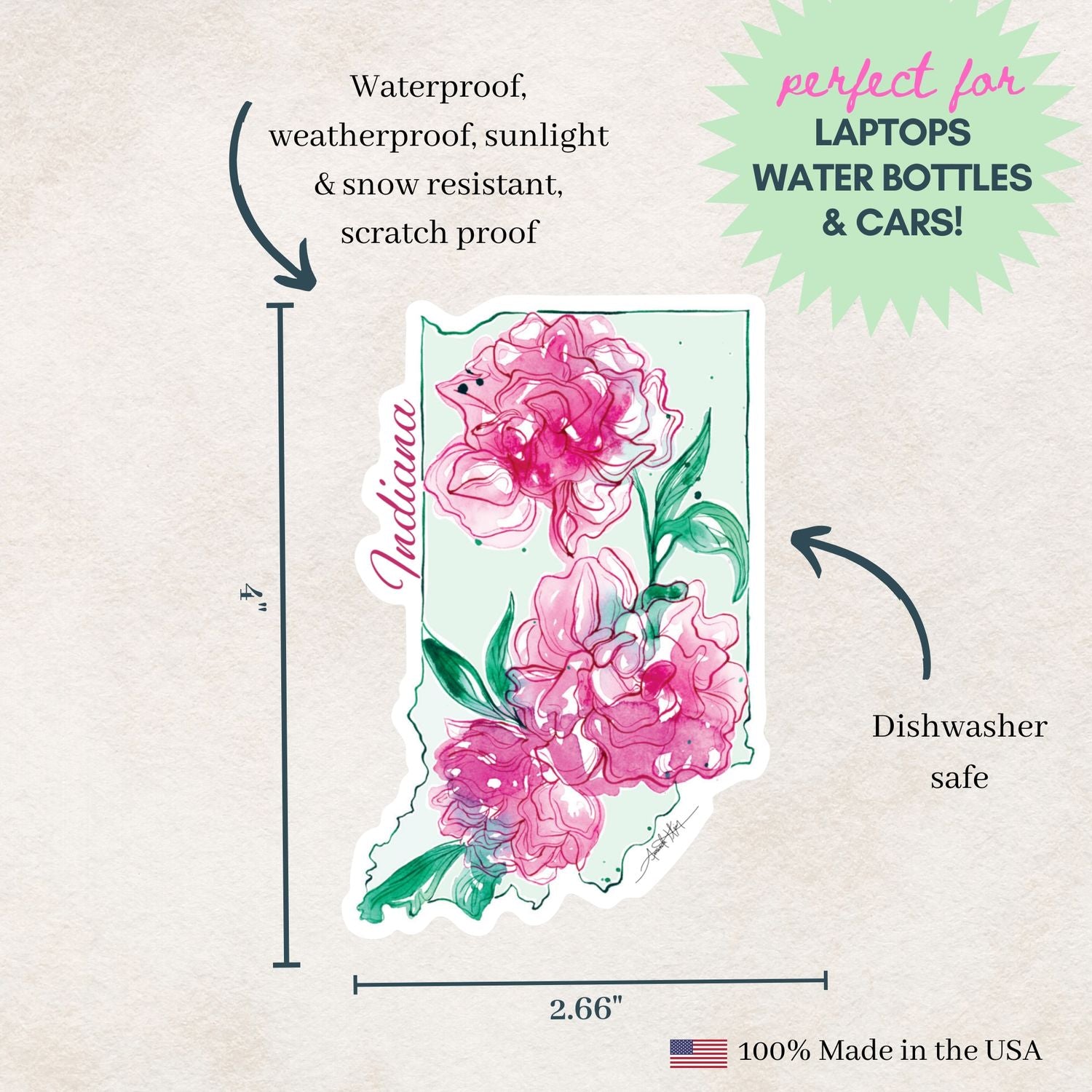 Now available in our beautiful State Flower design! These high quality vinyl decals showcase Amanda Klein’s whimsical watercolor artwork beautifully. Make your water bottle, laptop, car, or any hard surface uniquely you.