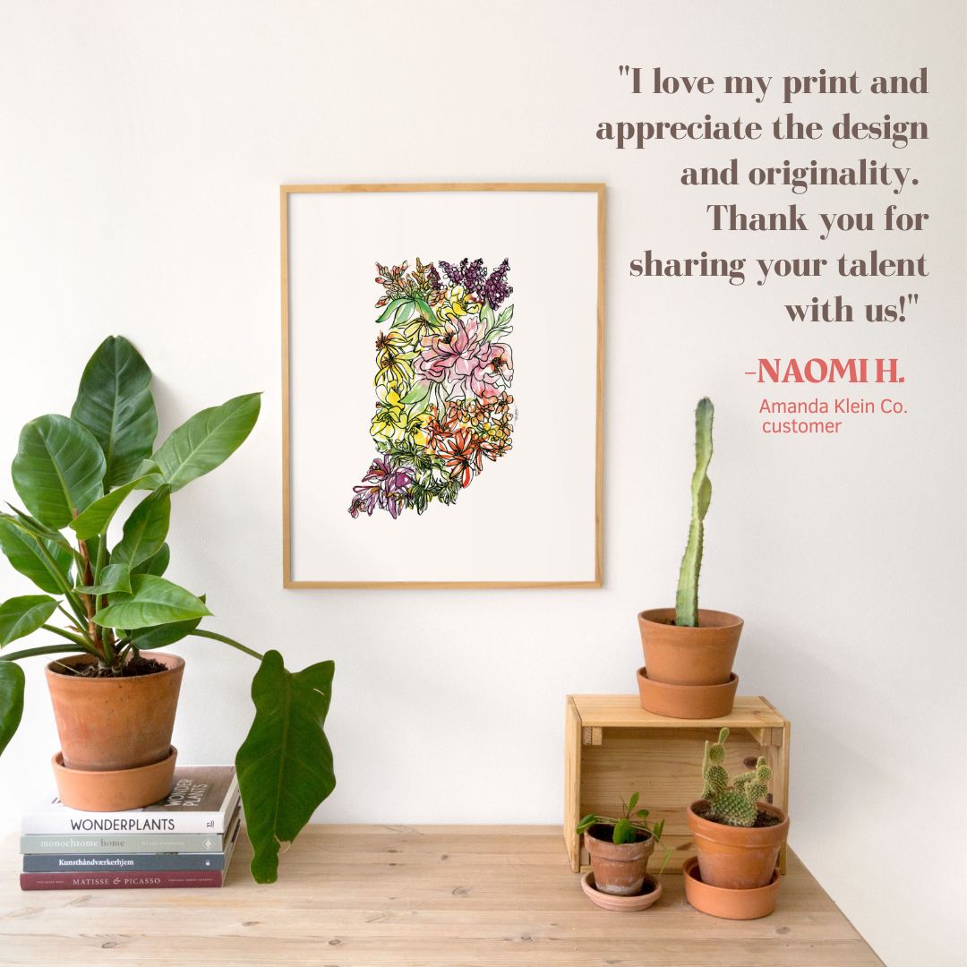 Featuring wildflowers specific to each individual state, these high quality fine art reproductions of Amanda Klein’s original artwork beautifully showcase her whimsical watercolor designs.  A uniquely perfect gift for any hostess, bride, holiday, teacher, friend or well traveled loved one.