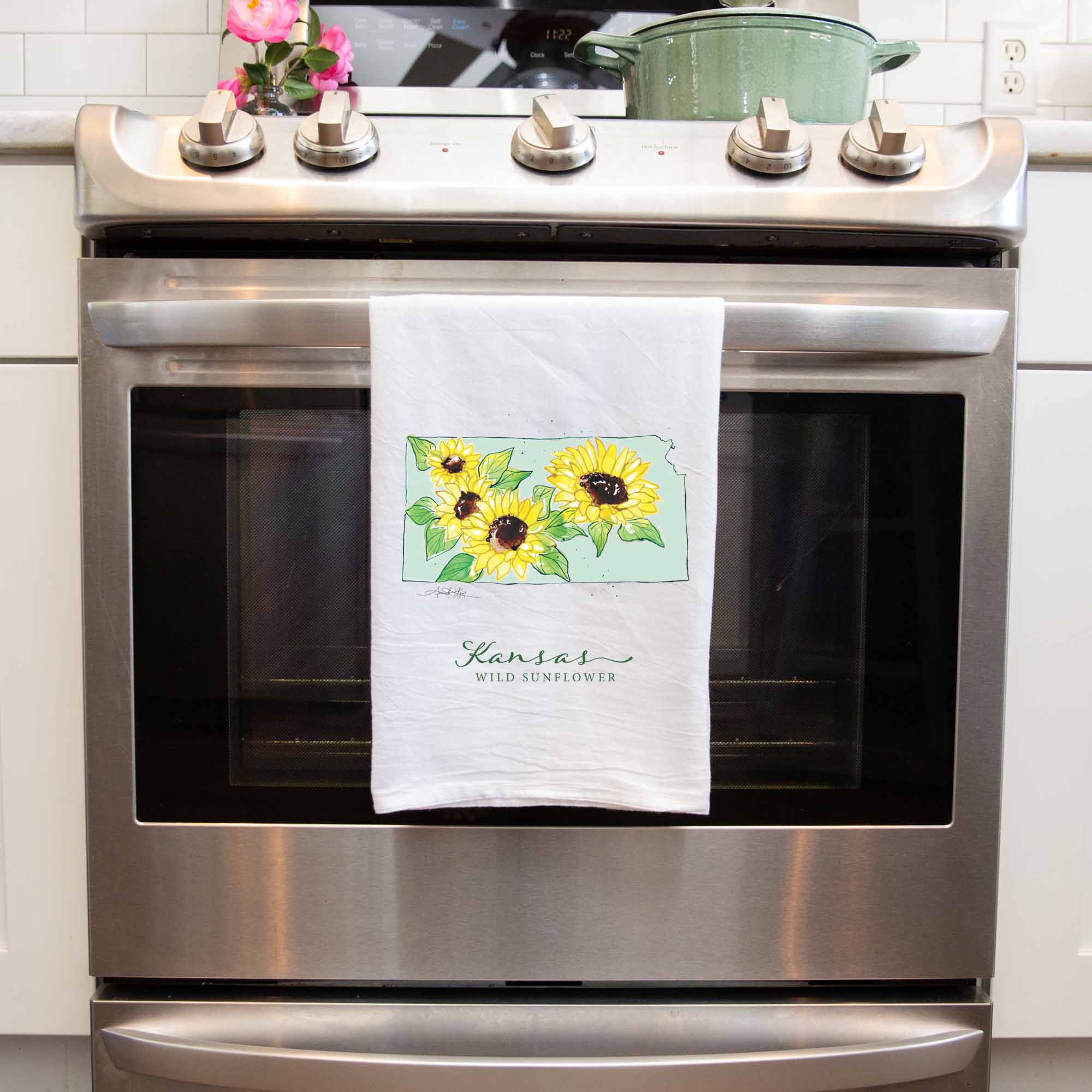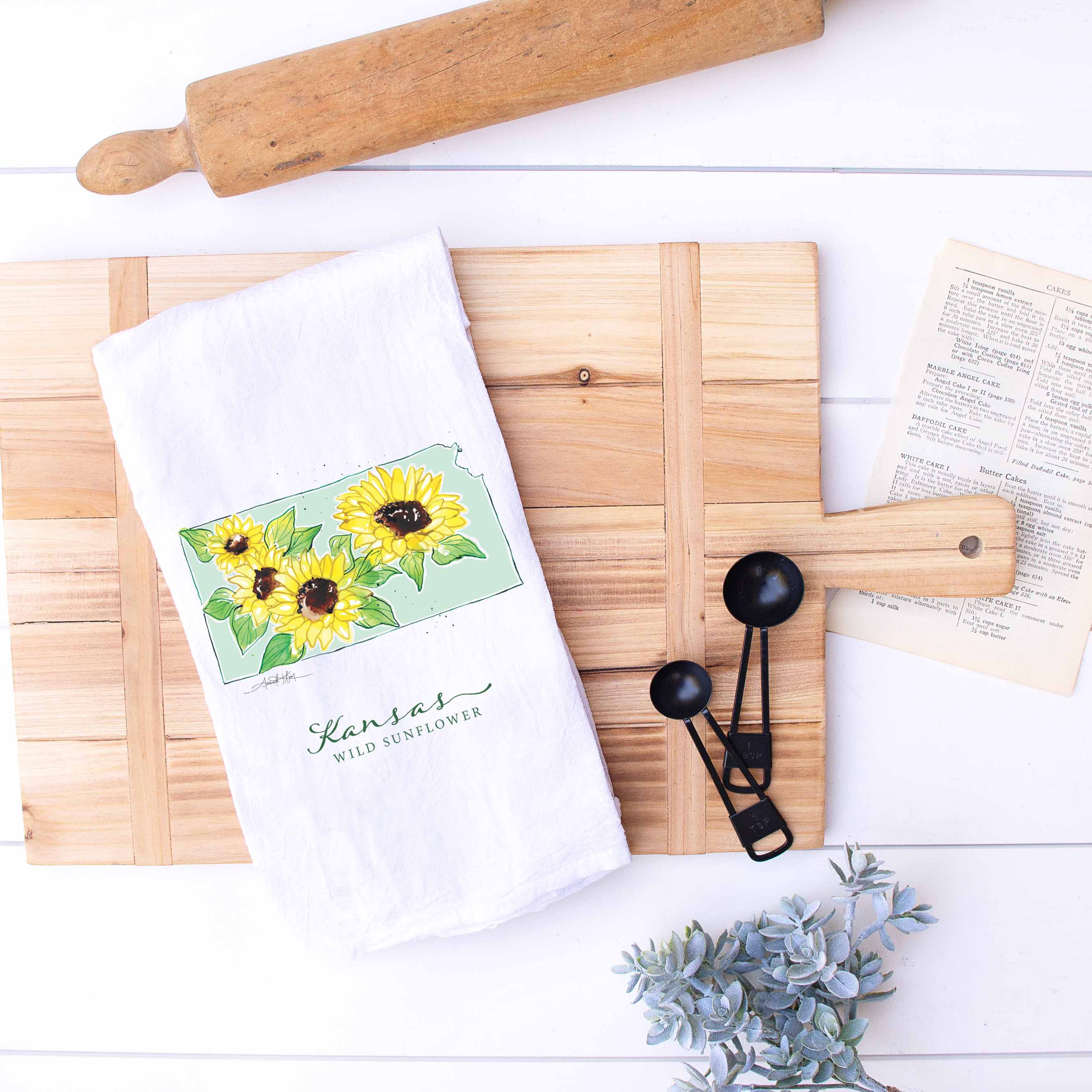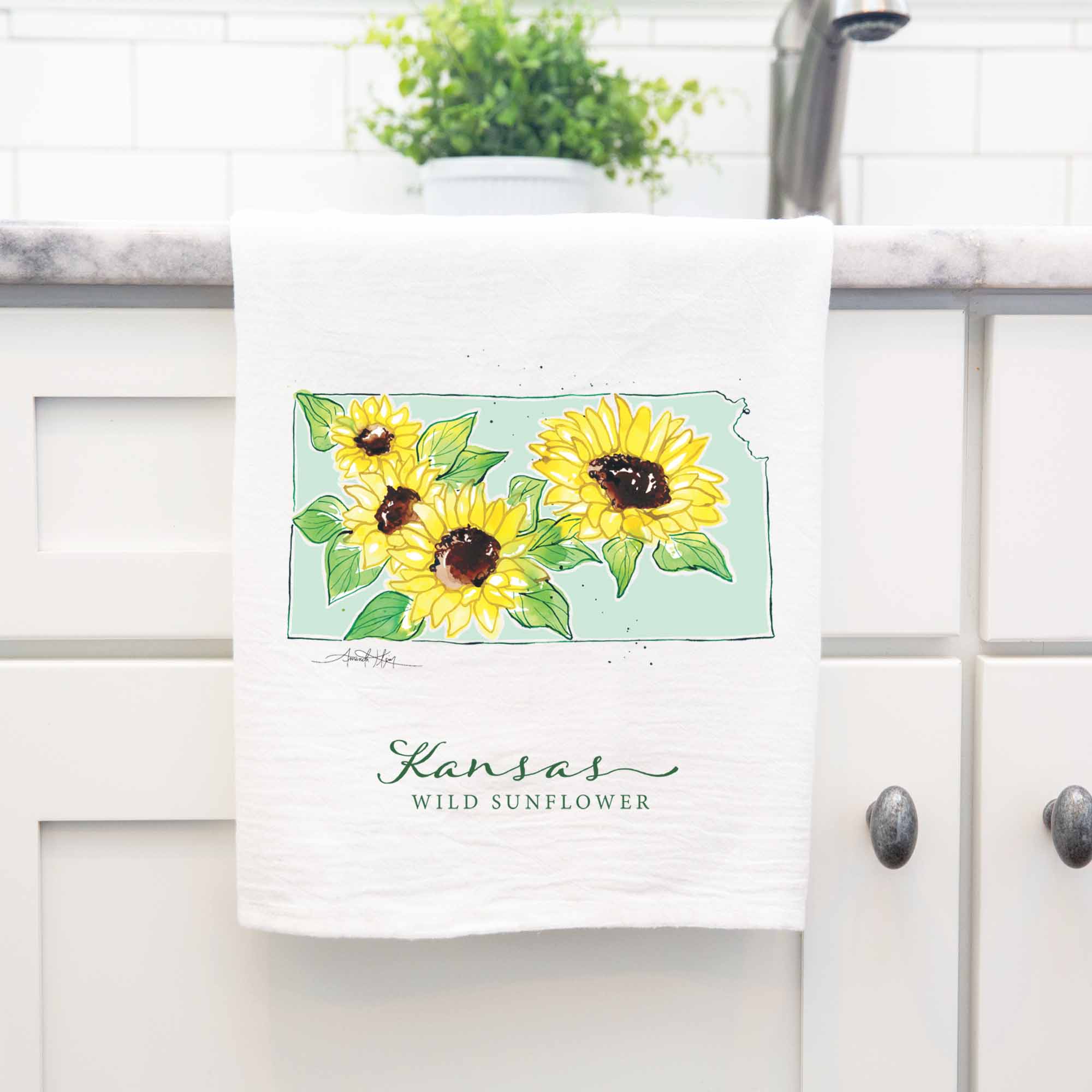 Featuring the Kansas state flower, the Sunflower, this high quality flour sack tea towel showcases Amanda Klein's whimsical watercolor and splattered design. A uniquely perfect gift for any hostess, bride, teacher, friend, or well-traveled loved one.