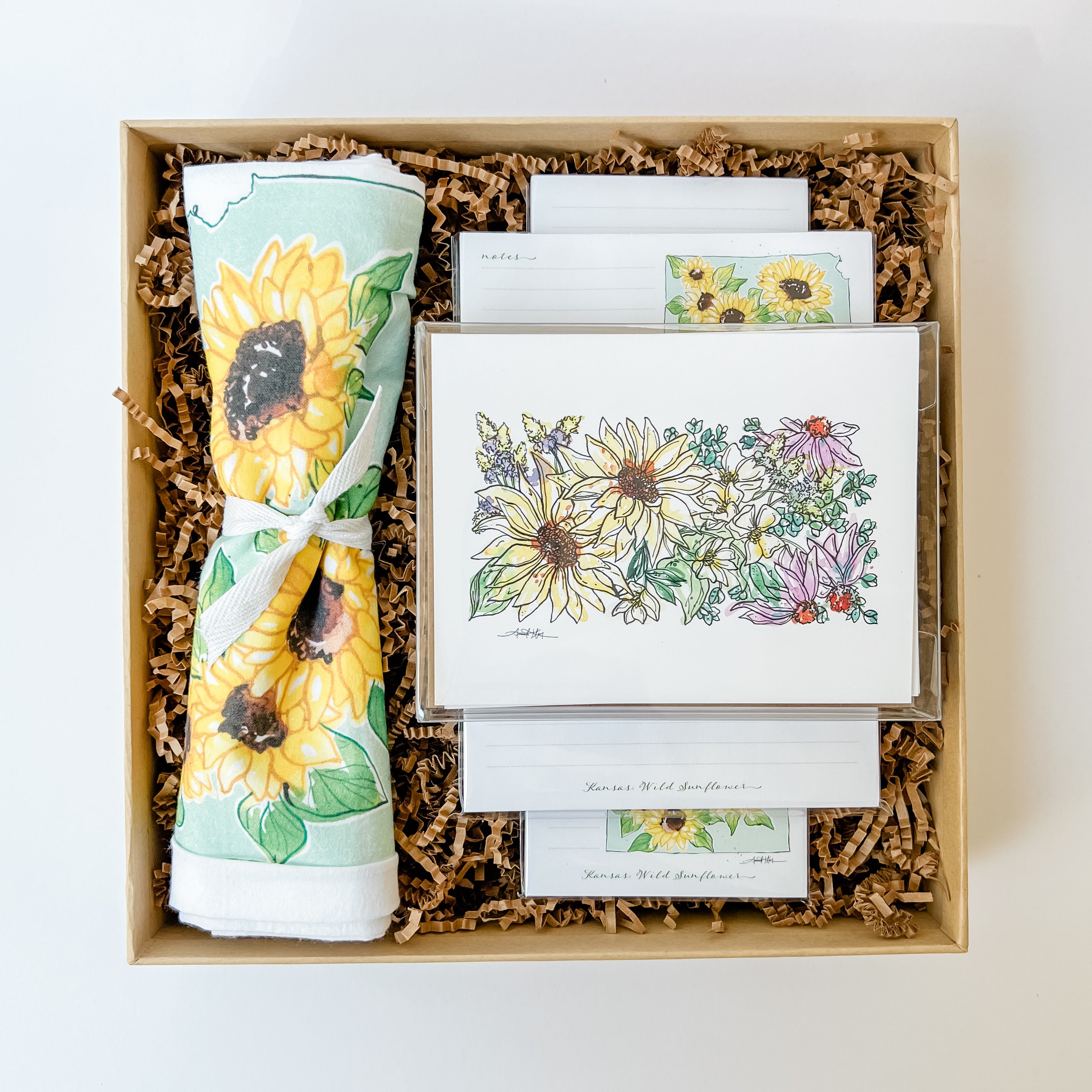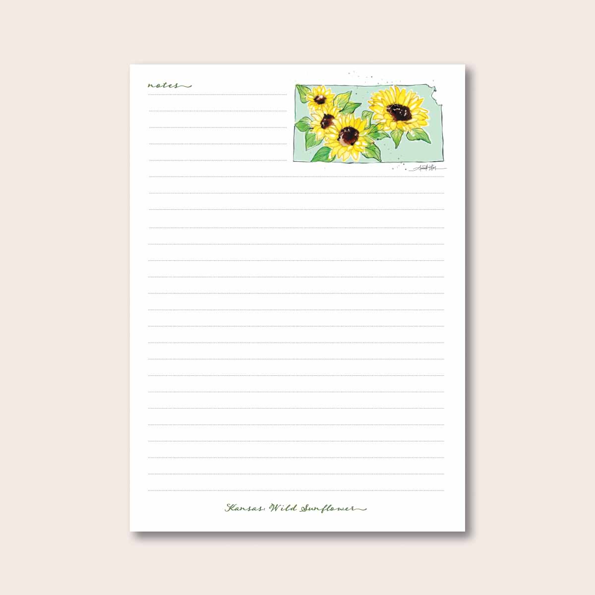 ✨ Flour Sack Towel, Desk Notepad, and Refrigerator Notepad all feature the Kansas State Flower, the Sunflower