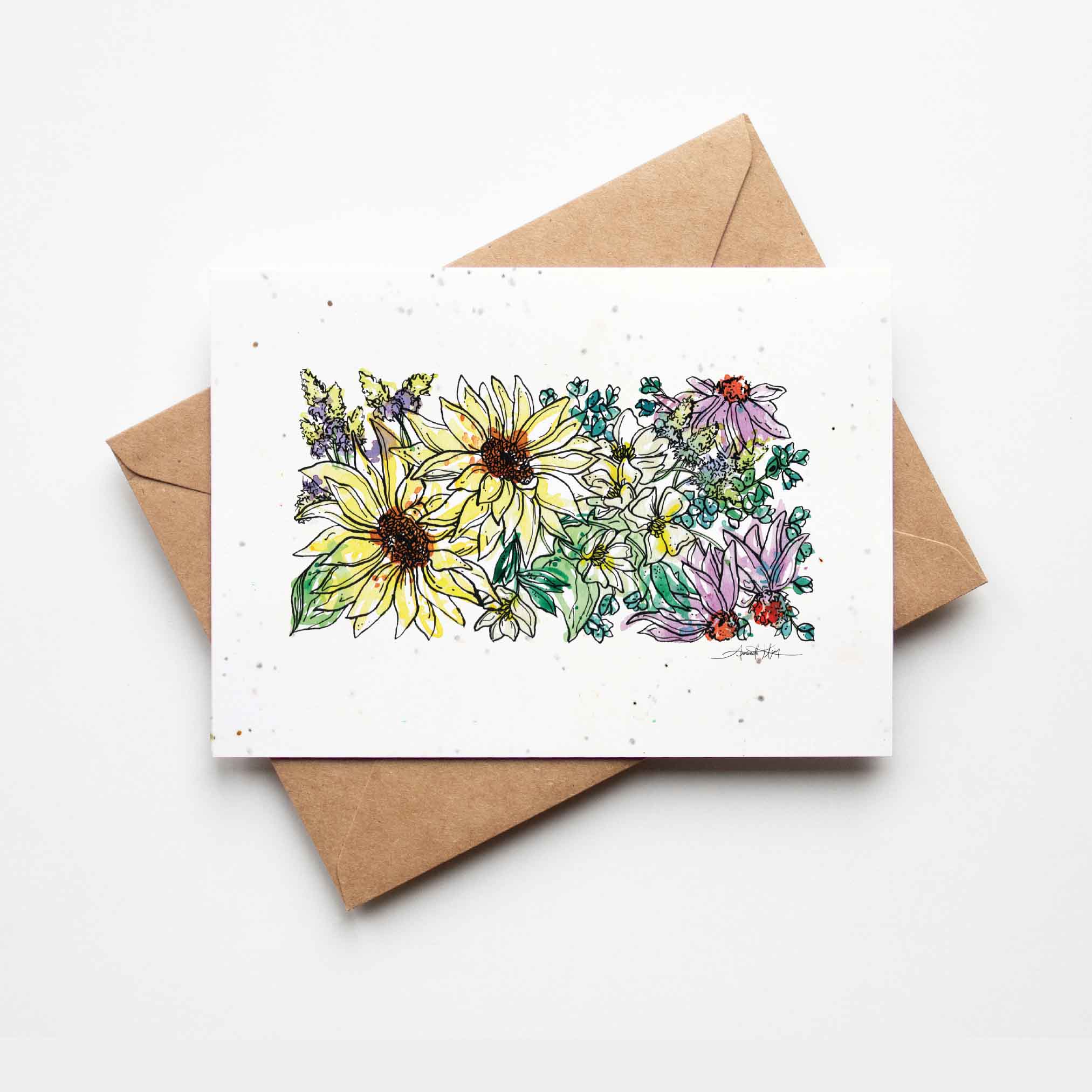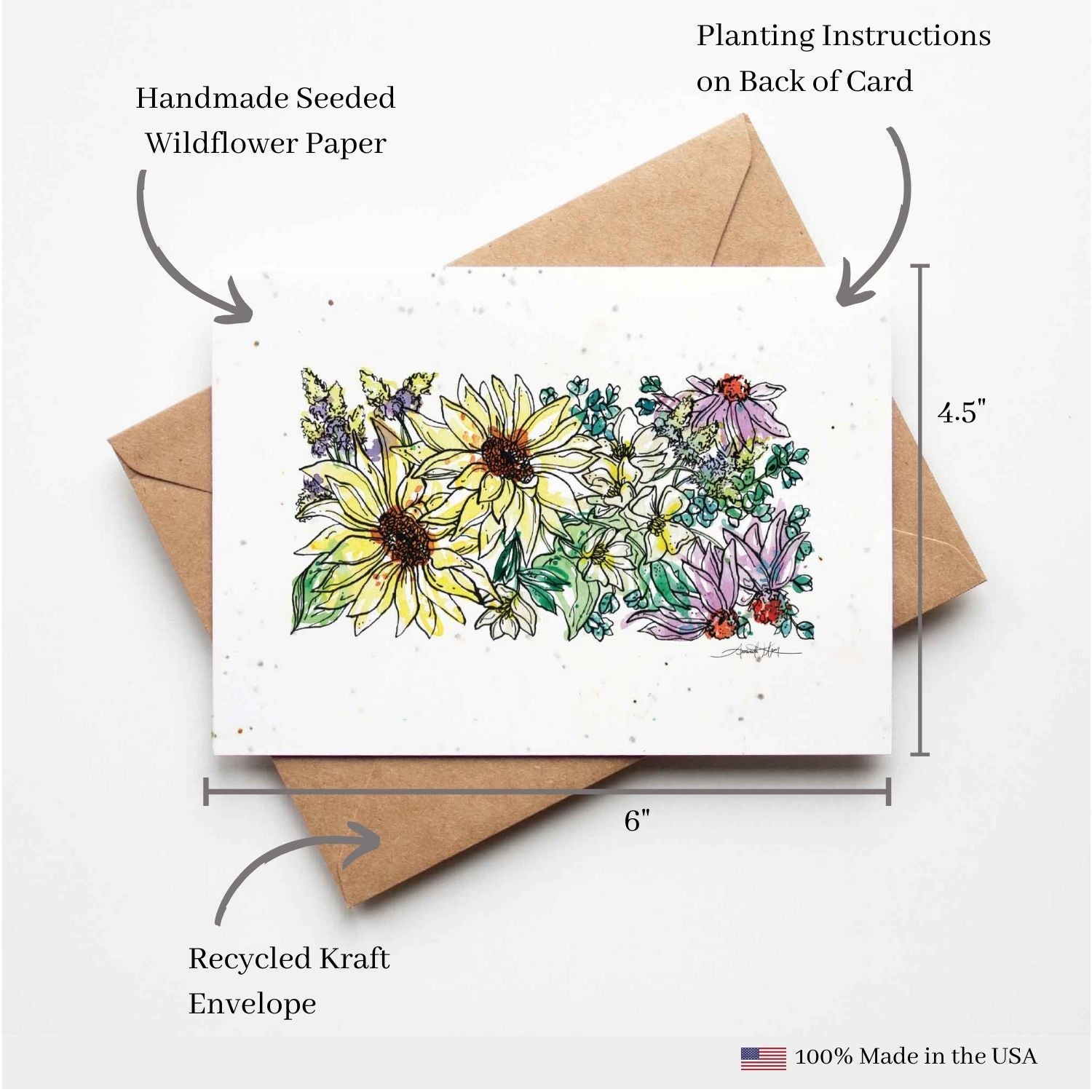 Don’t just send a greeting card, send flowers! Every plantable card is a gift unto itself and features original floral artwork created by Amanda Klein. Our plantable cards are small-batch printed on handmade, biodegradable paper that is embedded with a mix of non-invasive wildflower seeds.
