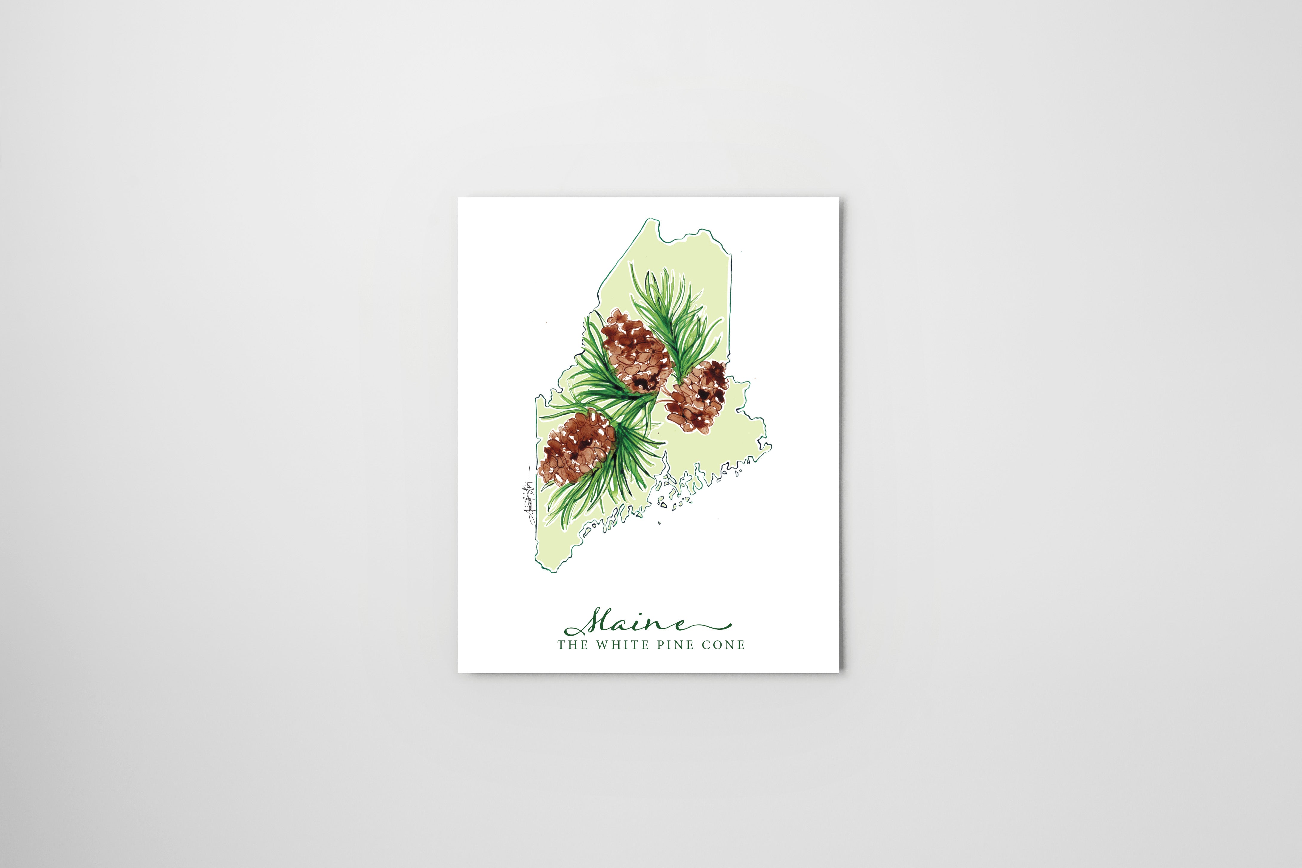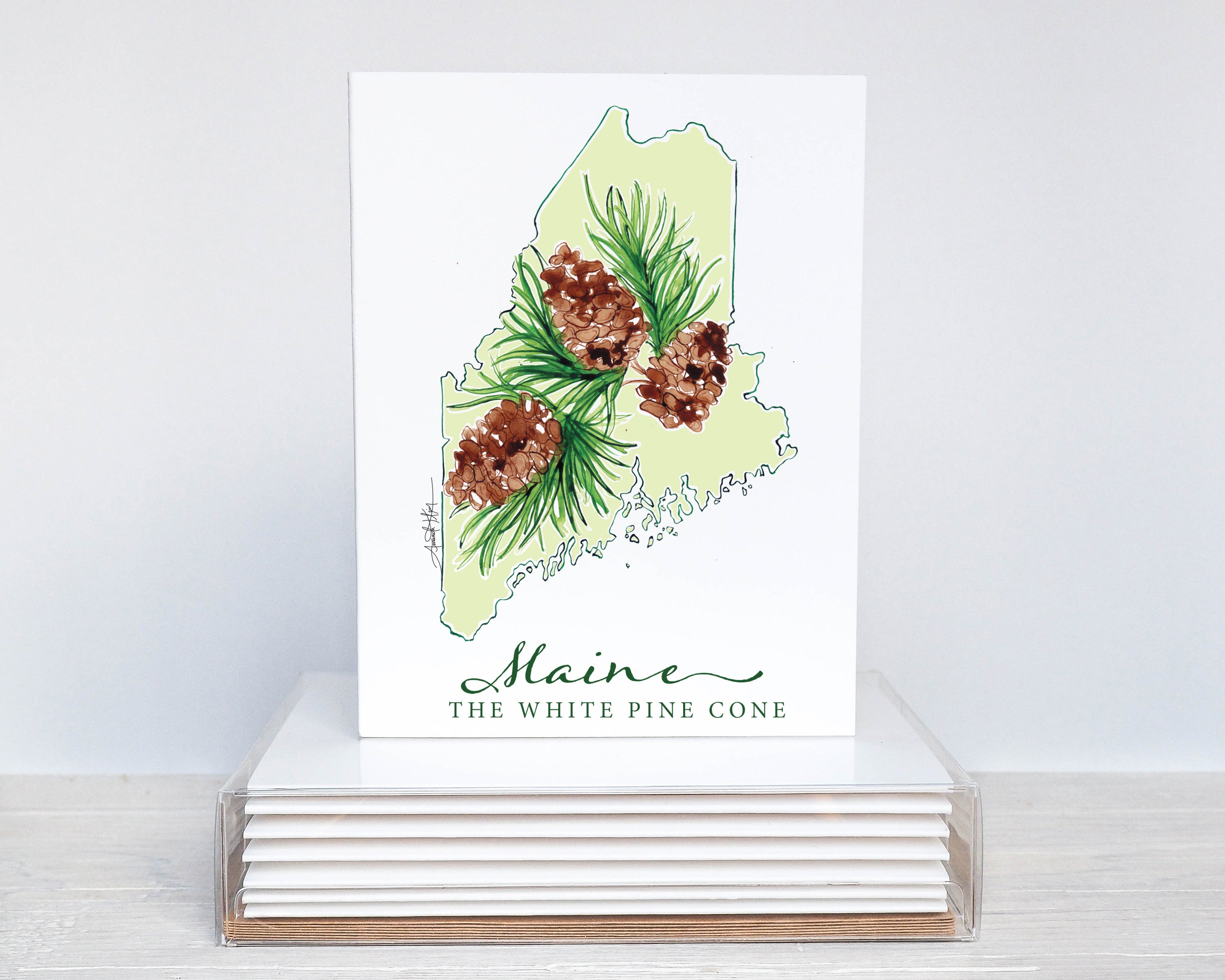 Maine White Pine Cone State Flower Notecard Set