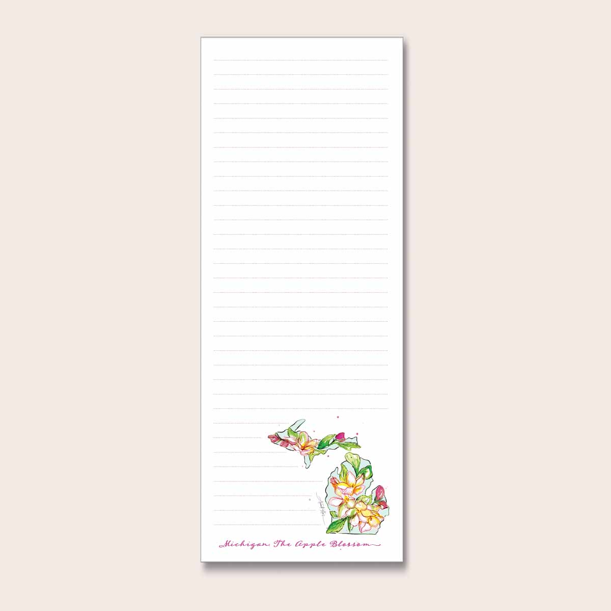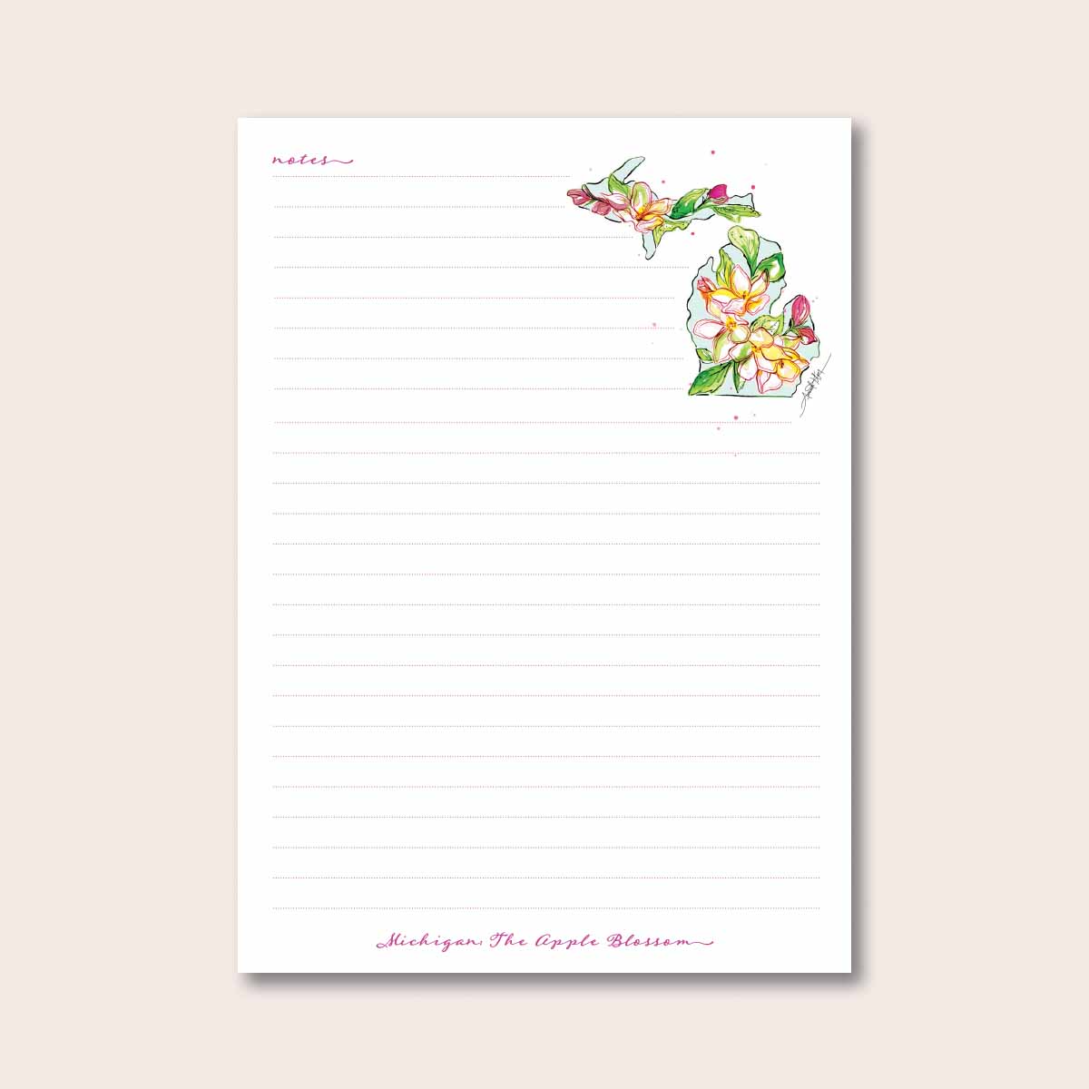 ✨ Flour Sack Towel, Desk Notepad, and Refrigerator Notepad all feature Michigan's state Flower, the Apple Blossom.
