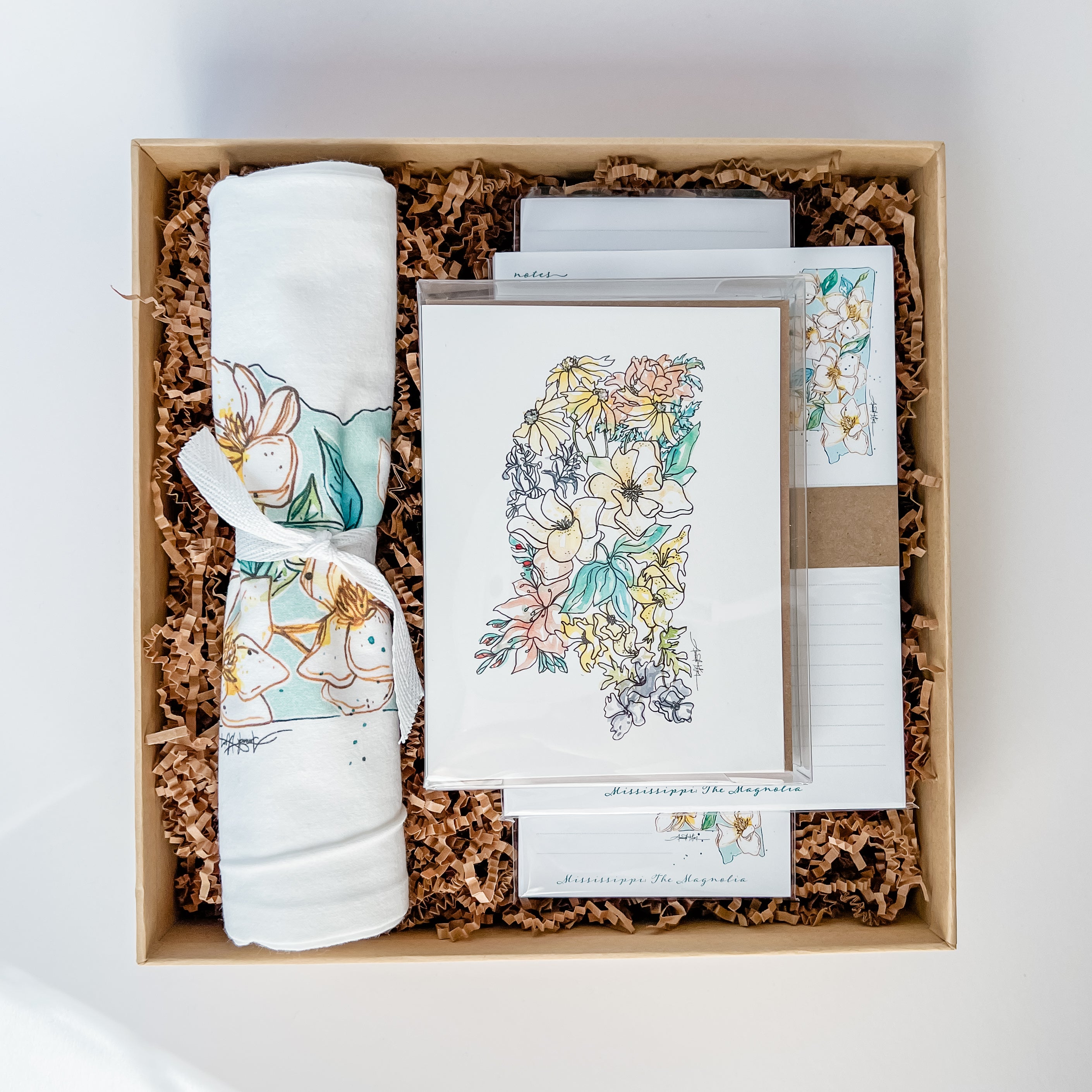 Let Amanda Klein Co. help you celebrate the people you care about this holiday season with our curated state gift boxes! These beautiful and unique gift sets are filled with items that are sure to delight. Each box contains 4 of Amanda Klein's bestselling items, arranged with care in a sturdy, kraft paper gift box and then tied with a festive bow. Our gift boxes are ready to give with no further wrapping required and you can even opt for a handwritten gift tag for no extra charge (email hello@amandakleinco.com with your order number and gift message).