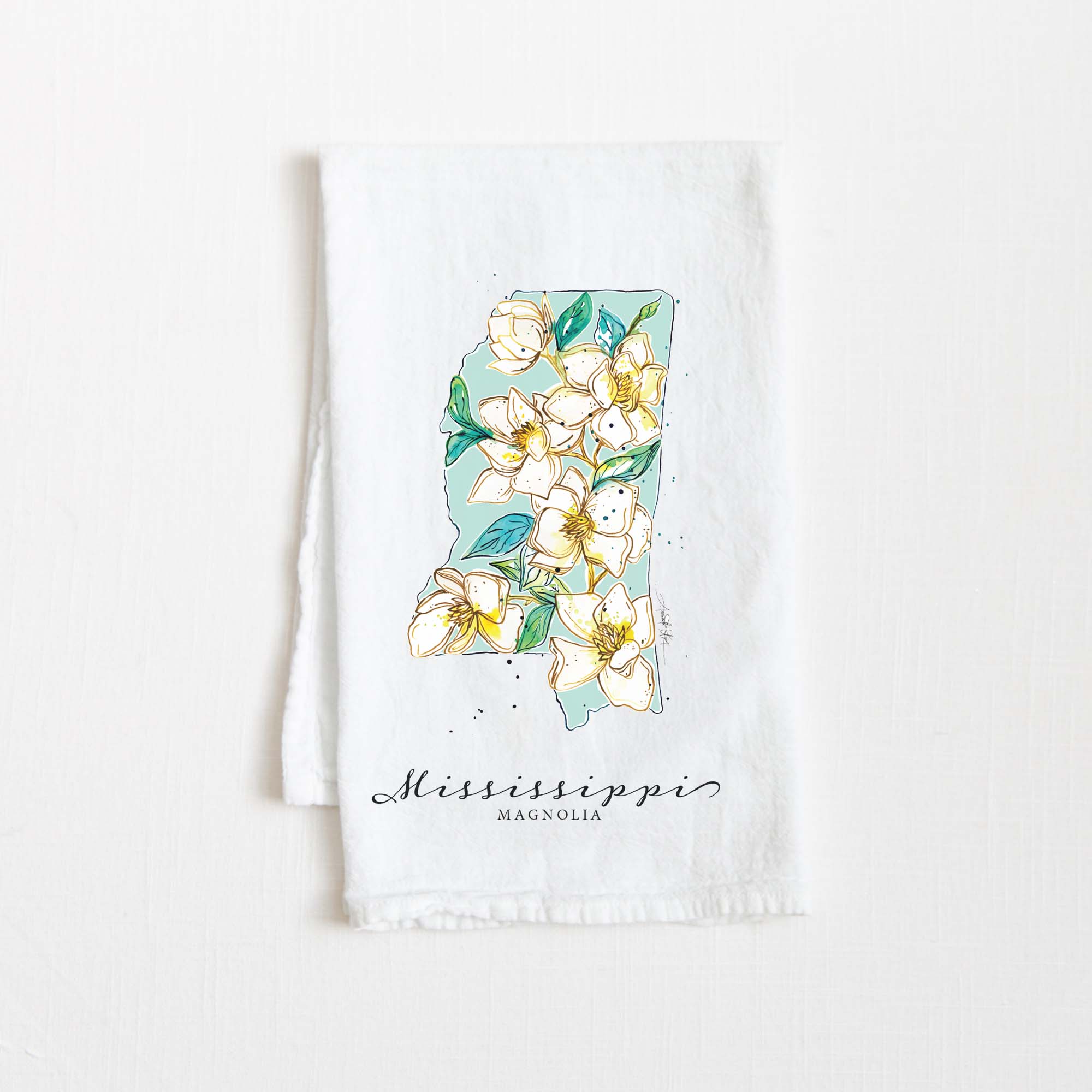✨ Flour Sack Towel, Desk Notepad, and Refrigerator Notepad all feature the Mississippi State Flower, the Magnolia.