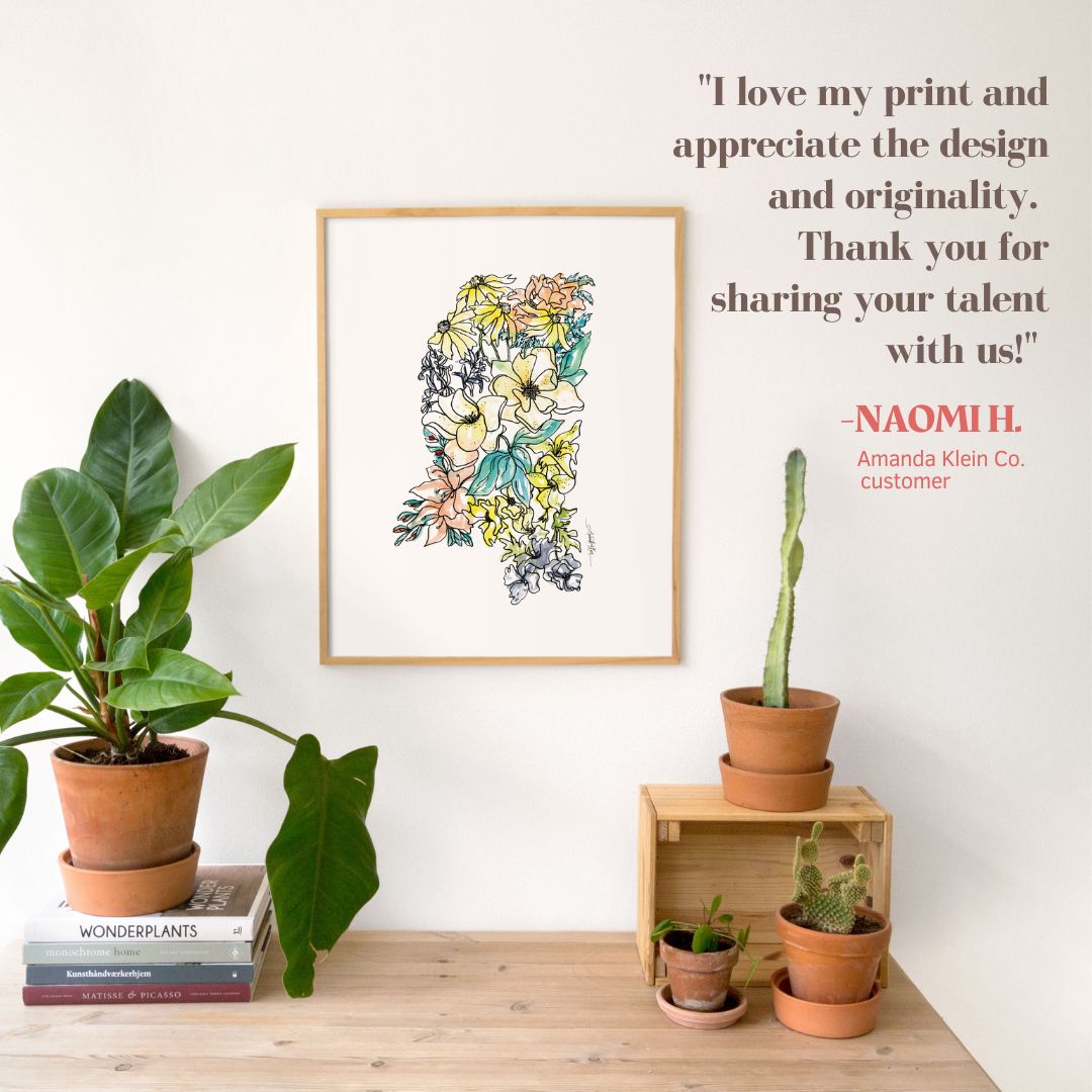 Featuring wildflowers specific to each individual state, these high quality fine art reproductions of Amanda Klein’s original artwork beautifully showcase her whimsical watercolor designs.  A uniquely perfect gift for any hostess, bride, holiday, teacher, friend or well traveled loved one.