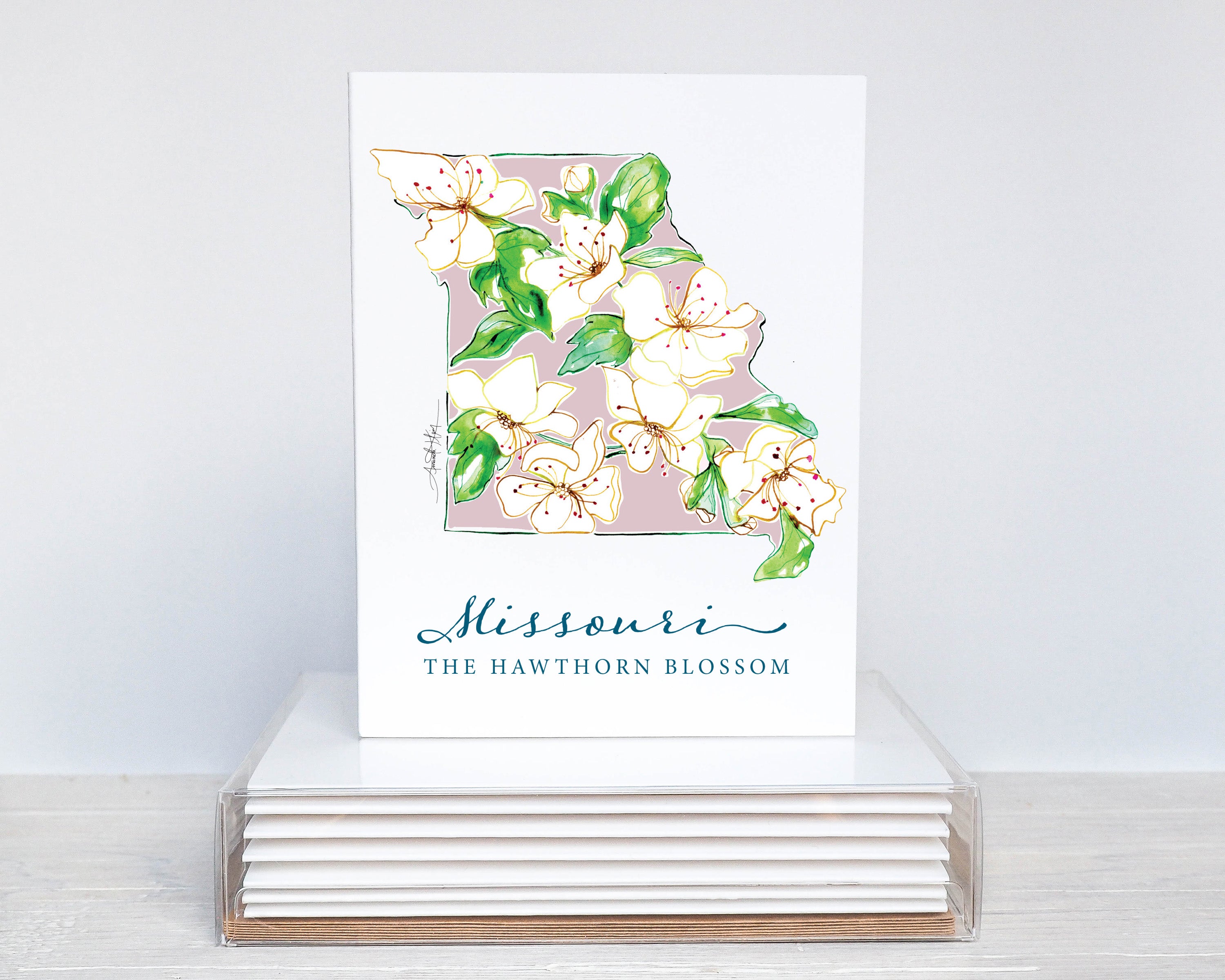 Missouri Hawthorn Blossom State Flower Notecard Set